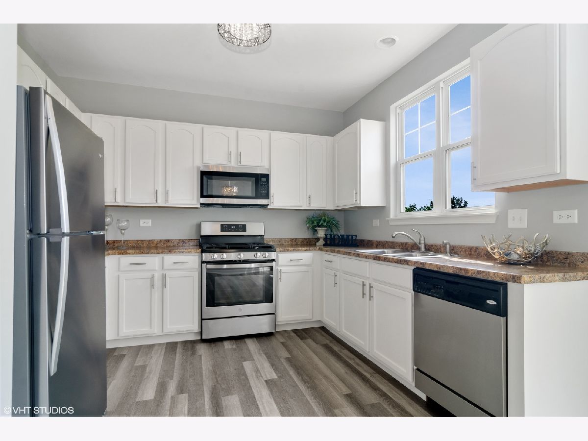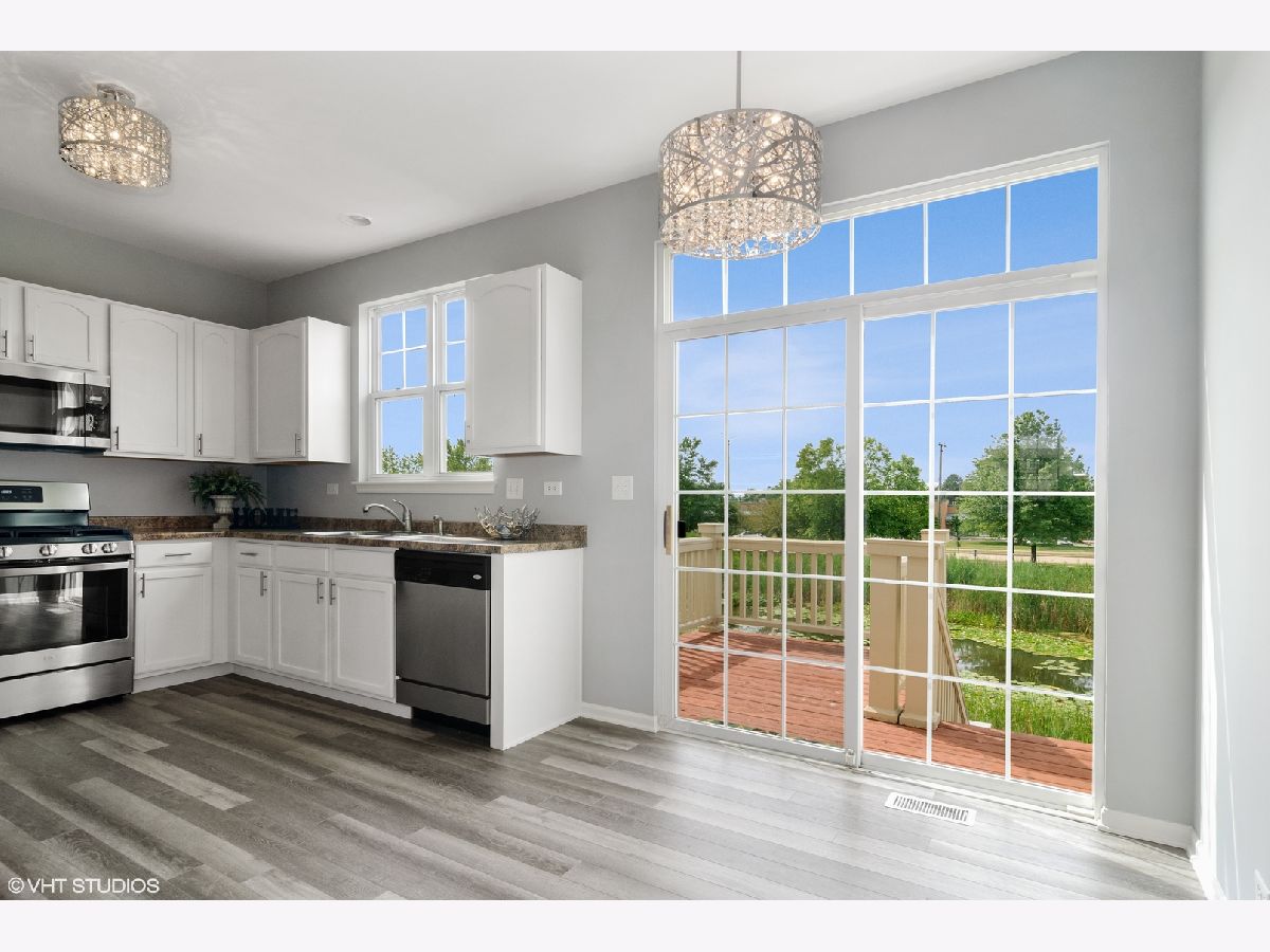 Beautifully remodeled 3-Bedroom Townhouse with walkout basement and pond view! Entire house freshly painted with designer's color, brand new carpeting and all new light fixtures! Spacious living room and dining room for family entertaining! Kitchen with new vinyl plank floor, refinished white cabinets and stainless steel appliances! Luxury master suite with Walk-in Closet, remodeled bathroom and double sinks! Hallway bathroom also updated with white cabinets and new floors! Lower Level has Den & Laundry room and patio door walk out to lovely patio and pond! Two car garage has extra storage area. Wood deck overlooking at pond view, relaxing in a resort setting private yard! Close to I-88, Metra Station, and Fox Valley Shopping Mall. Absolutely move-in condition, very light and bright home!