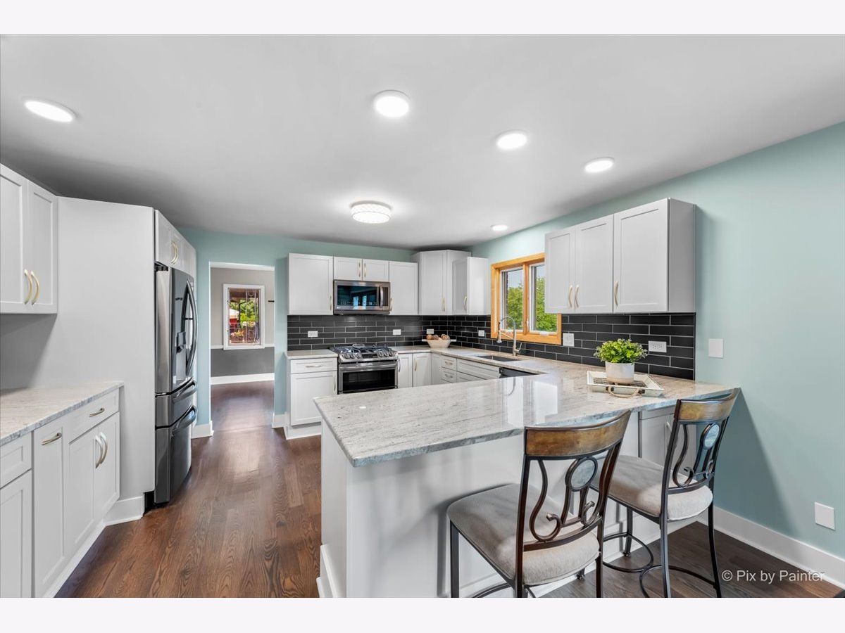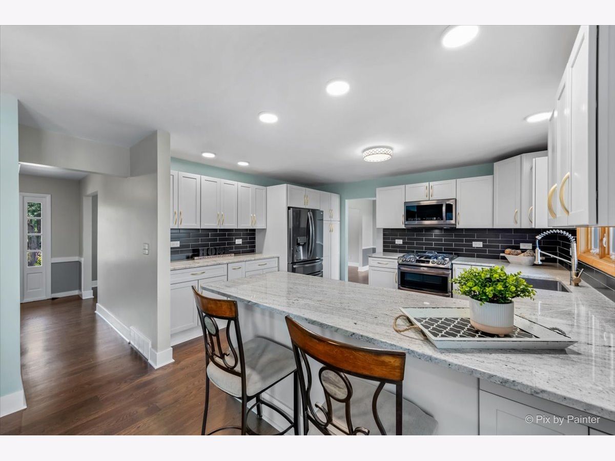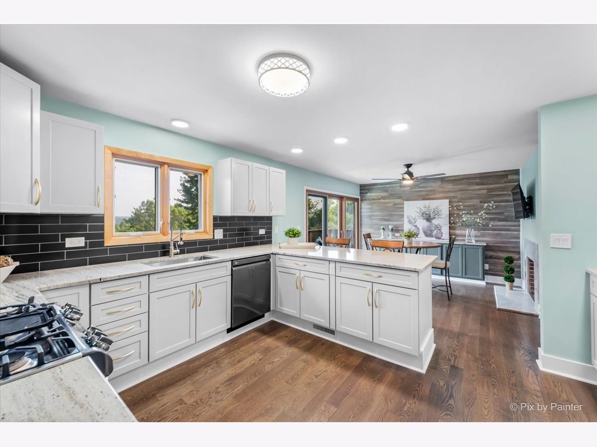 Welcome to this spacious 4-bedroom, 3-bathroom Brigadoon ranch-style home that offers both comfort and style! This gem has been thoughtfully updated throughout to provide modern amenities and elevated style. As you step inside, you'll immediately notice the stunning 4" hardwood floors that flow seamlessly throughout the entire main floor creating an inviting and warm ambiance while the 5" white baseboards add a touch of elegance and contrast, enhancing the overall aesthetic of the home. The heart of the home is the spacious, bright living area with large bay window that flows to the formal dinning space and well-appointed kitchen, complete with stainless steel LG appliances, ample soft gray cabinetry with gold hardware, new beverage bar, a convenient breakfast bar, and eat-in area with wood burning fireplace. One of the highlights of this property is the spacious primary bedroom with an en-suite bathroom that boasts modern fixtures and finishes, and large walk-in shower. Rounding out the main level are two additional spacious bedrooms and an updated hall bath with jetted tub and heated floors. There is no shortage of space in the walkout basement. The expansive Rec Room features a gas fireplace, professional metallic epoxy floors and large sliders leading out the concrete patio making it a dream entertaining space. The perfect in-law suite includes the forth bedroom with new carpet, updated full bathroom, and 2nd kitchen. The utility/laundry room also allows for additional storage. Outside, the 0.41 acre property continues to impress with its manicured landscaping and two outdoor living spaces including the large deck off the main level, play-set and concrete patio. Take in the breathtaking views overlooking Cary Country Club Golf Course and conservation area. Minutes walk to all downtown Cary has to offer including Metra Station, Uncle Jerry's Pizza, The Track's, Cary Ale House, Cucina Rustica, and fun shops.