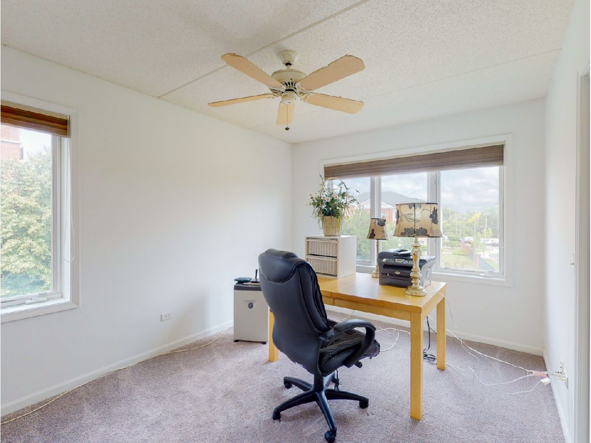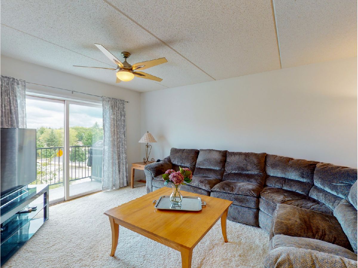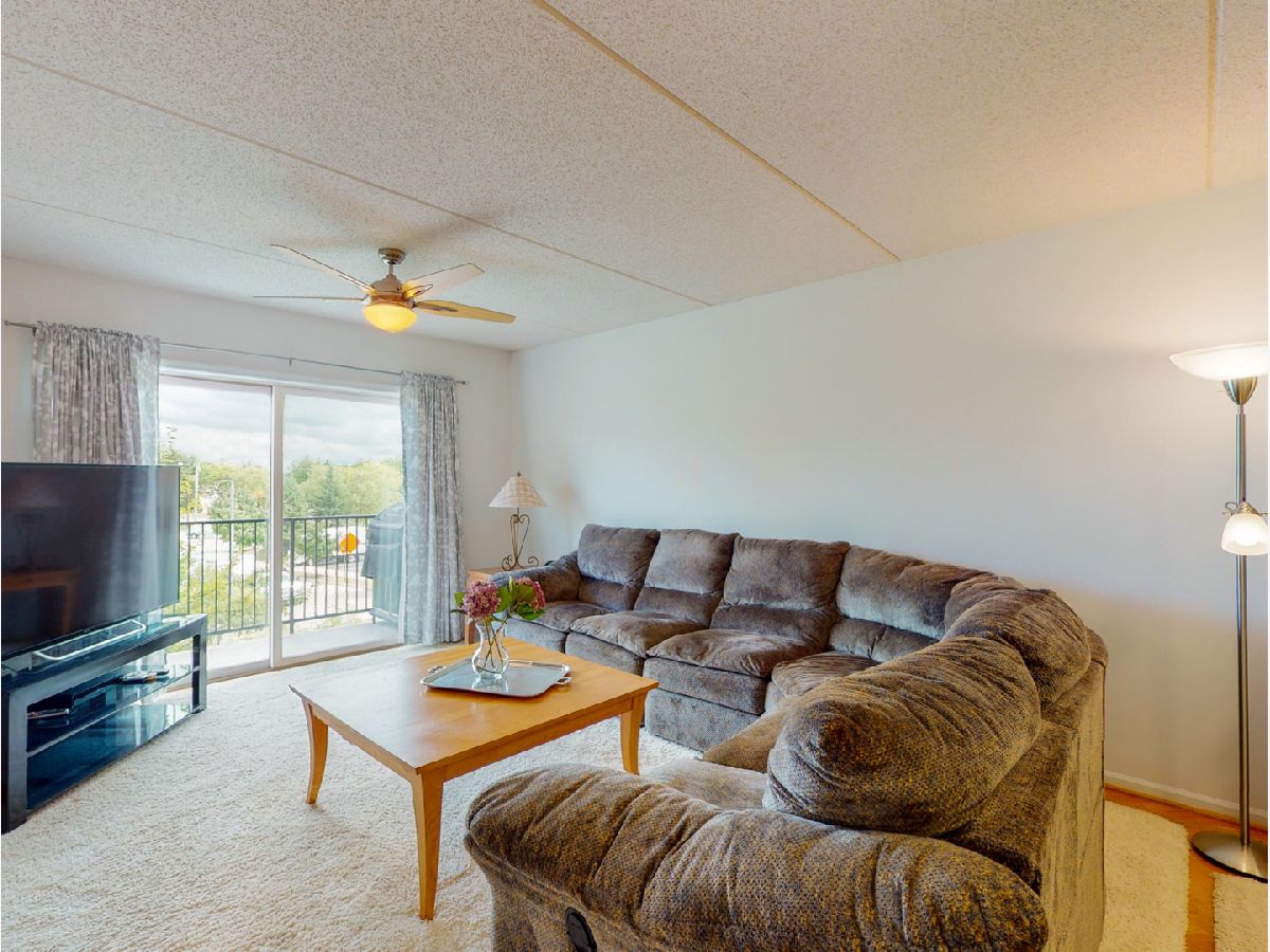 Curl up cozy with radiant heat throughout--Included in your assessments!! CAREFREE CONDO style living in beautiful LAKE COUNTY! Live the high life, with low taxes and open prairie communities. This sweet gem is extremely well maintained, neutrally decorated, 2 bedroom 2 full bath condo in Town Place. A quiet corner unit with double exposure to beautiful grounds. With vast north and east views from the third floor of this highly desirable complex. Just freshly painted, with brand new carpeting. Main bedroom has double entrance with sliding floor to ceiling sliding door, and Juliet balcony. Two large, walk-in closets with both hanging and shelving storage and five-shelf linen closet. Main bath is bright with large window and has both a full shower/tub and stand-up shower for variety and preference. Brightly lit, double window exposure in second bedroom can be converted for "remote office", working from home. Deep, additional double door closet for extra storage. Guest/2nd Bedroom bath has same large window for beautiful light, cabinet- storage and has a 3rd stand-up shower. All kitchen appliances are has 5 years new. Sunny window over double-sink, and full eat-kitchen with real oak hardwood floors. Combination living/dining area has same oak flooring, decorated with luxurious thick off-white, large carpet areas that give the option of both. Beautiful, second set of double sliding doors and iron railing balcony; perfect for grilling outdoors or relaxing. BRAND NEW, in-unit, full-size washer and dryer has its own additional cabinet storage above. Quiet lock-secured building, and unit-wired for private security. Elevator building with assigned parking in heated, ground-level, garage. Private, large, secure storage assigned with each space. Monthly assessment includes comfortable radiant heat throughout and hot water. Healthy reserves maintained for this association. Lobby just updated and freshly painted. No rentals. .. all owner occupied. This is a superior location with shopping and restaurants right around the corner.