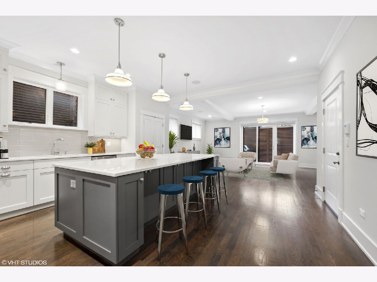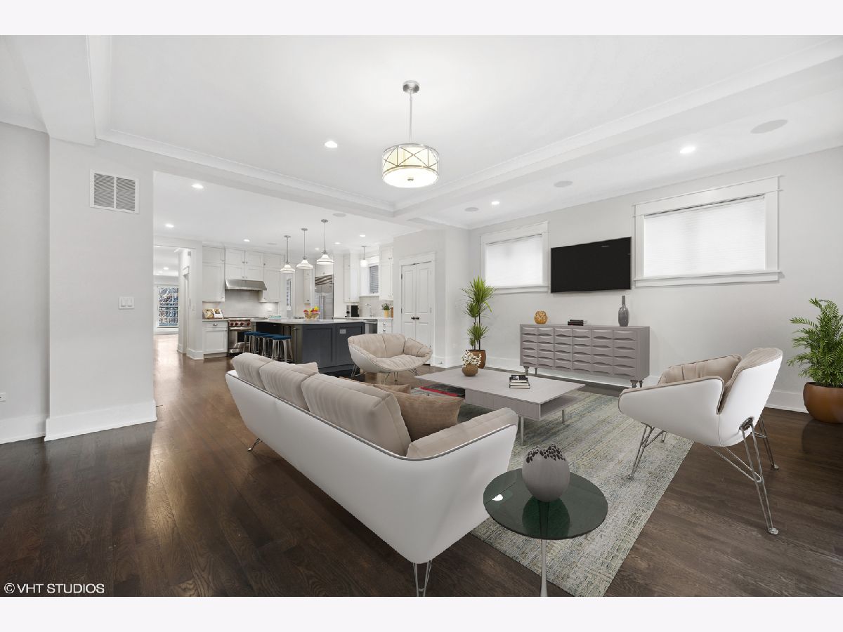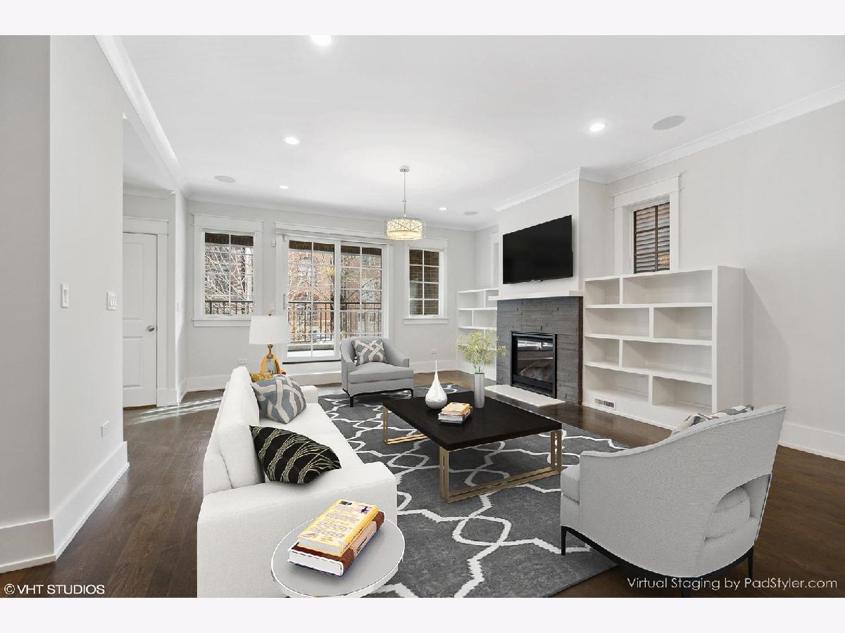 This modern four-bedroom (plus office), sits on an expansive 33-foot wide lot on a quiet one-way tree lined street. Crafted by renowned Ronan builders, it exudes the feel of an extra-wide single-family home. This home features an open floor plan, deluxe chef's kitchen, and high end finishes throughout. Exquisite quartz countertops, custom cabinetry and a kitchen pantry. Lower level has an additional family room, full laundry room, heated floors and four spacious bedrooms. Luxurious Primary bath with marble stone, large shower and soaking tub. Front and rear outdoor terraces. Custom electric window shades from studio 41 with remotes. Garage parking with EV charger included. Fabulous location near the lakefront, Wrigley Field and an abundance of restaurants and shopping.