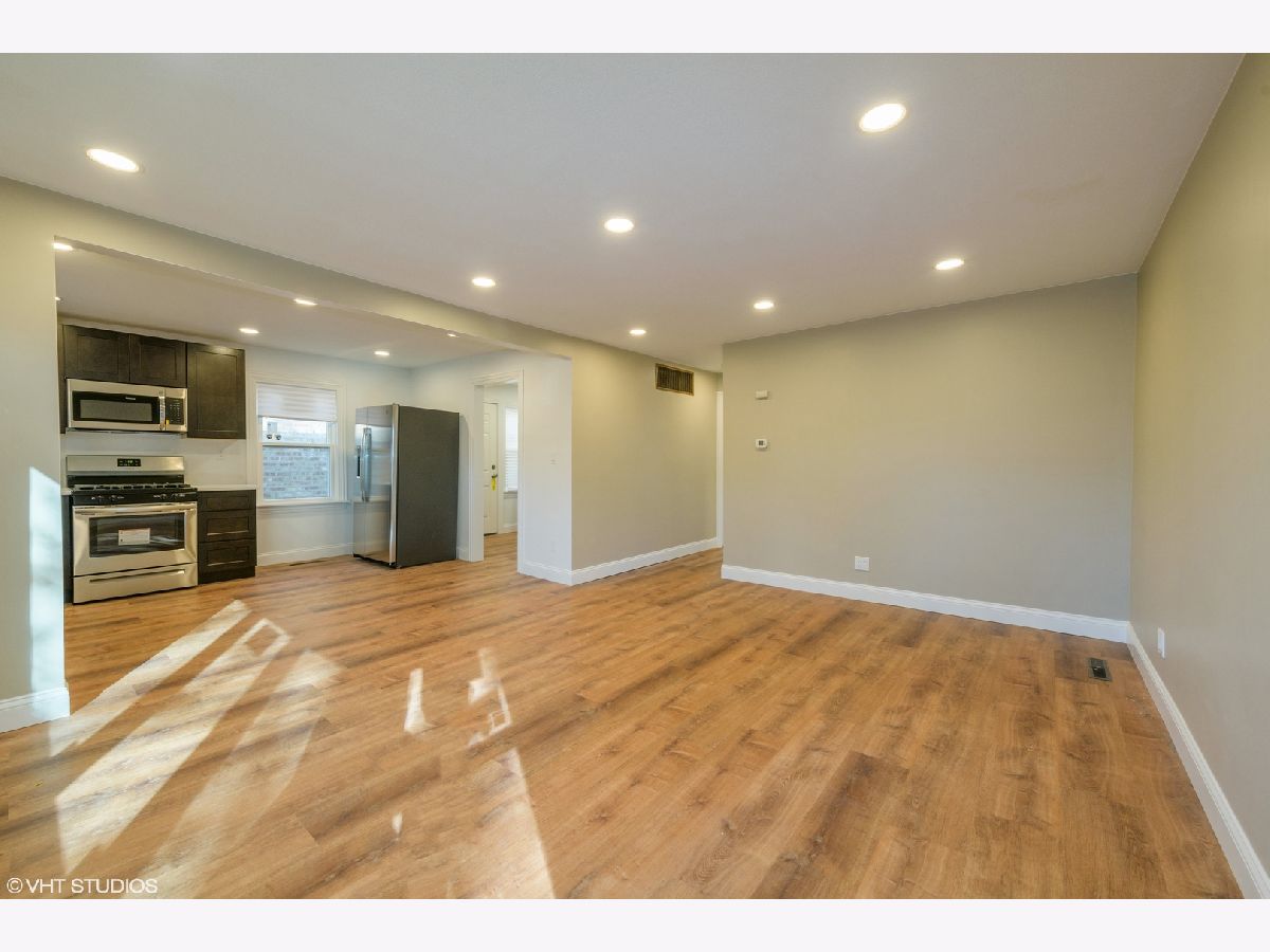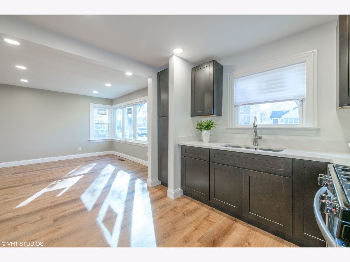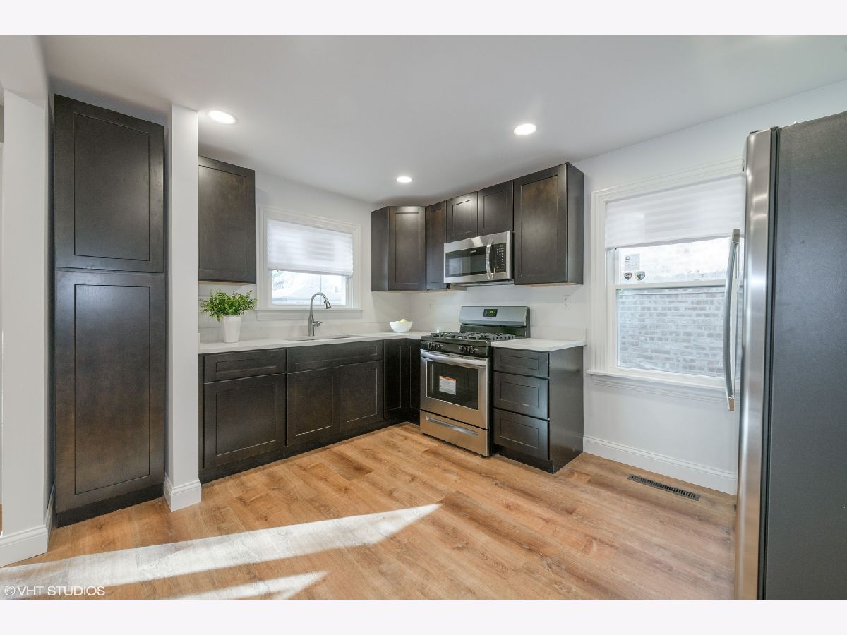 Completely remodeled home with nothing to do but move in. A modern, open layout welcomes you upon entry. The brand new stylish kitchen features eye-catching contrast from the quartz counters to the sleek cabinets. New stainless microwave, refrigerator and range. Gorgeous luxury vinyl wood-look floors throughout the home pairs wonderfully with the fresh paint and new recessed lighting. New bathroom with Kohler faucet and tub/shower combo with custom aqua glass tile inlays. Stacked washer dryer in separate laundry/ mud room with side exterior access. Entertain, grill and garden in the large fenced in back yard. New siding and new windows. 2 car garage in good condition. Located on a the edge of the city on a leafy street lined with single family homes. Enjoy the outdoors at Schiller Woods, Indian Boundary golf course, Cook County Forest Preserves and Hiawatha Park. Easy access to O'Hare, I-90 and I-294.