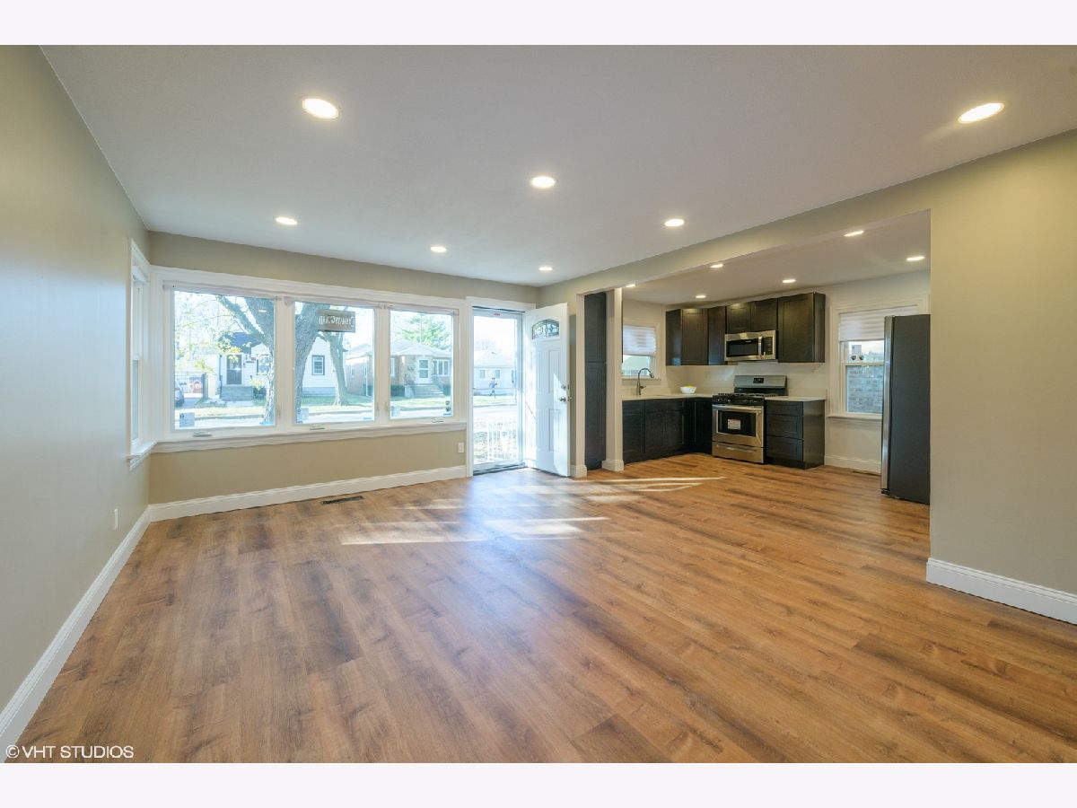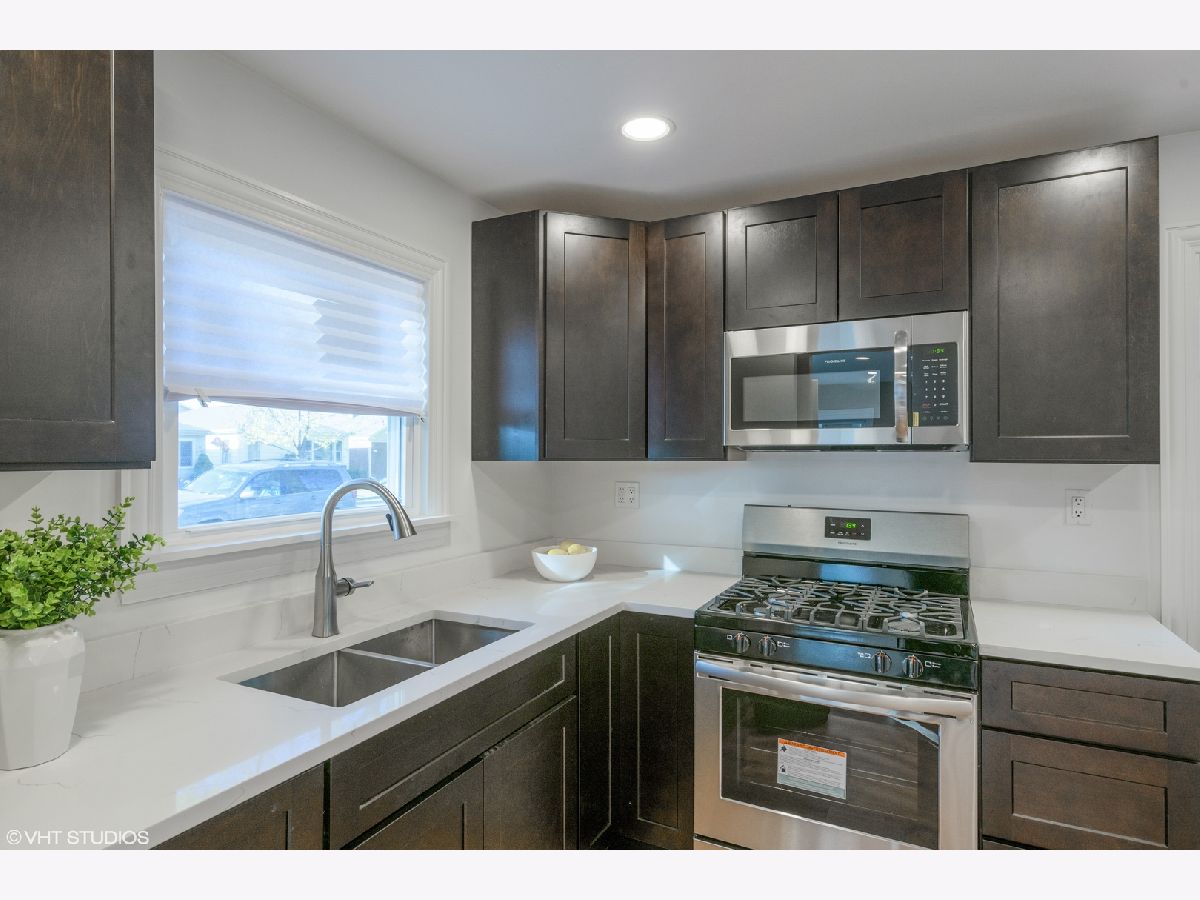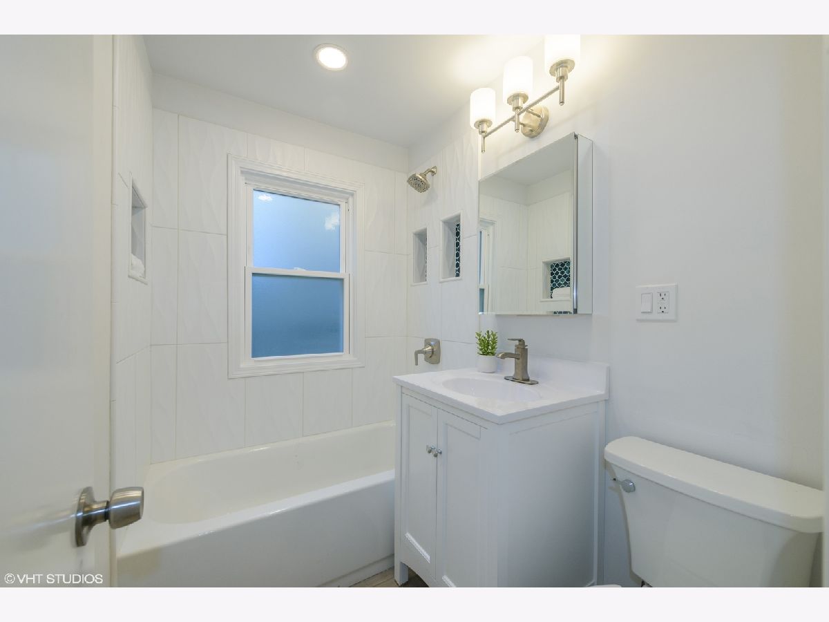 Completely remodeled home with nothing to do but move in. A modern, open layout welcomes you upon entry. The brand new stylish kitchen features eye-catching contrast from the quartz counters to the sleek cabinets. New stainless microwave, refrigerator and range. Gorgeous luxury vinyl wood-look floors throughout the home pairs wonderfully with the fresh paint and new recessed lighting. New bathroom with Kohler faucet and tub/shower combo with custom aqua glass tile inlays. Stacked washer dryer in separate laundry/ mud room with side exterior access. Entertain, grill and garden in the large fenced in back yard. New siding and new windows. 2 car garage in good condition. Located on a the edge of the city on a leafy street lined with single family homes. Enjoy the outdoors at Schiller Woods, Indian Boundary golf course, Cook County Forest Preserves and Hiawatha Park. Easy access to O'Hare, I-90 and I-294.