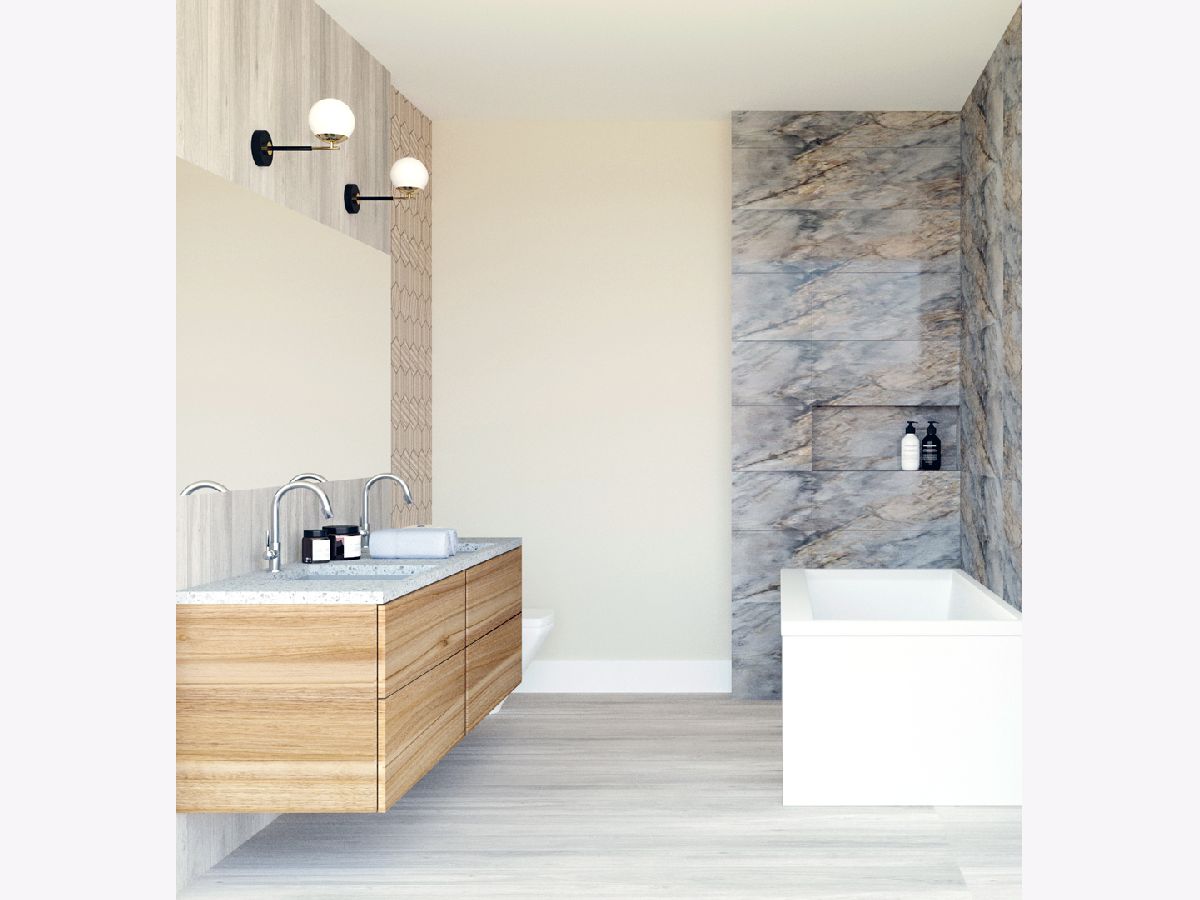 The 606 Seven - Coming Soon to Logan Square! Modern new construction home development off the 606 trail on Cortland Street. 7 expertly crafted single family homes featuring contemporary exteriors highlighted by vintage brick and stone details and professionally designed interiors with impeccable style. Extra long lots allow for spacious floor plans with flexible living spaces. Open concept living/dining room with gas fireplace featuring custom built-in shelving surround and great natural light. Entertainer's kitchen featuring soft close flat panel cabinetry, quartz counter, stainless Bosch appliance package, butler pantry with sink + pantry closet, and peninsula with waterfall counter and bar seating. Adjoining family room with oversized windows and rear exit. Oak hardwood flooring, statement lighting fixtures, custom ceiling details, skylights, and more! Private master suite with two closets and attached bath featuring a dual vanity with modern cabinetry, quartz counters, frameless glass shower, marble and terrazzo inspired tile, and heated flooring. Two guest bedrooms, full bath with dual vanity, tub and linen closet, and laundry room with washer/dryer installed, cabinetry and sink complete the upper level. Finished lower level includes large recreation room featuring wet bar complete with modern open shelving, sink, and beverage center, 4th bedroom, full bath with shower, laundry room with second hookup, and utility room. Nice ceiling heights and ample light. Drain tile system with sump/ejector pump. Fully enclosed yard features stamped concrete patio with gas hook-up and detached two-car garage. Amazing location steps from the 606 trail. Conveniently located near your favorite Logan Sq restaurants, shops, and entertainment + groceries, parks and other area conveniences. Come check out what's blooming on Cortland Street! Estimated completion of the first home is end of June but contact me for a walkthrough of the development project today. Renderings represent the intended finishes and design aesthetic. Finished photos are from a recent project with the same floor plan.