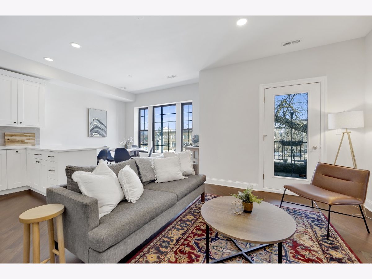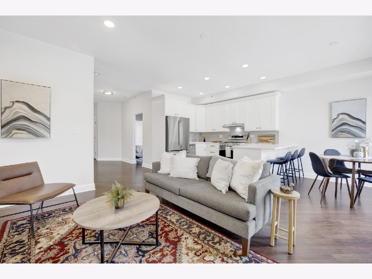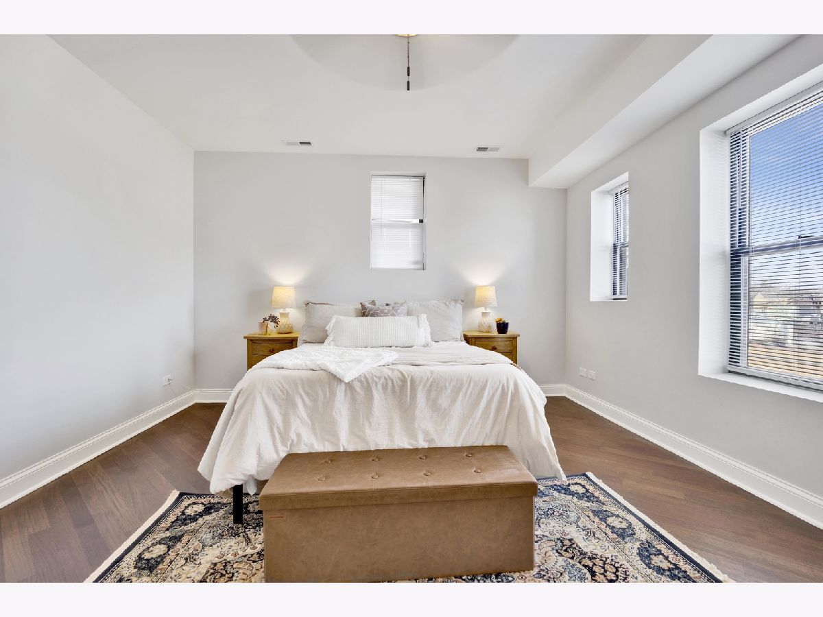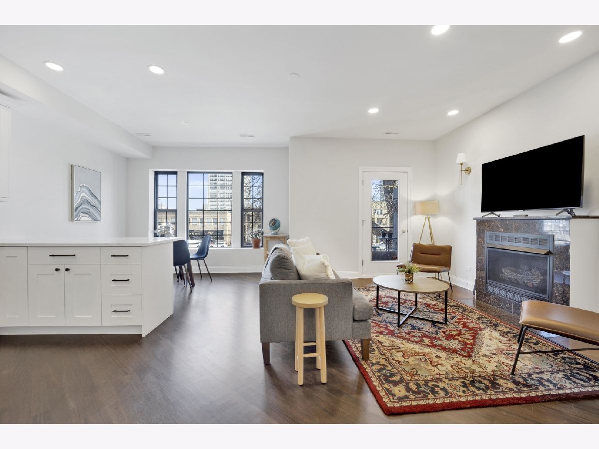 MOVE-IN READY! This expansive 3-bedroom, 2-bathroom condominium is nestled on a charming tree-lined street in the vibrant heart of Bronzeville. Recently renovated in 2022, this unit offers a modern aesthetic and thoughtful design throughout. The kitchen is equipped with sleek white shaker-style cabinetry, quartz countertops, stainless steel appliances, and a stylish subway tile backsplash. The primary bathroom is a luxurious retreat, featuring a freestanding tub, stand-up shower, double vanity, and all-new hexagon floor tile, subway tile, and matte black hardware. The unit's spacious floor plan provides versatile living, entertaining, and home office options. Enjoy an open concept living and dining area flooded with natural light. Step out onto the large private balcony & additional rear deck for relaxation and outdoor enjoyment. Added conveniences include an in-unit washer/dryer, hardwood flooring throughout, and 1 EXTERIOR PARKING SPACE INCLUDED IN THE PRICE!