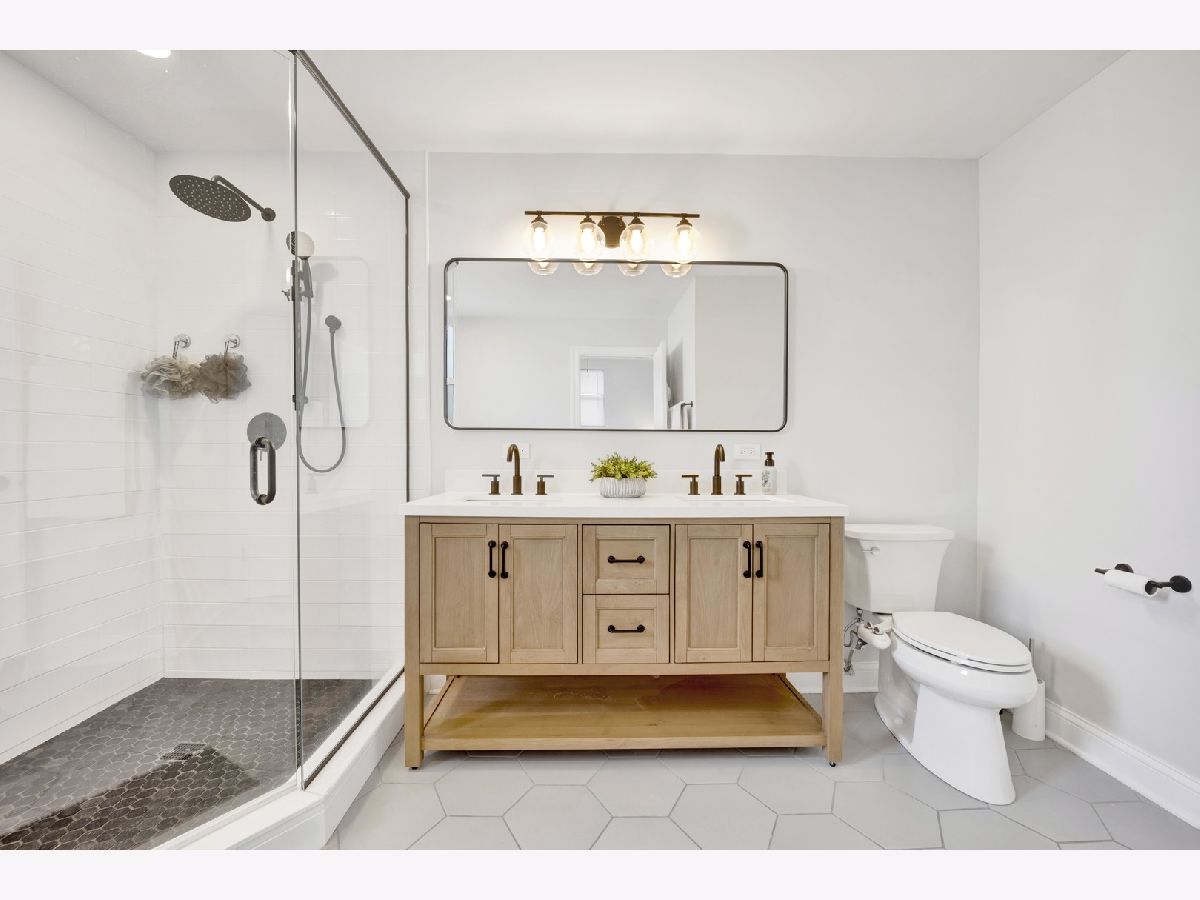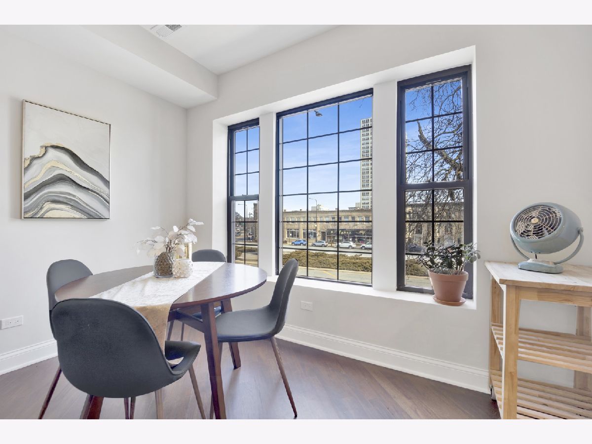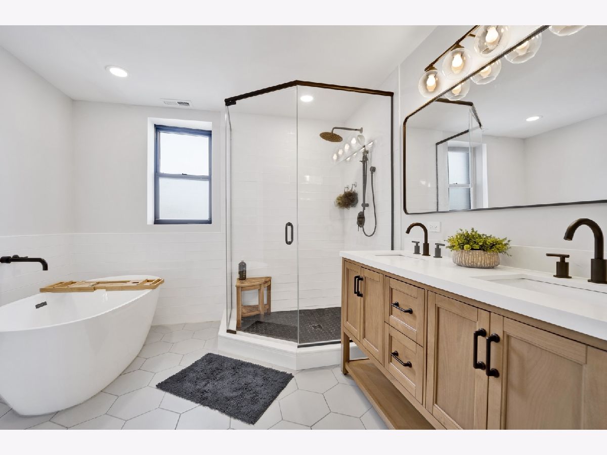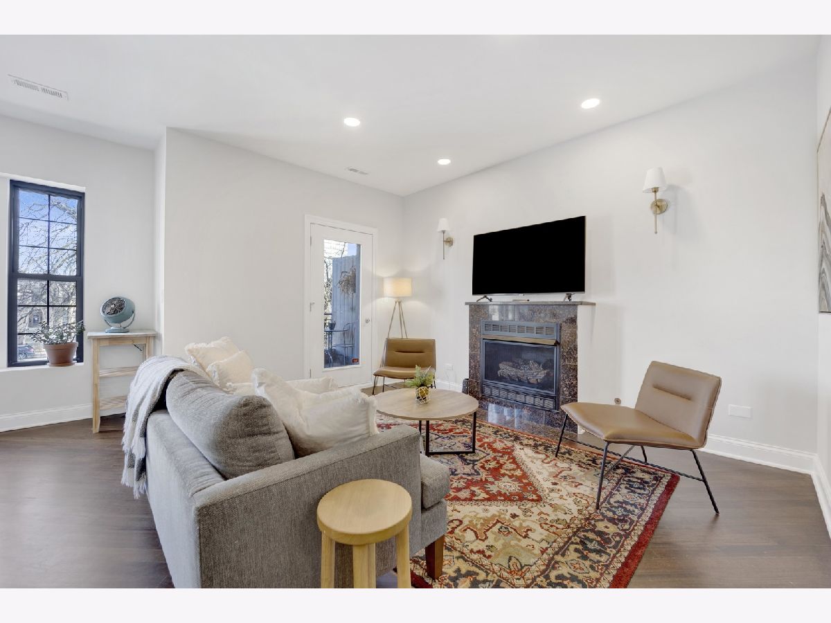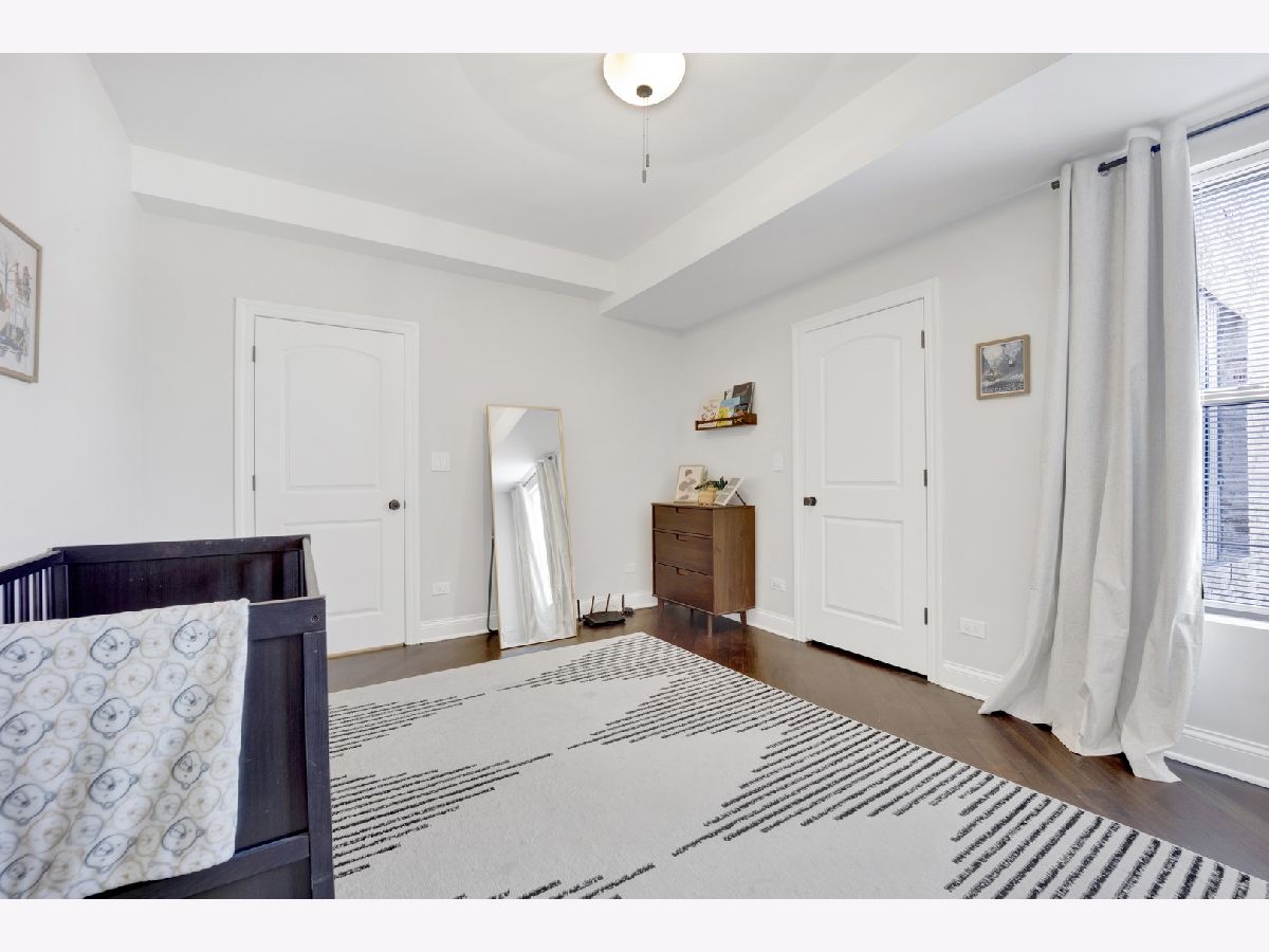 MOVE-IN READY! This expansive 3-bedroom, 2-bathroom condominium is nestled on a charming tree-lined street in the vibrant heart of Bronzeville. Recently renovated in 2022, this unit offers a modern aesthetic and thoughtful design throughout. The kitchen is equipped with sleek white shaker-style cabinetry, quartz countertops, stainless steel appliances, and a stylish subway tile backsplash. The primary bathroom is a luxurious retreat, featuring a freestanding tub, stand-up shower, double vanity, and all-new hexagon floor tile, subway tile, and matte black hardware. The unit's spacious floor plan provides versatile living, entertaining, and home office options. Enjoy an open concept living and dining area flooded with natural light. Step out onto the large private balcony & additional rear deck for relaxation and outdoor enjoyment. Added conveniences include an in-unit washer/dryer, hardwood flooring throughout, and 1 EXTERIOR PARKING SPACE INCLUDED IN THE PRICE!