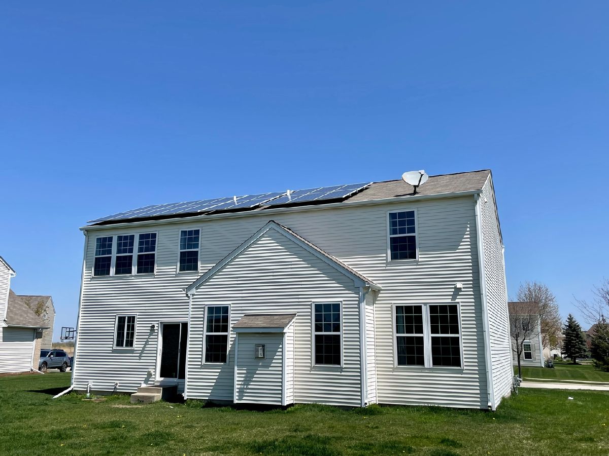 Don't miss this impeccably well-maintained and CLEAN ENERGY newer home. The green energy of 6kW solar panels and get benefit on the electric bill! This fantastic two-story home features an awesome kitchen with solid surface countertops! New Microwave and Dishwasher from 2022. Large lot and lawn! Mature peach tree in the backyard! The basement is semi-finished. This home is located in a corner homesite with an oversize side yard. This home is located at a great location in a master plan community with 114 acres dedicated to preservation plus 2.5 miles of walking and biking paths in addition to ball fields and a gazebo area.