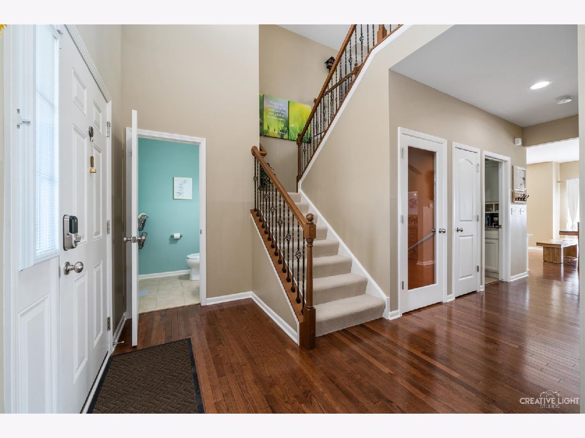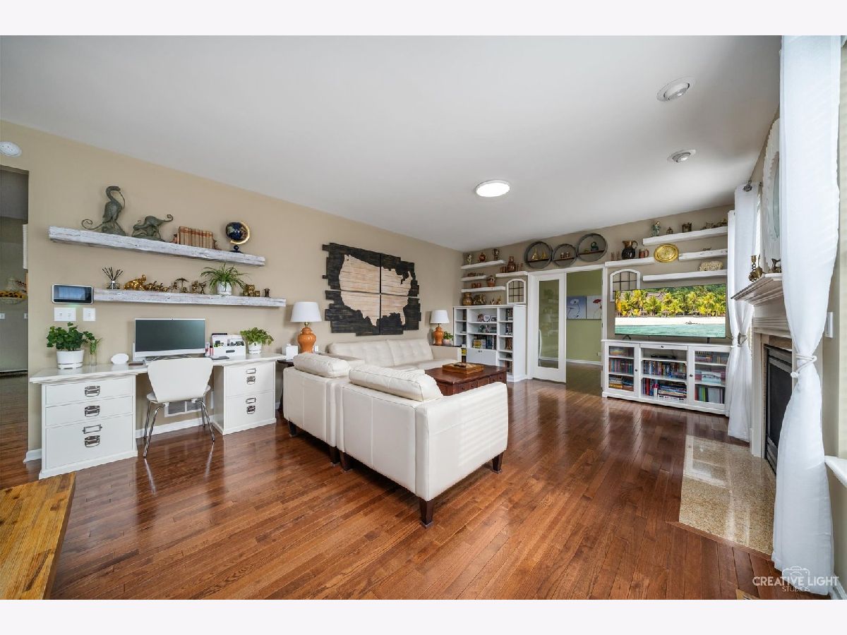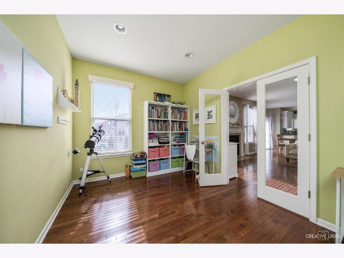 This well cared for home sits across the street from one of the many parks that are located in the desired Highland Woods neighborhood. It features 4 bedrooms (plus a bonus office/den), 2.1 bathrooms, an extended 2 car garage for additional storage space (extra three feet of garage space), Trex deck overlooking the back yard, newly installed landscaping that includes stone retention walls with drain tile added, two stone paver patios for a fire-pit or additional relaxation space, hardwood flooring throughout the entire main level, custom closet cabinetry, custom built-in's, a gas start fireplace, a generously sized kitchen island and a partially finished basement area. Each of the 4 bedrooms features walk-in closets. Highland Woods features: a clubhouse complete with a fitness center, adjacent swimming pools, waterslide, splash pad, sundeck and lap lanes, over 5 miles of walking/biking paths, tennis courts, basketball courts, numerous lakes throughout the subdivision and highly rated Country Trails Elementary School.