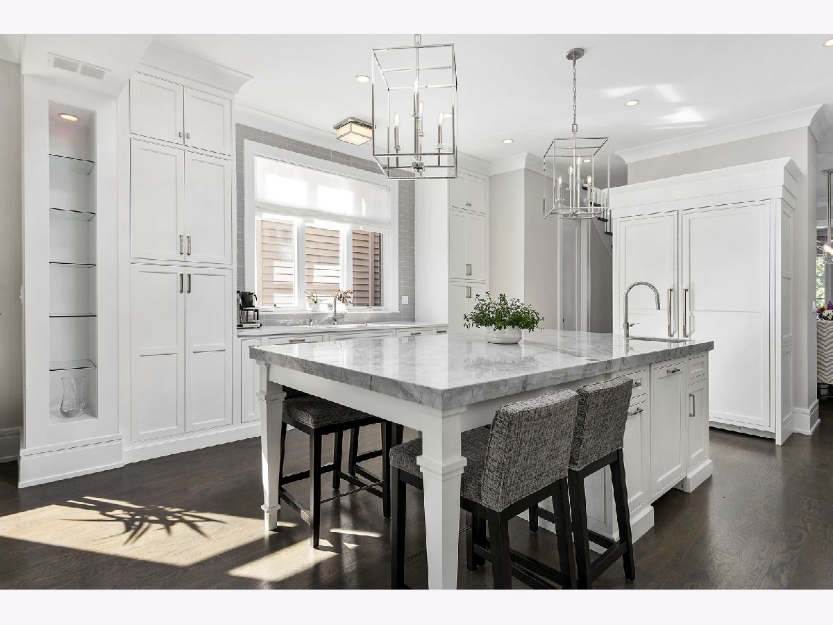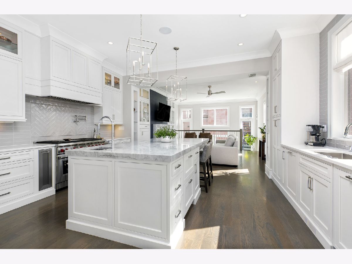 Stunning all masonry 5 bedroom 3.1 bath built by Platinum Builders in the heart of Roscoe Village. Features include floor to ceiling windows in the living room showcasing the fireplace and full wall granite surround. Gorgeous kitchen with top of the line appliances, large island with seating and butler's pantry. Directly off the kitchen is a bright and airy family room featuring custom built-ins and fireplace. 2nd level offers 3 generously sized bedrooms on the same level and laundry room. Light filled primary suite with 2 walk-in closets, luxurious marble primary bath with steam shower and separate soaking tub, split vanities, heather floors and make-up counter. Lower level complete with 2 additional bedrooms, family room, custom built ins, wet bar and heated floors. Mudroom leads to a pavered backyard, built-in grilling area, fireplace and rooftop deck over 2 car garage. Walking distance to all Roscoe street has to offer and in the highly acclaimed Audubon school district.
