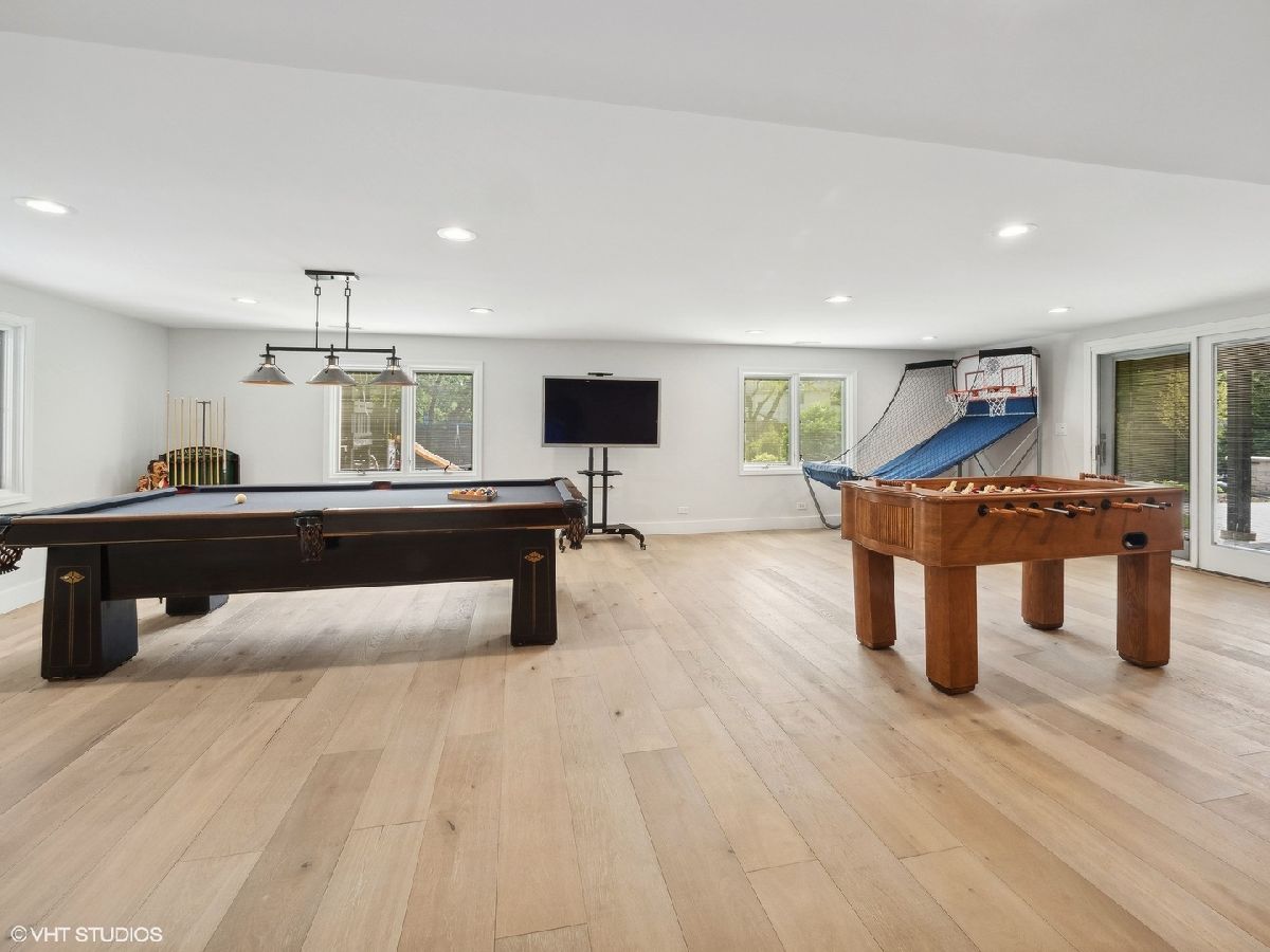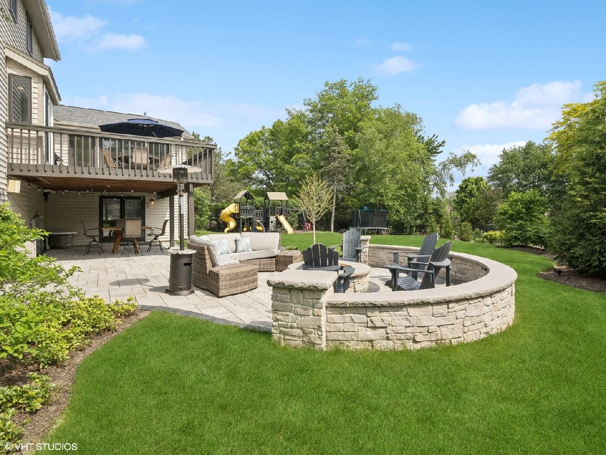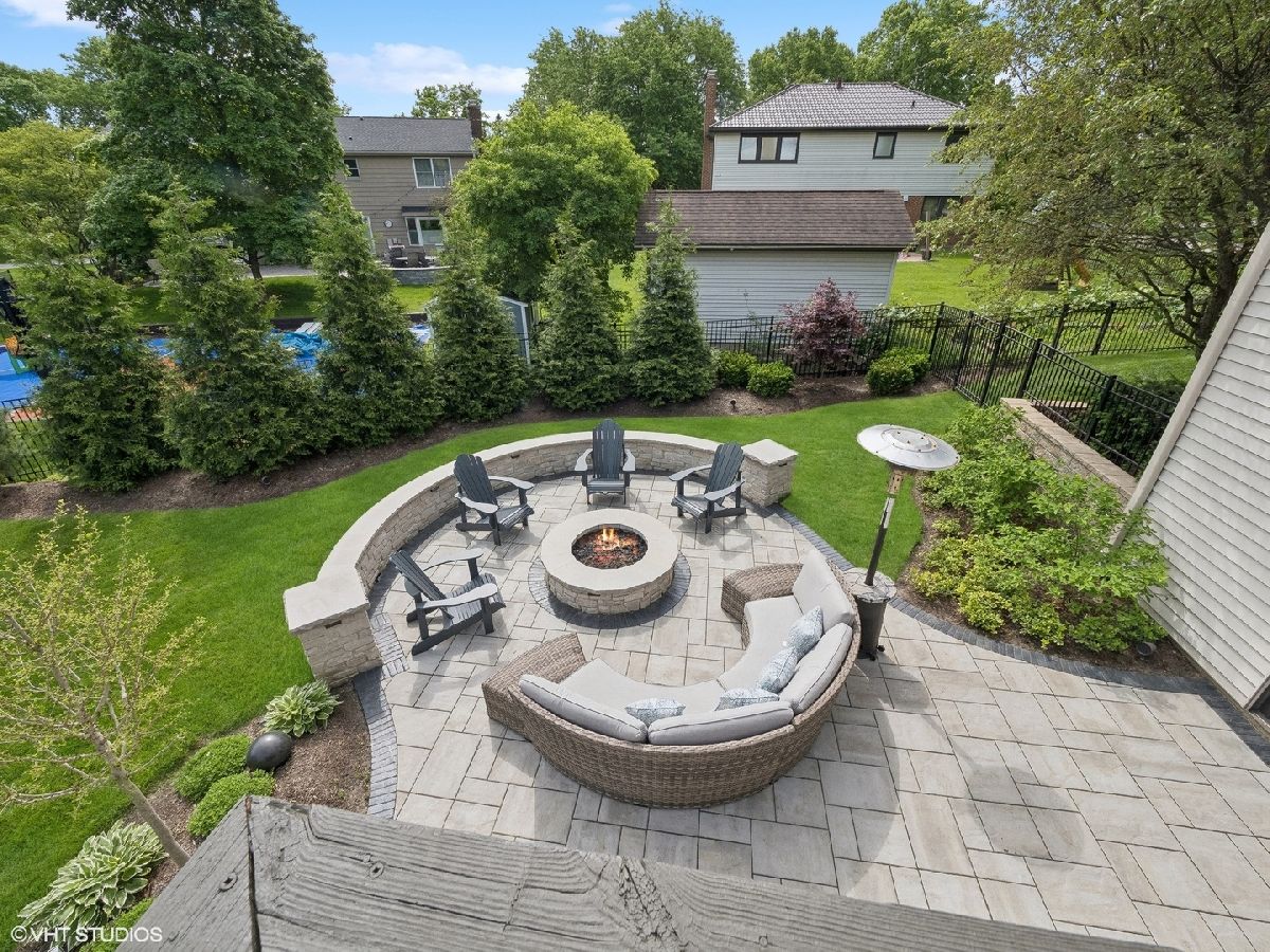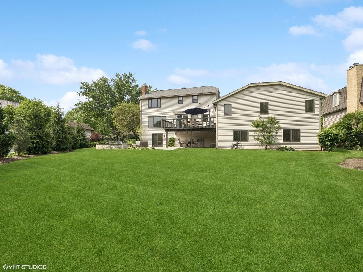 Welcome to 353 South Drovers Lane in Palatine's desirable Whytecliffe neighborhood - a custom home that is not like any other in the area. Nestled on a quiet street of only 4 homes, with 6 bedrooms, 4.5 bathrooms, and an impressive 5,437 square feet of living space, this house has it all. As you step inside, you'll be greeted by the gorgeous finishes where every detail has been attended to. The 8 3/4" wide-plank European white oak hardwood floors span across the open floor plan that is ideal for spending time with family or hosting friends. The family room boasts a custom brick wall with Embarcadero bricks shipped from the wharfs of San Francisco and is complimented by the ship-lap fireplace with a reclaimed wood mantle. The dining area is perfect for large gatherings unifying the family room and the state-of-the art kitchen which boasts smart stainless steel Thermador appliances including a 48" dual oven with a professional high-powered direct vent hood, built-in refrigerator, microwave drawer, and dishwasher. Durasupreme custom shaker cabinets are topped with Calacatta Laza Quartz counters and highlighted by the Phillips Hue smart color changing lights. The first floor primary bedroom suite is a true retreat, complete with a spa-like en suite bathroom, a large double walk-in closet, and sliding door access to the deck. The laundry room is complete with smart LG front load washer and dryer, tons of cabinets and large quartz workstations. You will also find custom built-in lockers for all your storage needs. Upstairs you will find a second primary bedroom with en-suite, 3 additional bedrooms each with unique custom wood finishes, and an additional full bathroom with double sinks. As you retreat to the finished walk out basement, you will again find the European white oak hardwood floors throughout. A large media room with a built in projector wall is perfect for movies or gaming. The huge recreation room comes complete with electric and plumbing rough-in for a second kitchen or bar. With an additional full bathroom in the lower level, the bonus rooms are perfect for a bedroom or for those who need a quiet spot to work or get creative. The fully-fenced yard is beautifully landscaped, featuring a 1,000 square foot patio with a gas fire ring, seat wall, and color changing bluetooth accent lights - the perfect spot for outdoor gatherings. The fully operational irrigation system is perfect for maintaining the expansive yard and lush beds. The 3-car garage is great for storing your vehicles and toys and has a large work area great for projects or storage. With a brand new roof, skylights, gutters, facia, soffit, window trim, and driveway, this home is as functional as it is inviting. You'll have nothing to worry about with the newer A/C units, furnace, tankless hot water heater, and appliances. This home has everything you need and more. Don't miss out - come see 353 South Drovers Lane for yourself and imagine the possibilities!