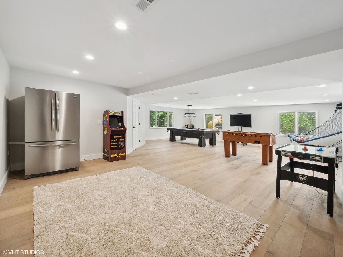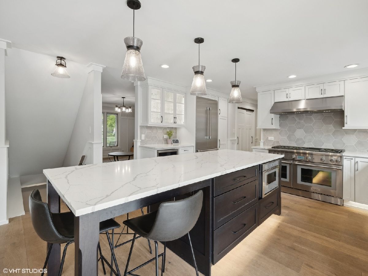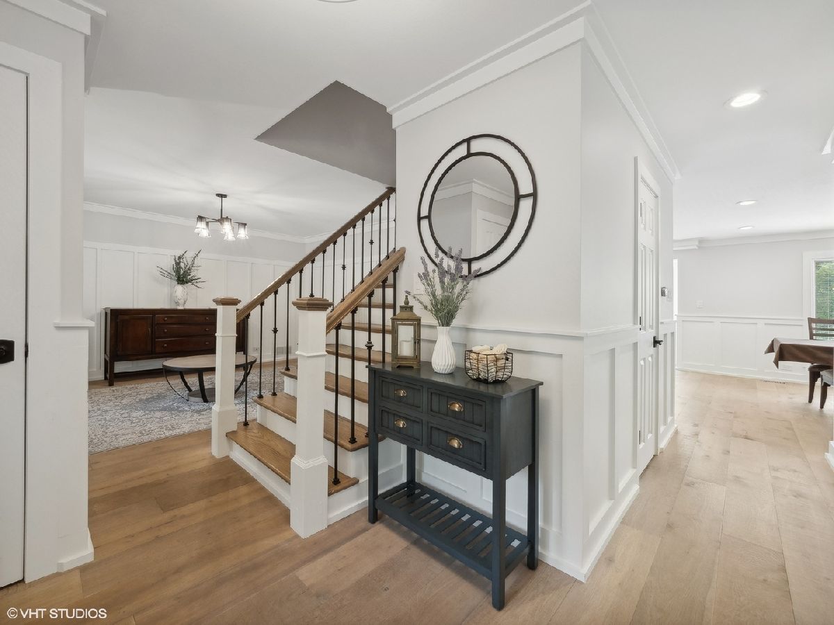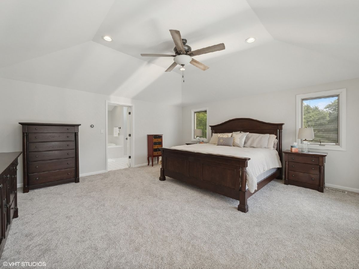Welcome to 353 South Drovers Lane in Palatine's desirable Whytecliffe neighborhood - a custom home that is not like any other in the area. Nestled on a quiet street of only 4 homes, with 6 bedrooms, 4.5 bathrooms, and an impressive 5,437 square feet of living space, this house has it all. As you step inside, you'll be greeted by the gorgeous finishes where every detail has been attended to. The 8 3/4" wide-plank European white oak hardwood floors span across the open floor plan that is ideal for spending time with family or hosting friends. The family room boasts a custom brick wall with Embarcadero bricks shipped from the wharfs of San Francisco and is complimented by the ship-lap fireplace with a reclaimed wood mantle. The dining area is perfect for large gatherings unifying the family room and the state-of-the art kitchen which boasts smart stainless steel Thermador appliances including a 48" dual oven with a professional high-powered direct vent hood, built-in refrigerator, microwave drawer, and dishwasher. Durasupreme custom shaker cabinets are topped with Calacatta Laza Quartz counters and highlighted by the Phillips Hue smart color changing lights. The first floor primary bedroom suite is a true retreat, complete with a spa-like en suite bathroom, a large double walk-in closet, and sliding door access to the deck. The laundry room is complete with smart LG front load washer and dryer, tons of cabinets and large quartz workstations. You will also find custom built-in lockers for all your storage needs. Upstairs you will find a second primary bedroom with en-suite, 3 additional bedrooms each with unique custom wood finishes, and an additional full bathroom with double sinks. As you retreat to the finished walk out basement, you will again find the European white oak hardwood floors throughout. A large media room with a built in projector wall is perfect for movies or gaming. The huge recreation room comes complete with electric and plumbing rough-in for a second kitchen or bar. With an additional full bathroom in the lower level, the bonus rooms are perfect for a bedroom or for those who need a quiet spot to work or get creative. The fully-fenced yard is beautifully landscaped, featuring a 1,000 square foot patio with a gas fire ring, seat wall, and color changing bluetooth accent lights - the perfect spot for outdoor gatherings. The fully operational irrigation system is perfect for maintaining the expansive yard and lush beds. The 3-car garage is great for storing your vehicles and toys and has a large work area great for projects or storage. With a brand new roof, skylights, gutters, facia, soffit, window trim, and driveway, this home is as functional as it is inviting. You'll have nothing to worry about with the newer A/C units, furnace, tankless hot water heater, and appliances. This home has everything you need and more. Don't miss out - come see 353 South Drovers Lane for yourself and imagine the possibilities!