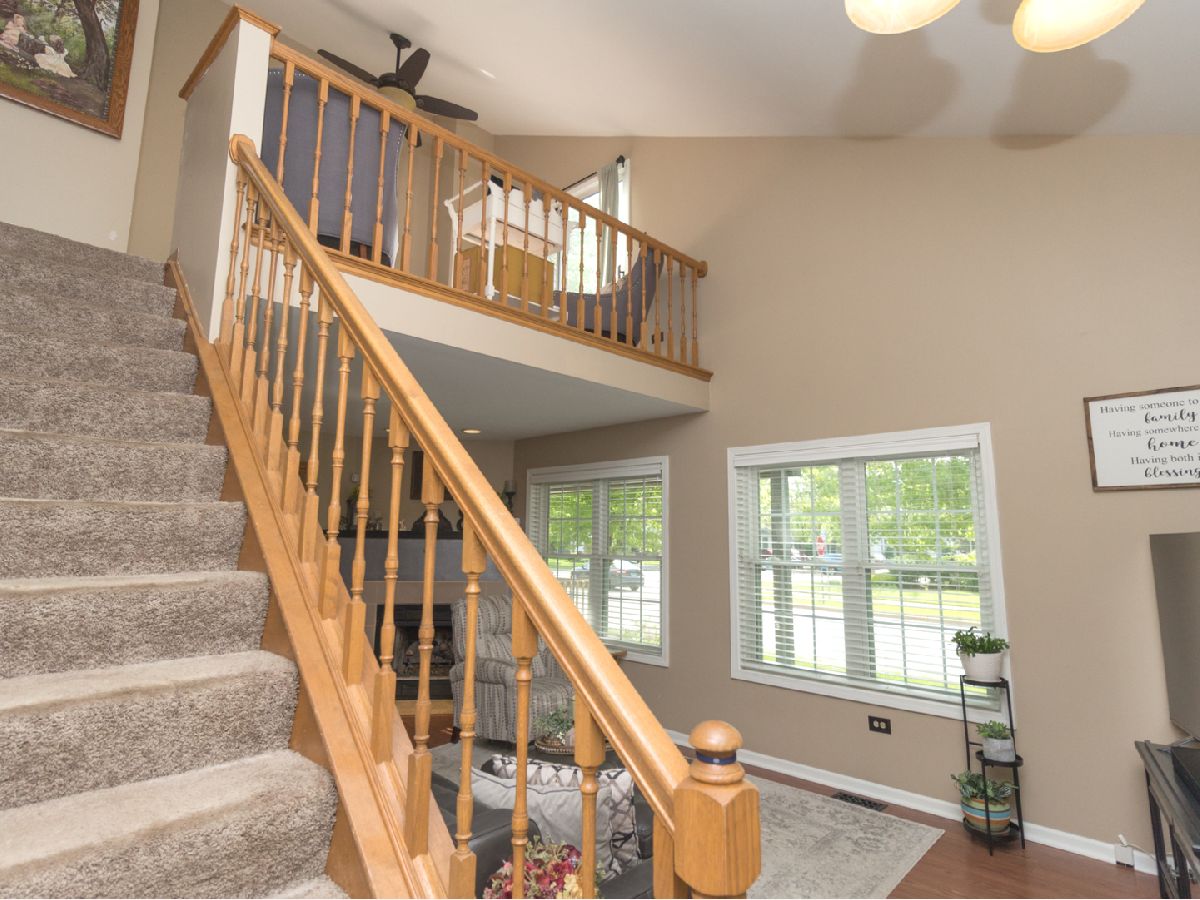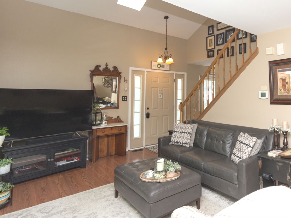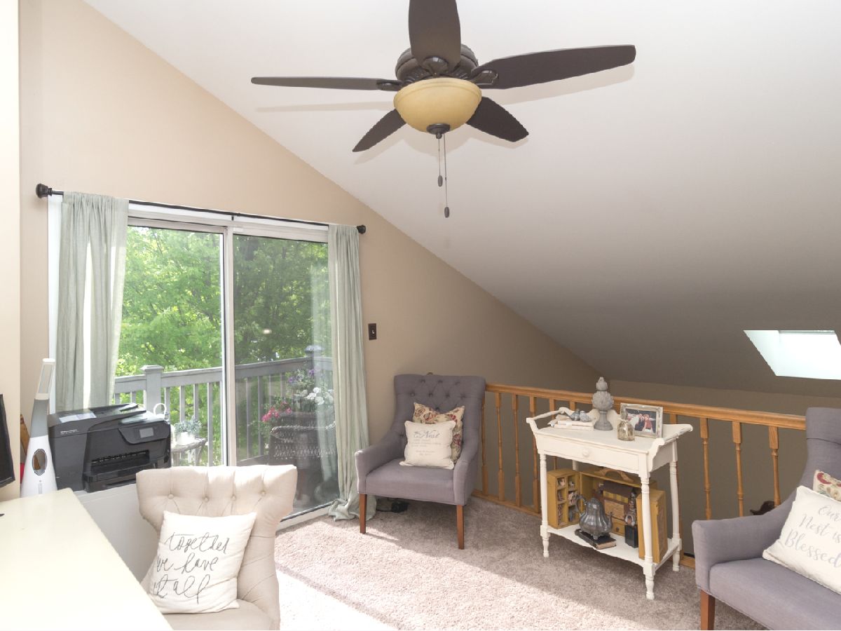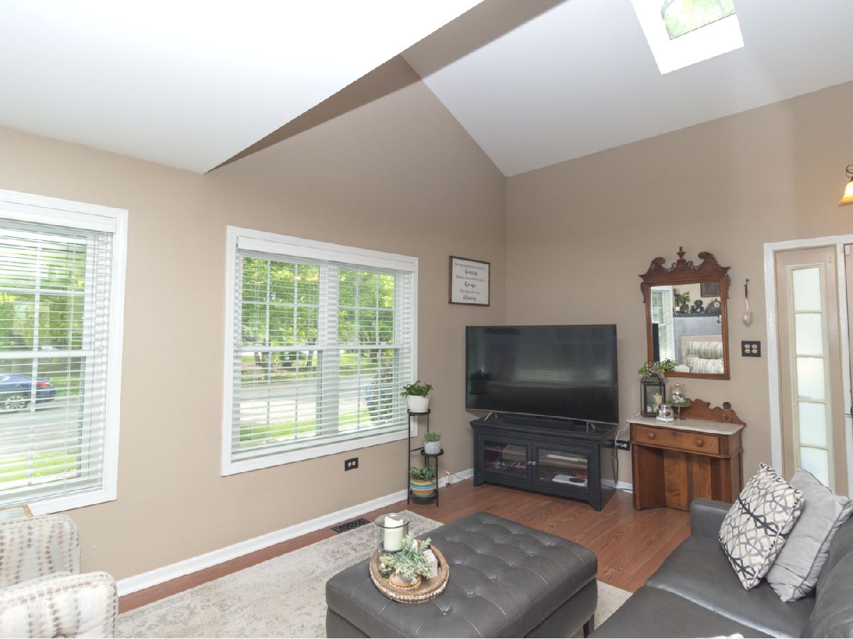 Beautiful, well cared for 3 story end-unit Townhome in school district 204! Lots of natural light with skylights, vaulted ceiling, additional cabinets in stylish updated kitchen, stainless appliances, granite countertops, newer flooring, multiple ceiling fans, jacuzzi soaker tub, new windows living room, 6 panel doors, upgraded fixtures and hardware, full finished basement, built in storage units, security system, ceramic fireplace with gas logs, private balcony, loft can be made into 3rd bedroom, cozy front porch with mature flowering shrubs, perennials and landscape lighting. Ducts last cleaned 12/21. This was the builder's model! Very nice, clean home in excellent condition ready for move-in. Across from walking trail and scenic pond/park area. Sit on your private porch or balcony and watch the sunset over the lake. Close to Fox Valley Mall and surrounding shopping/restaurants. Non smoking/pet owners. This one will sell fast!