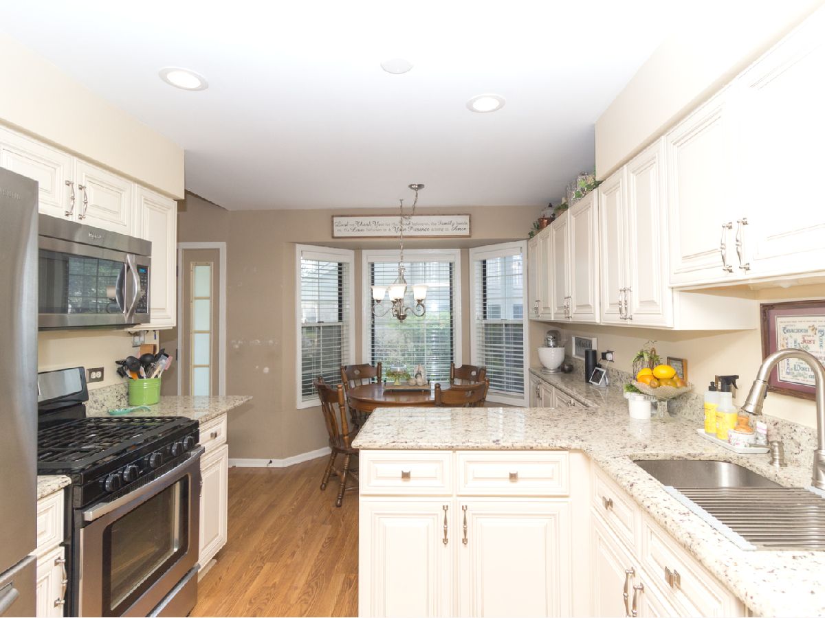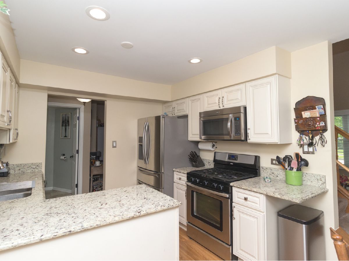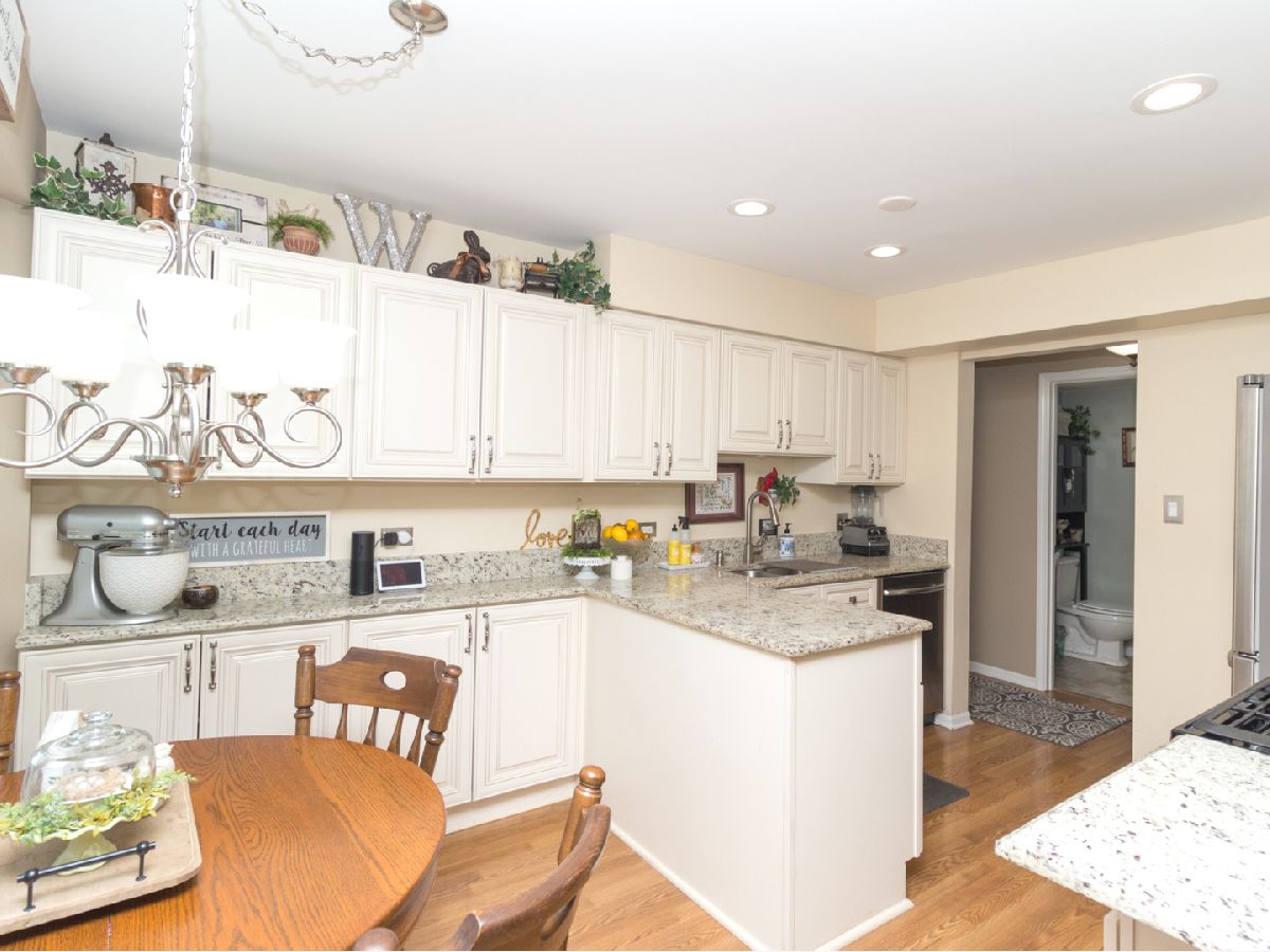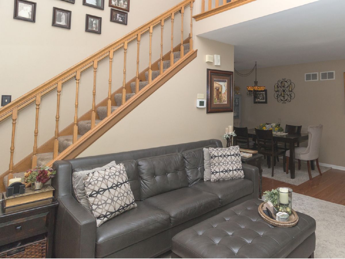 Beautiful, well cared for 3 story end-unit Townhome in school district 204! Lots of natural light with skylights, vaulted ceiling, additional cabinets in stylish updated kitchen, stainless appliances, granite countertops, newer flooring, multiple ceiling fans, jacuzzi soaker tub, new windows living room, 6 panel doors, upgraded fixtures and hardware, full finished basement, built in storage units, security system, ceramic fireplace with gas logs, private balcony, loft can be made into 3rd bedroom, cozy front porch with mature flowering shrubs, perennials and landscape lighting. Ducts last cleaned 12/21. This was the builder's model! Very nice, clean home in excellent condition ready for move-in. Across from walking trail and scenic pond/park area. Sit on your private porch or balcony and watch the sunset over the lake. Close to Fox Valley Mall and surrounding shopping/restaurants. Non smoking/pet owners. This one will sell fast!