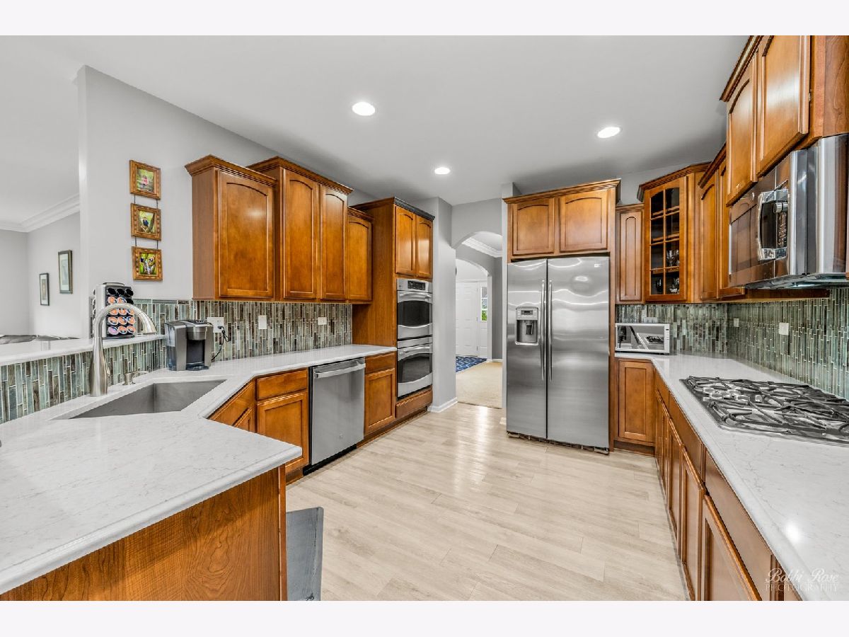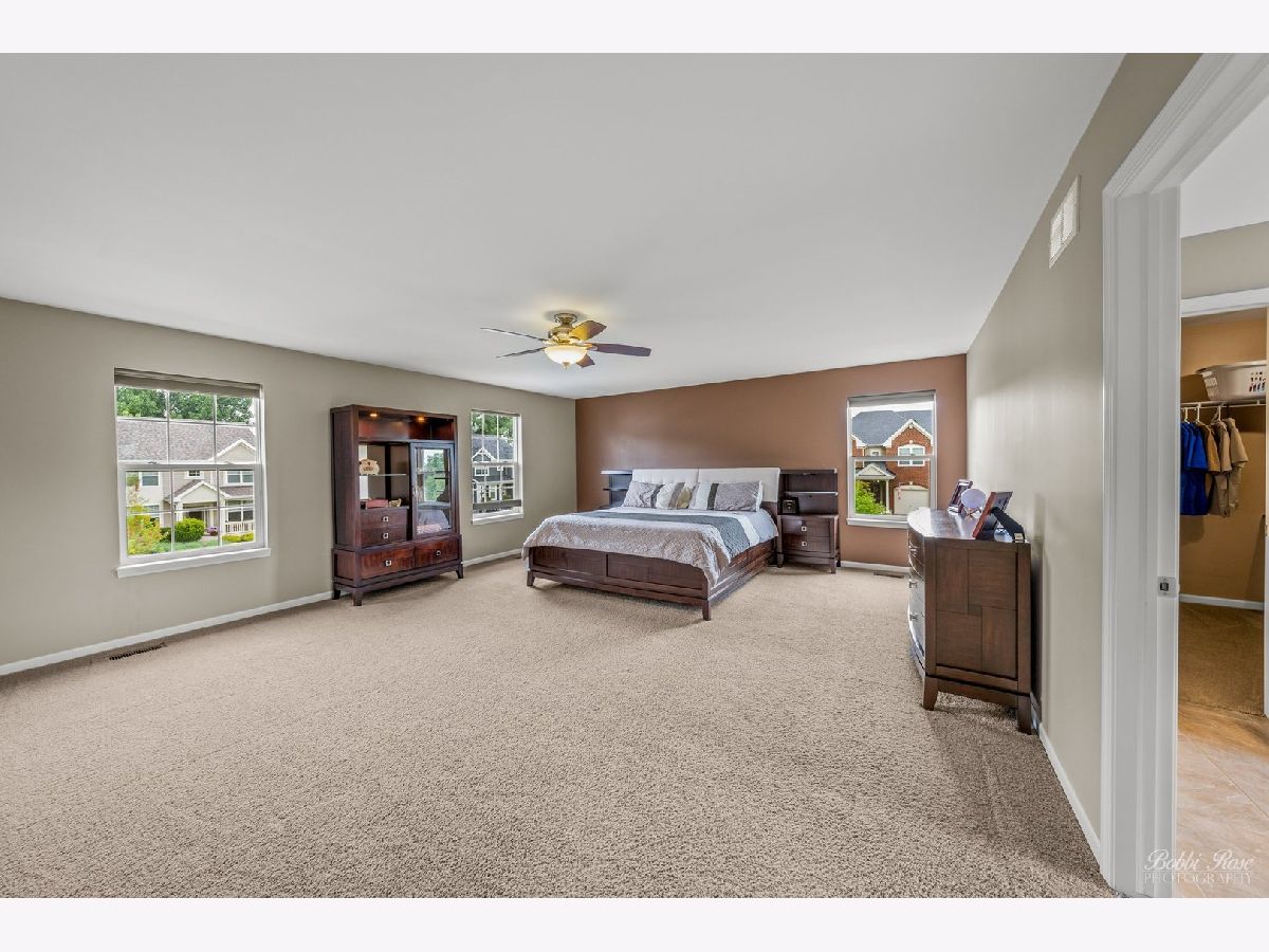 You don't want to miss this absolute gem in Highland Woods!! Why wait for new construction build when you can move right into your new home with all the bells and whistles. So many unique perks and upgrades have been done for you on this home already! Welcome to the best home on the block sitting on an oversized corner lot! Perfect blend of comfortability and luxury throughtout this spacious well laid out home. Original owners have taken great care of this home and their pride of ownership shows throughout. Pull up to the large corner lot with an irrigation system in the front and back yard, widened concrete driveway leading to the 3 car tandem garage. The garage is fully insulated and heated to make it easy to work in for any season and plenty of room for storage and can be a dream garage workshop. A very convenient hot and cold water tap is in the garage for easy use. Outdoor WiFi LED lighting includes four coach lights and five flood lights, which can also change colors for the holidays. Lights will come on at dusk and go off at dawn. Beautiful and covered front porch will lead you into the open two story foyer. Stunning crown molding throughout first floor will add that extra luxurious touch to each room. Recessed lighting throughout keeps the home well lit in every part of the house. Gas fireplace in the family room will keep you warm and cozy during the winter months. Living room and formal dining room greet you at front entry of house. Walk to the back of the house into the large family room which opens right up to the large eat in kitchen area. Another excellent upgrade on this house was the large add on bump out area which opens up your spacious kitchen even more. All stainless steel appliances which include a double oven, with plenty of quartz countertop space to prep on and gorgeous backsplash make this kitchen a cooks dream. Walk in pantry right next to the kitchen gives you plenty of room for storage of not only food but also crock pots and extras. An extra large mudroom off the garage also has a sink in it which makes coming in from garage an easy clean up spot. Home alarm system is currently in the home but not in use and new owner can choose to easily hook it back up with a provider. Surveillance system is installed to keep your family safe and will stay with the home. First floor bedroom off the family room is currently used as an office but makes a great guest room or room for in laws. Second floor hosts four large bedrooms with a giant loft area and an optional extra 6th bedroom/flex room on the spacious upstairs level. If another bedroom is needed that loft can even be a 7th bedroom. Laundry is also on the second floor for easy access to the bedrooms to pick up or drop off laundry baskets. The very large basement area is unfinished but ready for your vision and touches to make it your own. Insulation is already up and there is a bathroom rough in already set for you to put in a basement bathroom. There are upgrades galore on this stunning home that is absolutely move in ready. Highland Woods is located in the Burlington 301 school district with and elementary school is right in the community.. Highland Woods offers a wide range of amazing amenities, including 5 miles of walking paths, 7 parks, and playgrounds, a fitness center, a clubhouse, pool, water slide and a waters splash park. You also have outdoor basketball, tennis courts, and sand volleyball, an 18 acre lake with open green space with picnic area. This is an amazing place to call home! Schedule your tour today so you don't miss this one!
