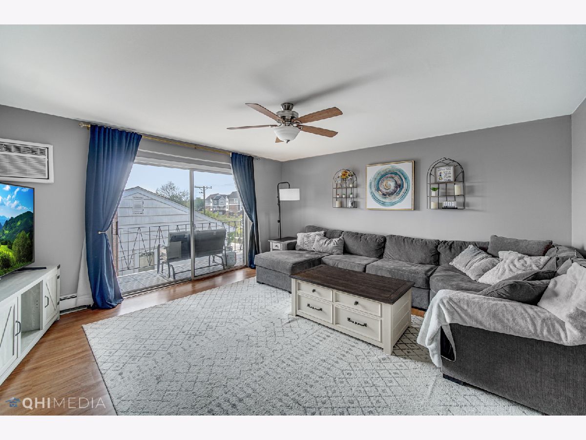 Unbelievable value in LaGrange for 2 beds, 1.5 baths with updated kitchen and extra storage! Private, top floor condo offers spacious living room with balcony access - grills allowed! - and clean, recently painted leading you into the gorgeous kitchen! Stainless steel appliances, contemporary subway backsplace and clean, bright white cabinets provide style and storage for all of your cooking needs! Both bathrooms are recently updated - master includes a private half bath! Laundry and storage in-building, as well as assigned parking (ask about potential second space). HOA covers heat, water and trash, as well as the usual exterior maintenance and snow removal. Investors welcome - Can be rented!