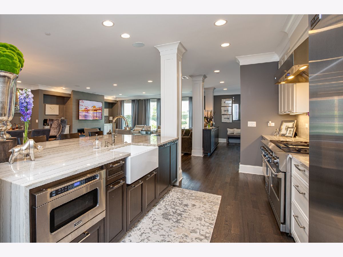 Discover Wheaton's Premier Location & Lifestyle. Saunter to shops, fine restaurants, Saturday's French Market, Starbucks, Mariano's, the Metra Station with express trains to Chicago, the library, and featured events at Memorial Park and Wheaton College! Situated in Wheaton's historic district, this exquisite brick double townhome offers over 6,000 square feet of luxury living on four levels, interconnected by a private elevator and staircase. Award-winning features include hardwood floors, custom millwork, built-in "floating" furniture, and designer window treatments throughout. The first level is stunning and meticulously designed with wide-open spaces, bright windows, tall ceilings, and contemporary colors. The inviting foyer features a walk-in guest closet, a gorgeous staircase, your private elevator, guest bath, and a multi-purpose walk-in butler's pantry. The great room boasts a luxurious fireplace and entertainment space, along with an amazing dining room with built-in custom cabinets and a full wine chiller. The true gourmet kitchen offers a large island, stunning Quartzite counters, abundant cabinets, a Viking refrigerator, Viking freezer, Viking 6-burner range with griddle, and a Viking hood. The second level features the expansive owner's suite, perfect for quiet evenings. The luxurious private bath includes a freestanding tub, wide shower, double vanities, and two adjacent walk-in closets with custom built-ins. This floor also includes an office, a separate bath, and a convenient laundry and storage room. The third level is highlighted by a spacious family room opening to a private balcony with amazing views of the gardens, downtown Wheaton, and beautiful sunsets. 2 guest bedrooms feature walk-in closets and two beautiful private baths. The lower level offers the fourth en suite bedroom with a full bath, an exercise room, a large storage room, and an oversized 4-car garage. The association provides a pool, an indoor fitness center, an outdoor sundeck, and a lovely clubhouse suite with a full kitchen for parties and larger gatherings. Relax in this fine property with its exceptional style, quality, and location.