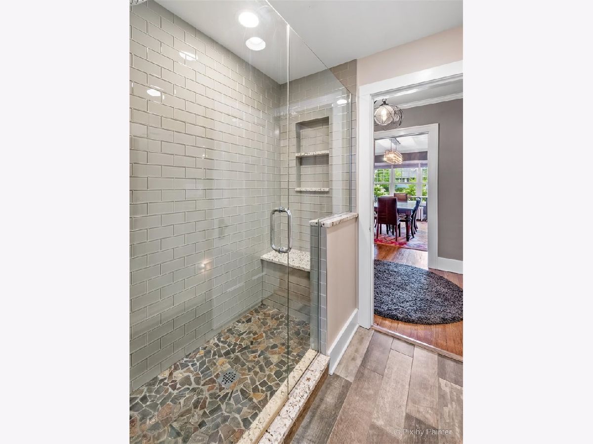 WOW Gorgeous Ben Franklin Charmer! This amazing 5 bed, 2.5 bath, vintage Glen Ellyn 2 story checks all the boxes! Step into the open foyer with beautiful tile work! First floor boasts gleaming hardwoods, large living room with beautiful wood burning fireplace, built-in shelving and in-set windows! All season room off the living room covered in windows and drenched in natural light! Huge dining room with updated lighting. All white kitchen with solid surface counters, all stainless appliances, seating area and over-sized pantry. First floor master, 2nd bedroom and remodeled bath with heated flooring completes the first floor! 2nd floor with 3 huge bedrooms and a bonus family room with built-in shelving, new carpeting throughout, new windows and remodeled baths! Brand new carpet in basement with decorative fireplace. SO much storage! Dine al fresco in the fully fenced back yard with concrete stamped patio and beautiful privacy fence and lush landscape! Upgraded electrical, new electrical box - 2021, dimmer switches on first floor and basement, ring doorbell, basement professionally waterproofed. 2nd floor windows -2021. Dining room and kitchen windows - 2018. Roof, gutters and fascia - 2019. Washer/Dryer - 2019. Garage door - 2019. Boiler 2018. HWH - 2017. Walk to town and train and all Glen Ellyn has to offer!