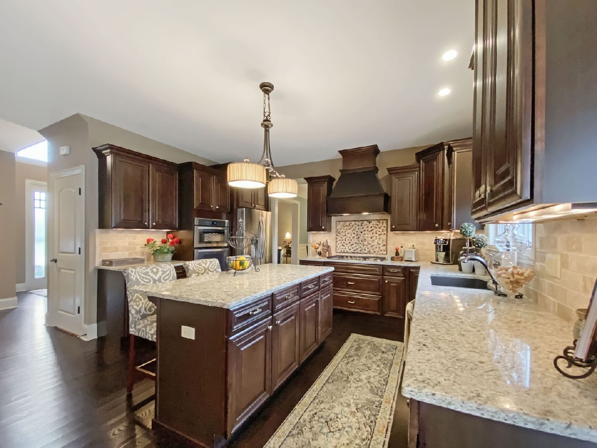 Welcome Home to this STUNNING 5 bedroom, 4 bath custom home in Highly Desired Highland Woods! Situated on one of the larger lots in the community, this home shows like a model and is move in ready! From the moment you pull up, this home boasts a beautiful brick and stone exterior, extra tall entry doors and beautiful landscaping! The 2 story entry welcomes you home with beautiful wood floors and soaring ceilings! On the main level, Large Formal Living & Dining Room with custom molding and hardwood floors. The stunning Gourmet Kitchen has been beautifully upgraded with gorgeous cabinetry w/crown molding, Stone backsplash, upgraded Stainless Steel appliances, Large Island with breakfast bar, gorgeous floors, custom window treatments, and a fantastic walk in pantry w/custom built ins. Large Dinette off the kitchen opens into the Family and has beautiful views of the large backyard. The expansive Family room features lush carpeting, beautiful fireplace and custom window treatments. 1st floor also features a large bedroom with crown molding, large closet and also a full upgraded Bath which is great if you are looking for an guest suite option on the main level. There is also a large Mud room area as well as Laundry Room with upgraded appliances, Built in Cabinetry, and large sink with counter space. The staircase heading upstairs features hardwood floors, upgraded railings and built in nightlights. Upstairs, you will find a Gorgeous Master suite with tray ceiling, custom light fixtures, Large walk in closet with custom organizers and a STUNNING Private bath with fantastic extra wide counter height Dual vanities loaded with storage, gorgeous tile flooring, Separate tub and Large shower. Bedroom 2 & 4 features Jack & Jill bathroom set up, walk in closets and great room sizes. 3rd Bedroom suite features walk in closet and beautifully upgraded private bath. The home features a Full Deep Pour Basement with all new HVAC System & Water Softener making this home super energy efficient! Home has loads of space, all mechanicals neutrally placed so creating your dream basement will be a breeze! This is truly a stunning home! Top to bottom, shows like a model! Situated on one of the larger lots in the community, Home features Huge Fenced in yard, Lush Landscaping, Irrigation system, large patio, and is steps from walking paths. Fantastic Community with loads of paths, parks, open space and so much to do. On-site school, mins to shopping and easy commuting, this Home is the one you have been waiting for!