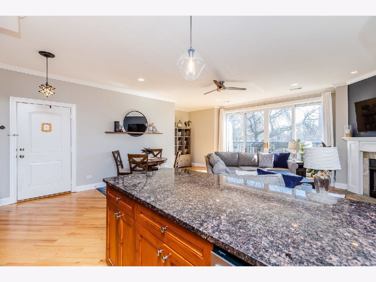 Bright and spacious 3 bedroom, 2 bathroom condo featuring a stunning, open floorplan. Extra wide unit with tall ceilings, recessed lighting, and hardwood floors throughout create a great space for any homeowner. This condo highlights floor to ceiling windows with 2 Juliet balconies, which allows for great sunlight to brighten your day. The kitchen features 42" cabinets, granite countertops, stainless steel appliances and a breakfast bar that overlooks the massive living space and cozy fireplace. Enjoy resting in the large primary bedroom which includes a spa-like en suite with jacuzzi tub, sperate shower, double vanity, Juliet balcony, and a walk-in closet with custom organizers. Storage space is not a problem in this condo. Large storage closet is located in the unit with several extra closets throughout. In unit laundry and designated parking included as well. Located in the heart of Bronzeville and walking distance to from CTA, the lake, White Sox stadium, grocery, shopping and more!