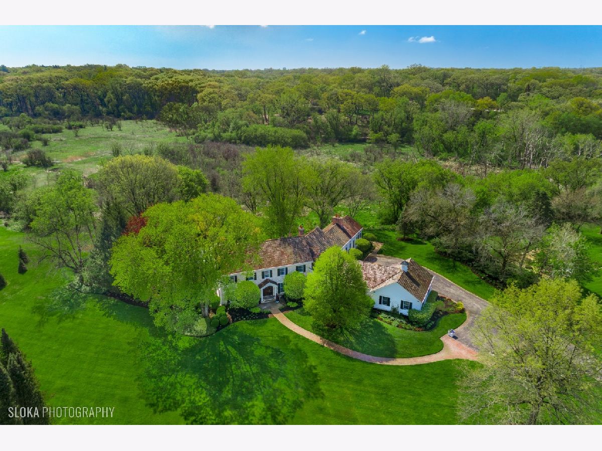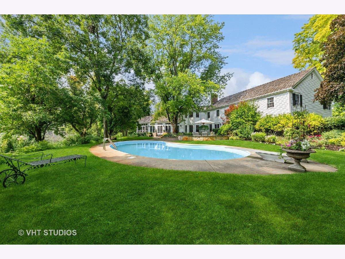 Prepare to fall in love with this postcard perfect Bucks County Farmhouse with 5 Bedroom and 4.1 Bathrooms on an idyllic setting on 5 private acres on a quiet lane in Barrington Hills. The property boasts mature trees, a swimming pool, gorgeous landscaping, gardens, brick walkways, a raised bed vegetable garden and stunning views from all directions. An expansive addition by Tom Reed to the original home has created the perfect blend of rooms and a flowing floor plan that wraps around the back patio and pool offering fab entertaining options and year round enjoyment of nature. The gallery-style entry leads you to the formal Living Room, private Den, expansive Dining Room with fireplace and a grand Kitchen & Family Room that will take your breath away! The custom gourmet Kitchen (2016) offers timeless details, a 16-foot island, marble countertops, Wolf range & double oven with steam oven, two Bosch dishwashers, built-in KA Refrigerator, two sinks with food prep accessories with polished nickel fixtures, custom cabinetry with bonus storage options, chic light fixtures, Eating Area plus the hidden walk-in-pantry is icing on the cake! A phenomenal Family Room boasts vaulted ceilings, a soaring stone fireplace and French doors to the patio & pool. Next you will adore the spacious Screened Porch overlooking the fen and a convenient full bathroom serving the pool. The brick patio provides the outdoor space you crave including a built-in grill. You will appreciate the well designed mudroom with built-in cubby storage, the 4-car extra deep garage is just steps from your dream Kitchen, a separate laundry room with loads of cabinets and countertop space and a formal powder room positioned just off of the Foyer. Note the fabulous millwork, professional decor, chic light fixtures and floor to ceiling windows. The upper level offers a lux Primary Suite with generous walk-in closets plus four additional bedrooms and two hall bathrooms. A full basement is framed out and ready for finishing and could include a large REC room with a stone fireplace, exercise room, full bath, excellent storage and more. Virtually staged & virtually finished REC room photo provides a conceptualization ONLY of the room as a finished area. This marvelous property offers the perfect escape with acres of Forest Preserve, horse trails nearby and miles of roads to bike, run or walk and enjoy nature out your back door. Also, award winning District 220 Schools, easy access to Metra rail and the expressway.