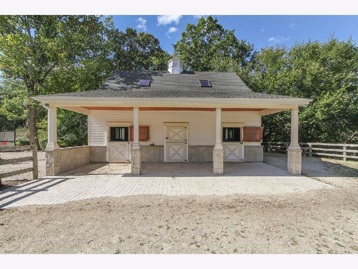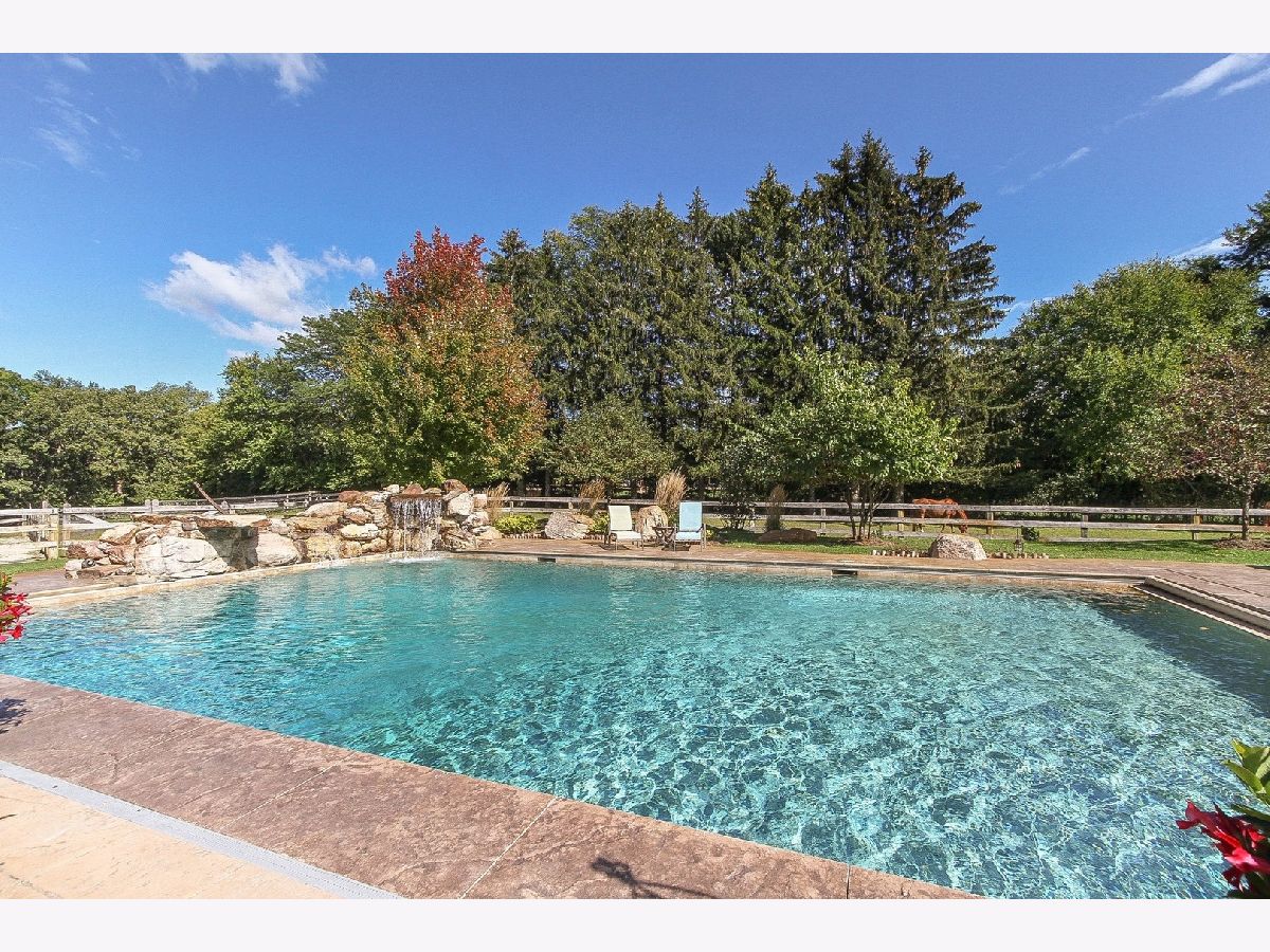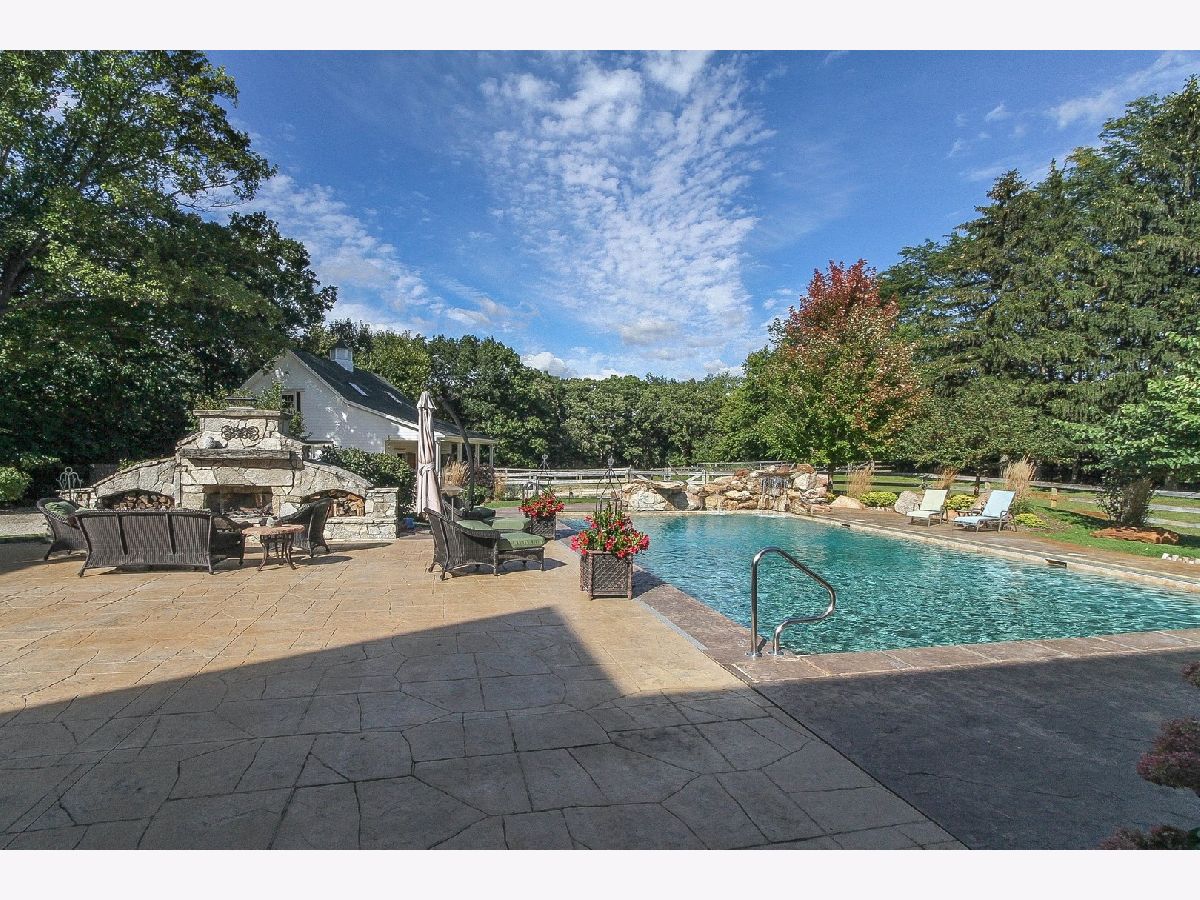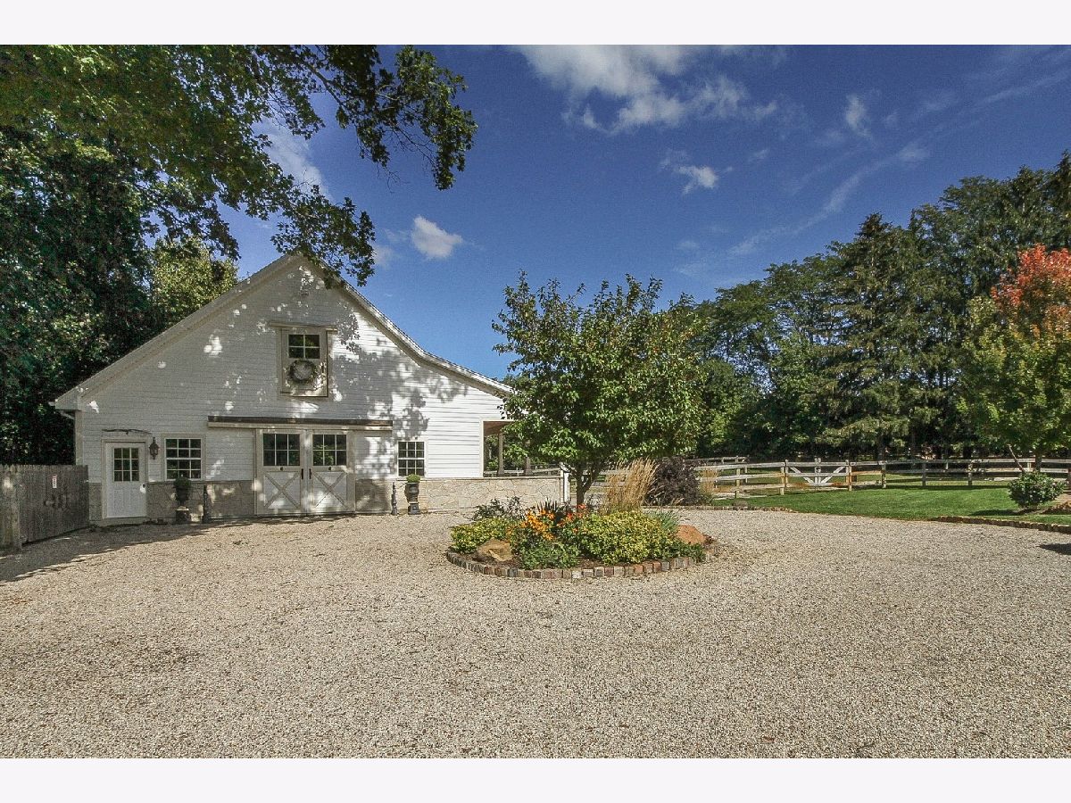 Absolutely stunning Nantucket Colonial set on 5.84 glorious gated acres with a huge wrap around porch will take your breath away! This gorgeous property boasts a 5 Bedroom / 4.1 Bathroom home with rejuvenating outdoor spaces including a gorgeous pool with stone waterfall & diving platform, porch with pergola, large patio with stone fireplace, fabulous gardens and fruit trees. Also, garage spaces for up to 5 vehicles, finished bonus room above detached 2-car garage and an outstanding 3-stall barn. A welcoming Foyer with curved staircase, high ceilings and Living Room with custom bookcases and marble fireplace sets the stage. A Grand Dining Room with French doors to the Porch is perfect for entertaining while an incredible gourmet Kitchen, with two islands, serves up loads of work space for meals of any size includes a Wolf range, an oversized SubZero refrigerator/freezer, a wine fridge, a huge walk-in pantry and breakfast room. Soaring ceiling and stone surround fireplace creates a cozy Hearth Room on one side and a sunny Family Room overlooking the patio and pool. Spacious first floor bedroom with walk-in closet & ensuite bath allows for true one level living and is perfect for a guest, in-law or au pair suite. Direct entry from the 3-car garage is a step saver plus there are two laundry rooms (main level & upstairs), a mud room and an office for the WFH trend. The front or back staircases will take you to the upper level and Primary Suite with a sitting area, walk-in closet and lux bathroom. Bedroom 2 is ensuite and Bedrooms 3 and 4 have a shared bathroom. The lower level includes a large REC, Game and Exercise Rooms with durable stained concrete flooring, roughed in plumbing for a bathroom, large storage room and service stairs to the garage level. Extensive thought and design was put into the barn with its brick paver aisle, tack room, grain room, wash rack, hay loft, paddock and pastures. Nearby Spring Creek Valley Forest Preserve with riding trails and the Riding Center are a short trot away. Country living at its best plus easy access to town, award winning schools and expressways will make your dreams come true!