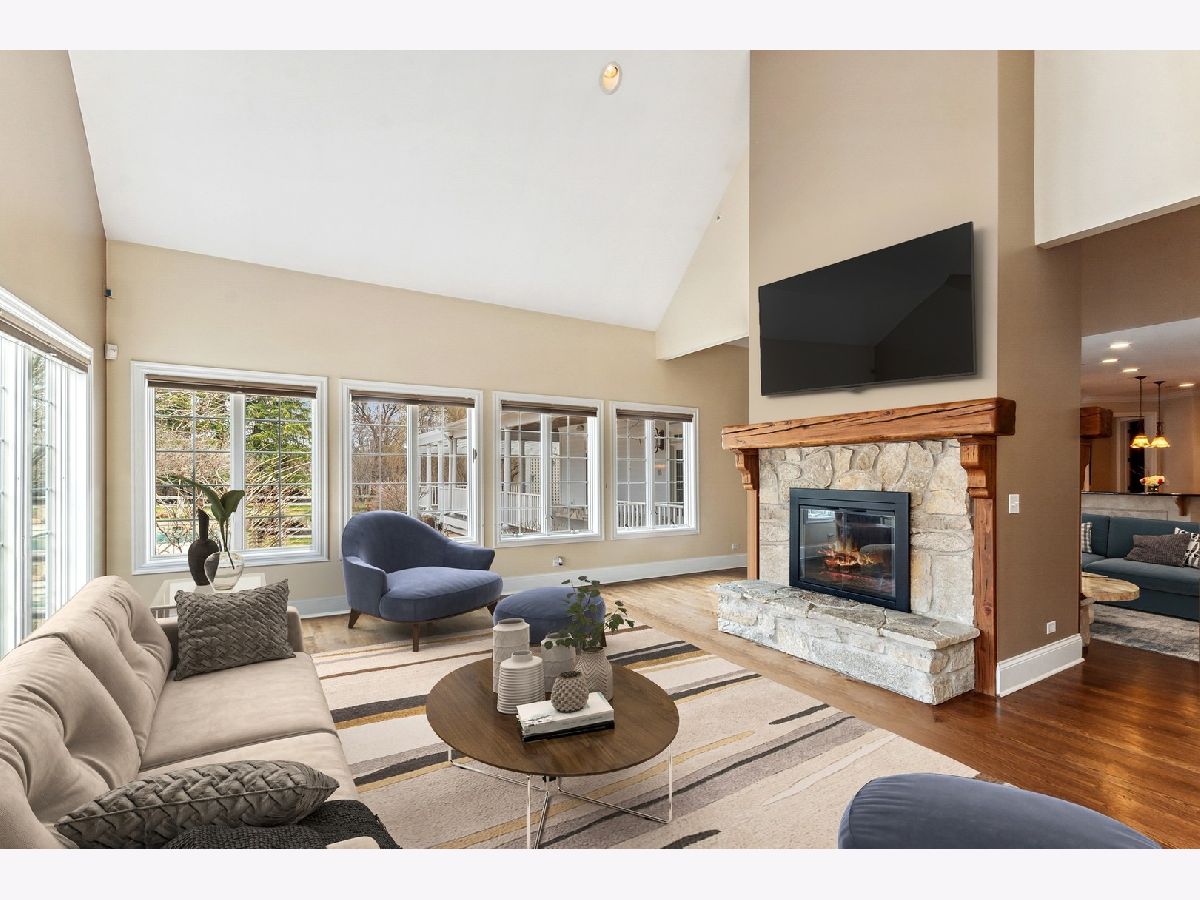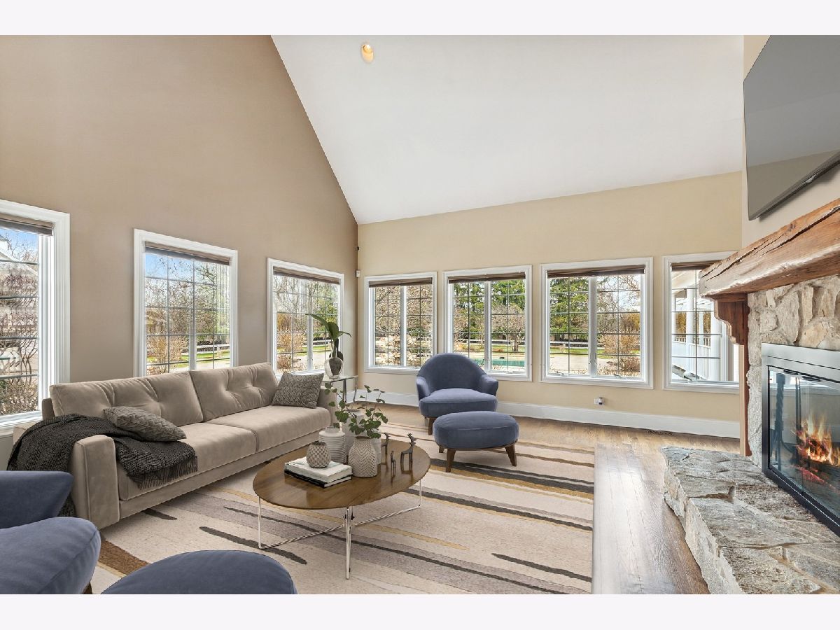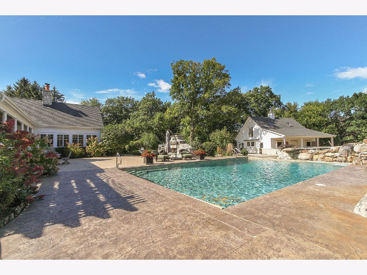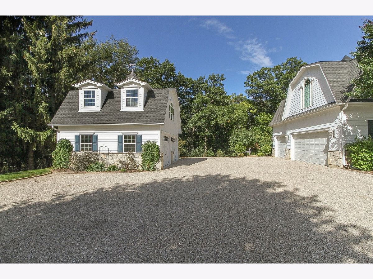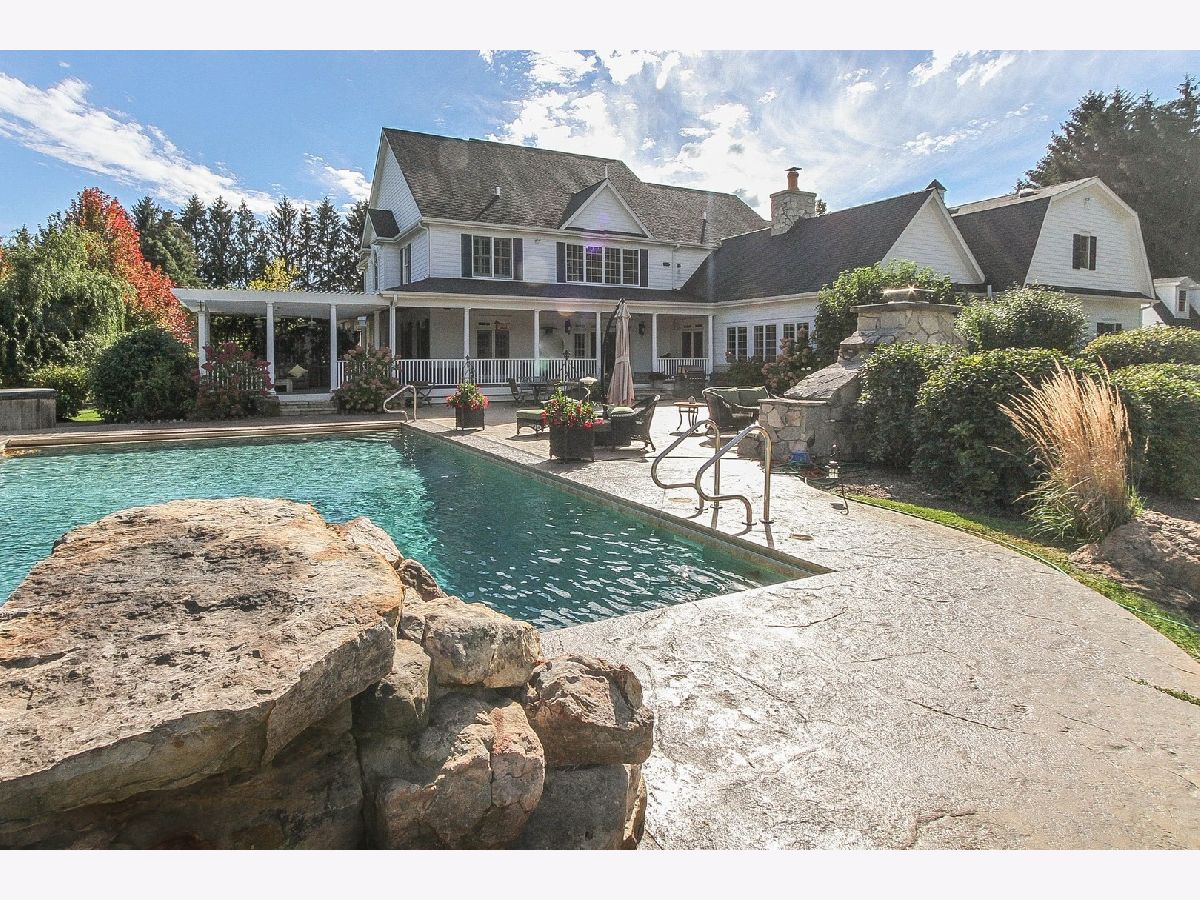 Absolutely stunning Nantucket Colonial set on 5.84 glorious gated acres with a huge wrap around porch will take your breath away! This gorgeous property boasts a 5 Bedroom / 4.1 Bathroom home with rejuvenating outdoor spaces including a gorgeous pool with stone waterfall & diving platform, porch with pergola, large patio with stone fireplace, fabulous gardens and fruit trees. Also, garage spaces for up to 5 vehicles, finished bonus room above detached 2-car garage and an outstanding 3-stall barn. A welcoming Foyer with curved staircase, high ceilings and Living Room with custom bookcases and marble fireplace sets the stage. A Grand Dining Room with French doors to the Porch is perfect for entertaining while an incredible gourmet Kitchen, with two islands, serves up loads of work space for meals of any size includes a Wolf range, an oversized SubZero refrigerator/freezer, a wine fridge, a huge walk-in pantry and breakfast room. Soaring ceiling and stone surround fireplace creates a cozy Hearth Room on one side and a sunny Family Room overlooking the patio and pool. Spacious first floor bedroom with walk-in closet & ensuite bath allows for true one level living and is perfect for a guest, in-law or au pair suite. Direct entry from the 3-car garage is a step saver plus there are two laundry rooms (main level & upstairs), a mud room and an office for the WFH trend. The front or back staircases will take you to the upper level and Primary Suite with a sitting area, walk-in closet and lux bathroom. Bedroom 2 is ensuite and Bedrooms 3 and 4 have a shared bathroom. The lower level includes a large REC, Game and Exercise Rooms with durable stained concrete flooring, roughed in plumbing for a bathroom, large storage room and service stairs to the garage level. Extensive thought and design was put into the barn with its brick paver aisle, tack room, grain room, wash rack, hay loft, paddock and pastures. Nearby Spring Creek Valley Forest Preserve with riding trails and the Riding Center are a short trot away. Country living at its best plus easy access to town, award winning schools and expressways will make your dreams come true!