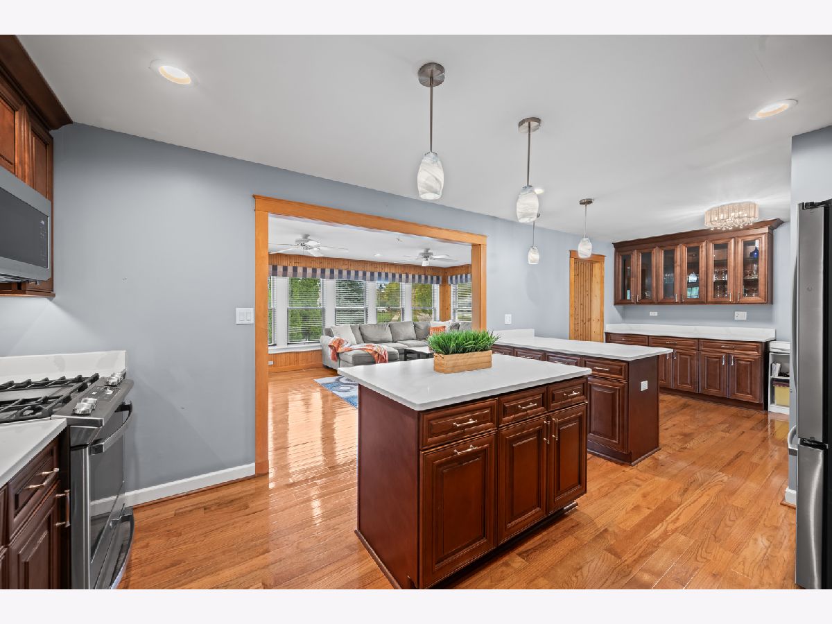 Welcome to this beautifully updated and expanded home in one of Hoffman Estates' most desirable neighborhoods, attending Fremd High School! Winston Knolls offers incredible curb appeal and 3590 Winston Dr is no exception. Step inside to a bright, open-concept layout that perfectly balances style and functionality. The spacious family room addition features large windows that flood the space with natural light and seamlessly flow into the dining area, creating the ideal setup for entertaining and everyday living. The updated kitchen is a true showstopper with custom cabinetry, stainless steel appliances, a central island and coffee bar island in addition to matching built-in cabinetry to expand the kitchen even further for entertaining. Just off the kitchen, the living room with bay window invites you to relax year-round, offering the perfect spot for morning coffee, reading, or family gatherings. 3 generously sized bedrooms with hardwood floors and neutral tones that make each space feel warm and inviting are also found upstairs along with a full and updated bathroom, designed with today's lifestyle in mind. Downstairs, the finished lower level provides additional living space - ideal for a family room, home office, or guest area, plus a convenient laundry room. The outside features an amazing fully fenced-in yard with mature greenery. The expansive deck is ready for summer BBQs, fall bonfires, or quiet evenings under the stars. Located in a prime location close to schools, parks, shopping, and major commuter routes, this home offers the perfect blend of suburban serenity and everyday convenience - all within the highly sought-after Fremd High School District!
