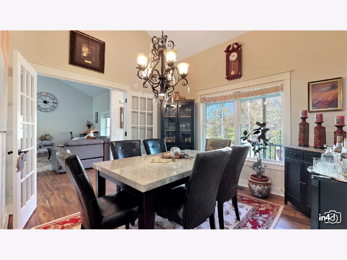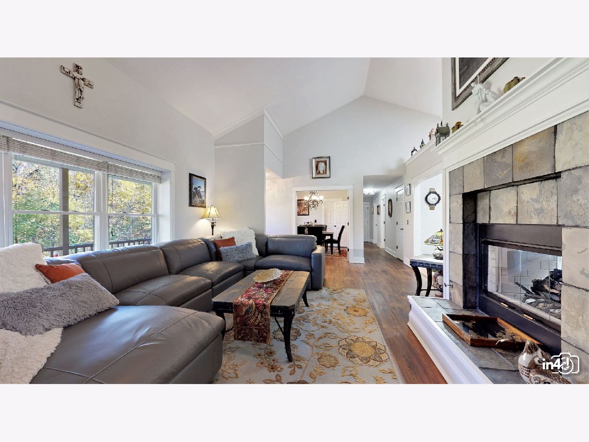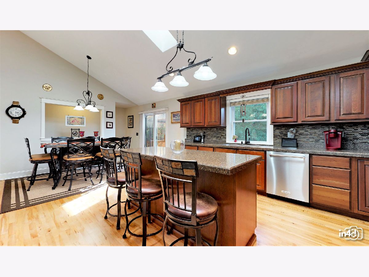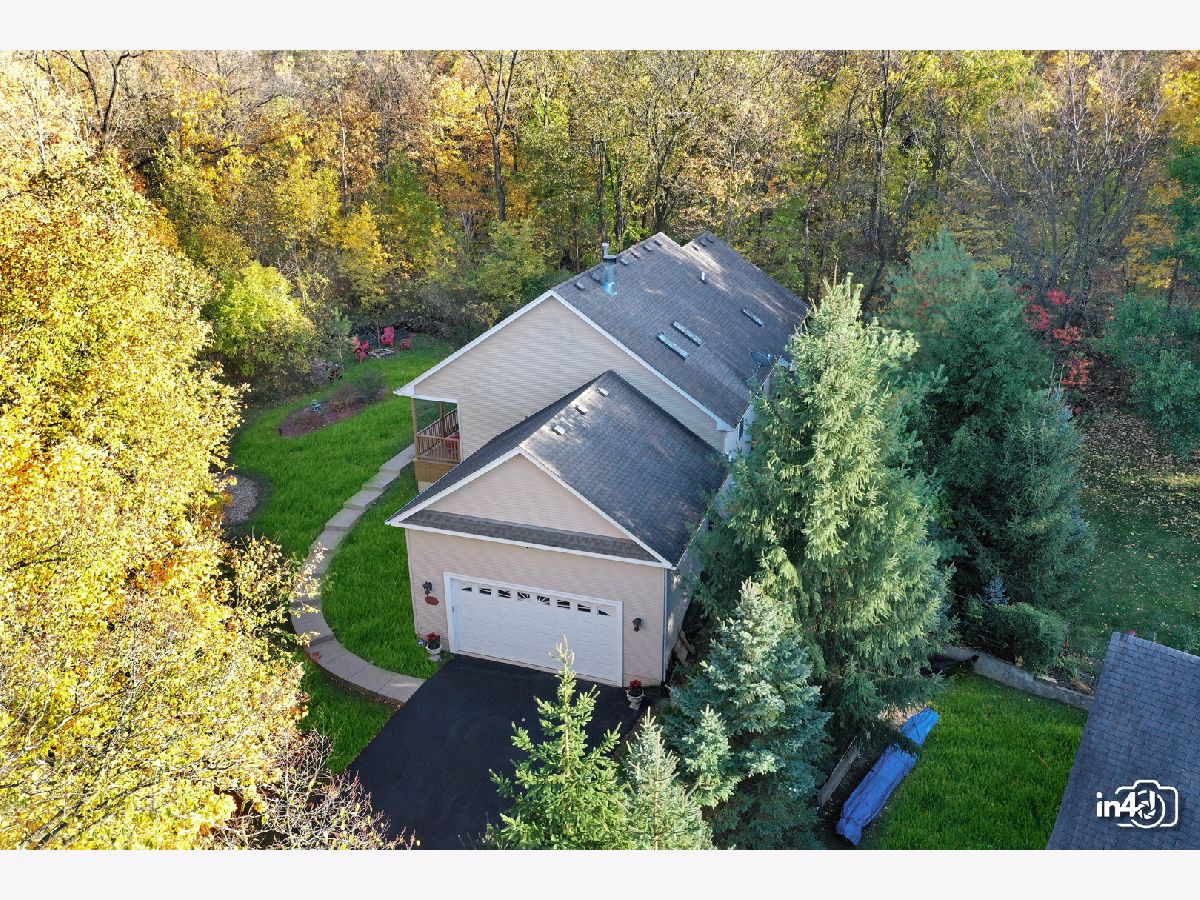 Overlooking the Fox River and nestled on the side of a beautifully wooded lot is this well maintained exclusive 4 bedroom home. Main floor offers an open floorplan featuring custom European wide oak hardwood floors, vaulted ceilings, skylights, floor to ceiling stone dual sided fireplace joining the family room and kitchen. Oversized kitchen with table space, custom cabinets, no scratch crushed granite counter tops, newer high end stainless steel appliances and patio door leading to deck with views of wooded yard. Separate dining room with French doors for the upcoming holidays or use as your private office or study room. Master bedroom suite with double closets, luxury bath, separate shower, double sinks, soaker tub. 2nd bedroom on main floor with walk-in closet. Finished walk-out lower level with huge family room, 2 bedrooms, full bathroom, laundry room and storage. Cozy in-law arrangement possible. Attached 2 car garage. 2019 well pump, A/C and Furnace. 2020 Water heater. Private wooded lot with shed and fire pit. Access to miles and miles of great nature biking and hiking trails. One block to Fox River where you can launch your kayaks or go fishing. Walk to forest preserve. 4 lots totaling 0.5 acre with space for detached garage or small guest house. This is a unique property that will impress you and your guests! Welcome Home!