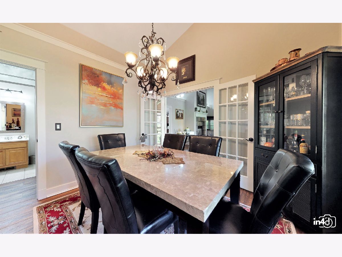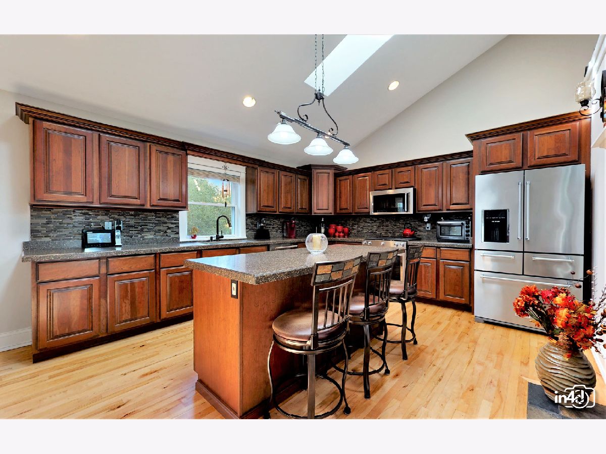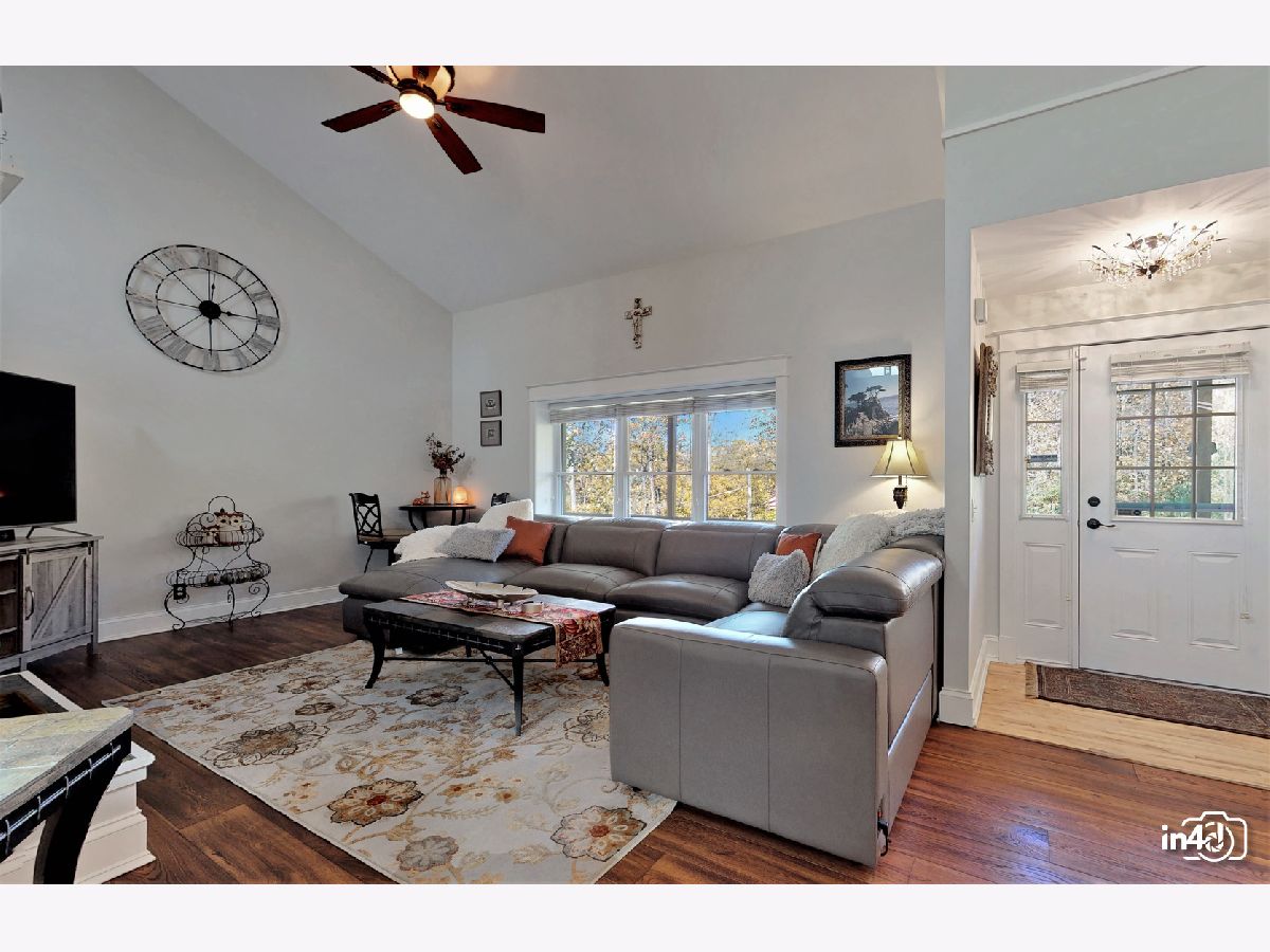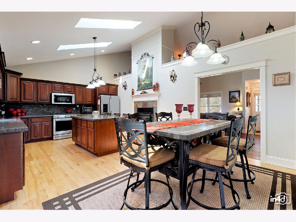 Overlooking the Fox River and nestled on the side of a beautifully wooded lot is this well maintained exclusive 4 bedroom home. Main floor offers an open floorplan featuring custom European wide oak hardwood floors, vaulted ceilings, skylights, floor to ceiling stone dual sided fireplace joining the family room and kitchen. Oversized kitchen with table space, custom cabinets, no scratch crushed granite counter tops, newer high end stainless steel appliances and patio door leading to deck with views of wooded yard. Separate dining room with French doors for the upcoming holidays or use as your private office or study room. Master bedroom suite with double closets, luxury bath, separate shower, double sinks, soaker tub. 2nd bedroom on main floor with walk-in closet. Finished walk-out lower level with huge family room, 2 bedrooms, full bathroom, laundry room and storage. Cozy in-law arrangement possible. Attached 2 car garage. 2019 well pump, A/C and Furnace. 2020 Water heater. Private wooded lot with shed and fire pit. Access to miles and miles of great nature biking and hiking trails. One block to Fox River where you can launch your kayaks or go fishing. Walk to forest preserve. 4 lots totaling 0.5 acre with space for detached garage or small guest house. This is a unique property that will impress you and your guests! Welcome Home!