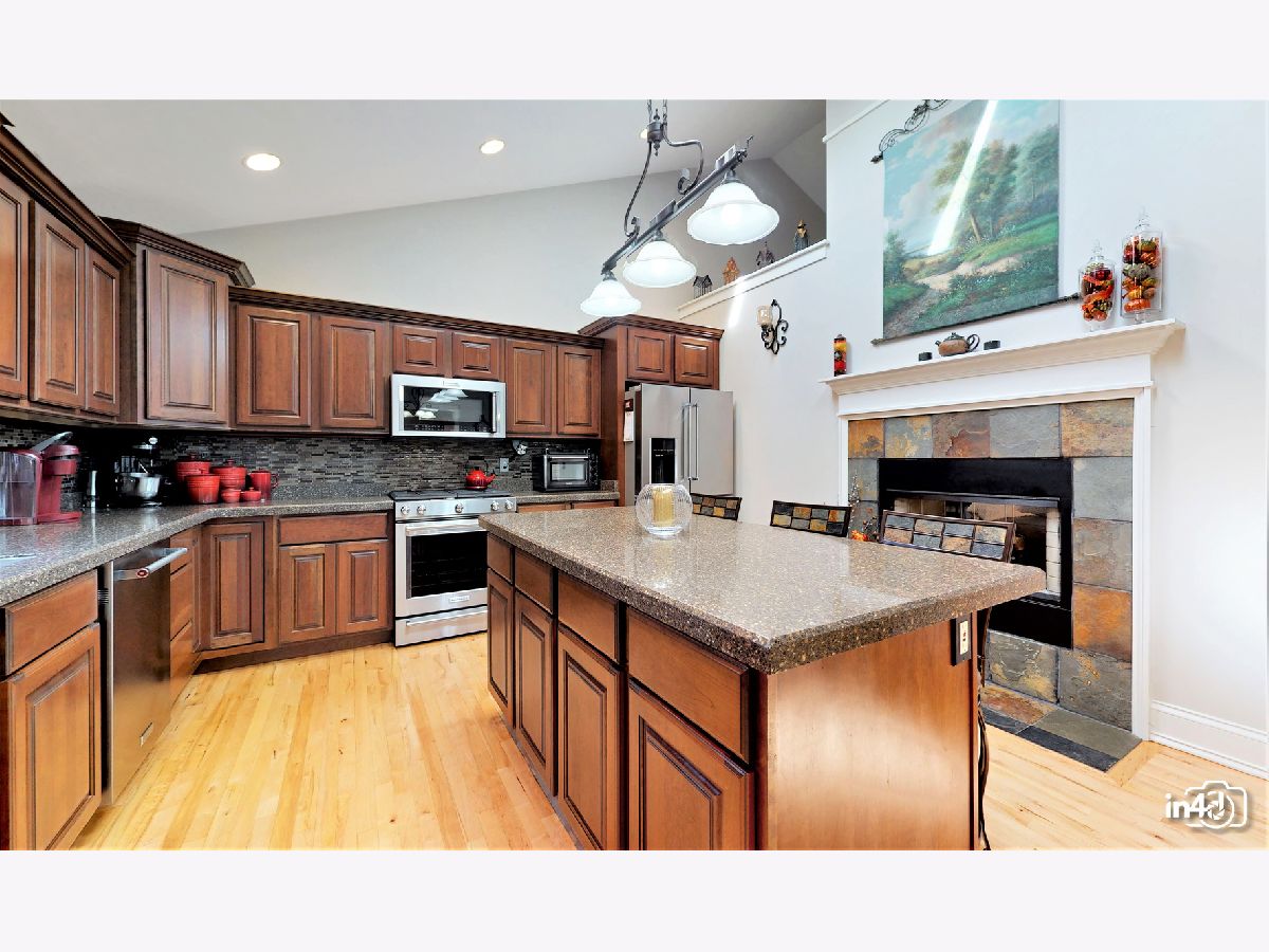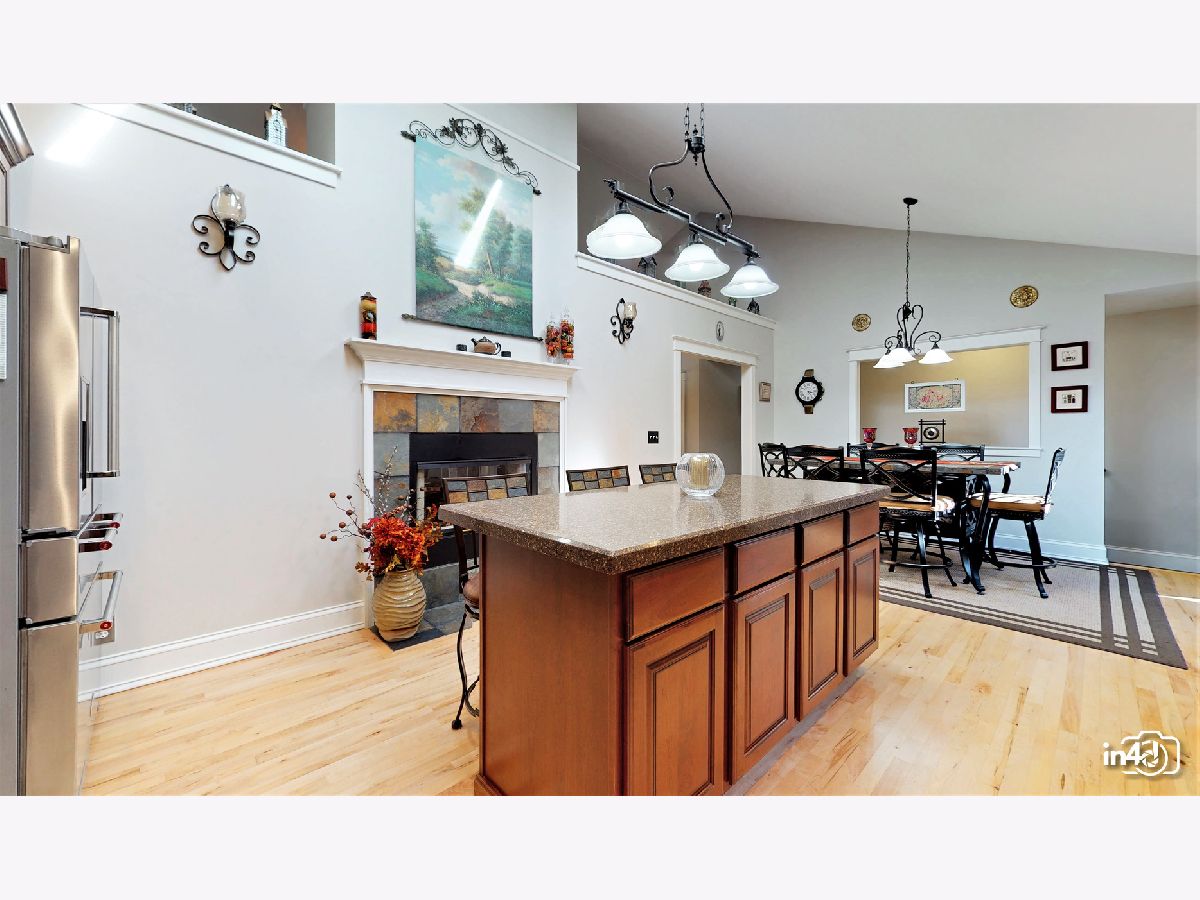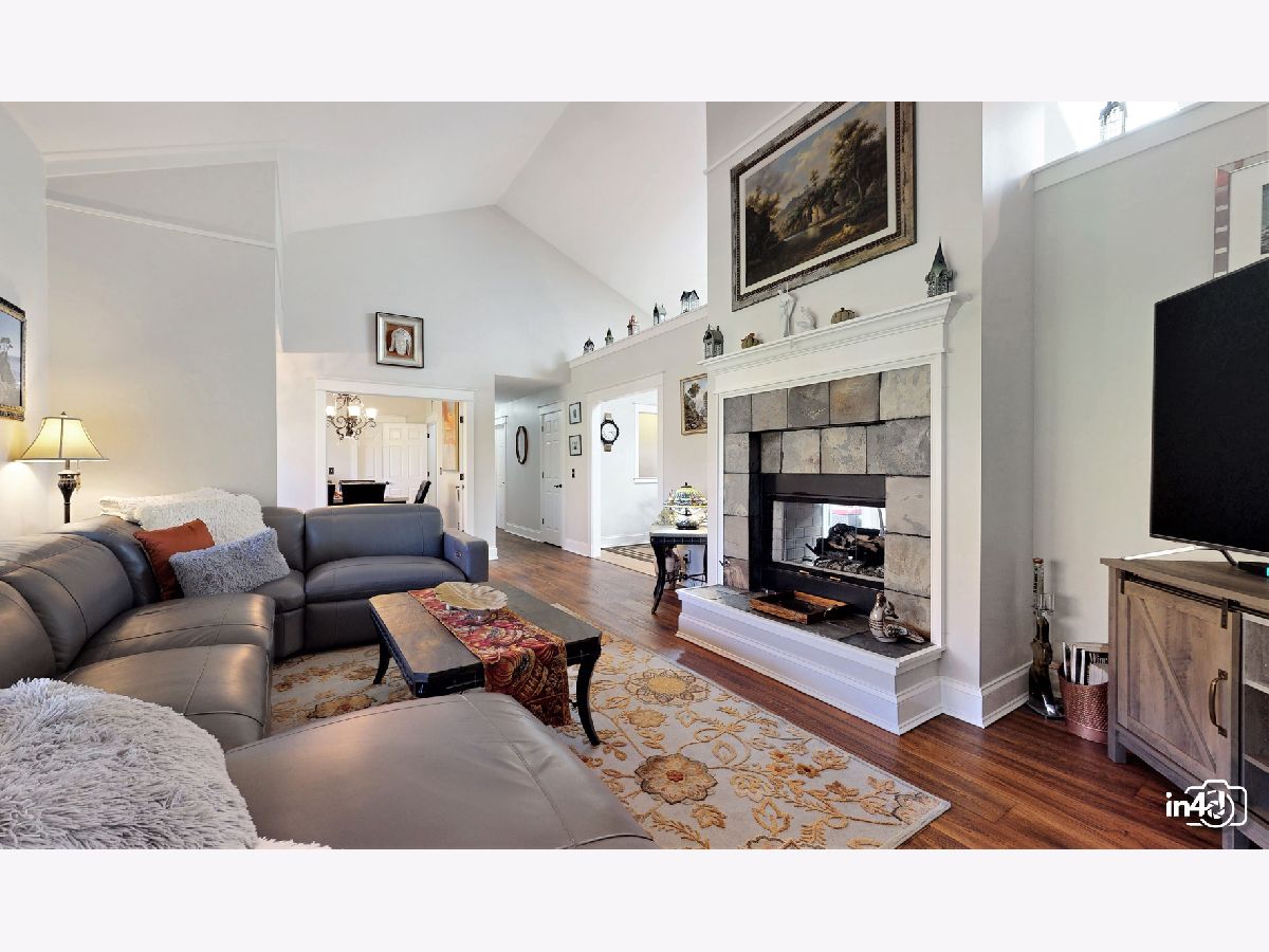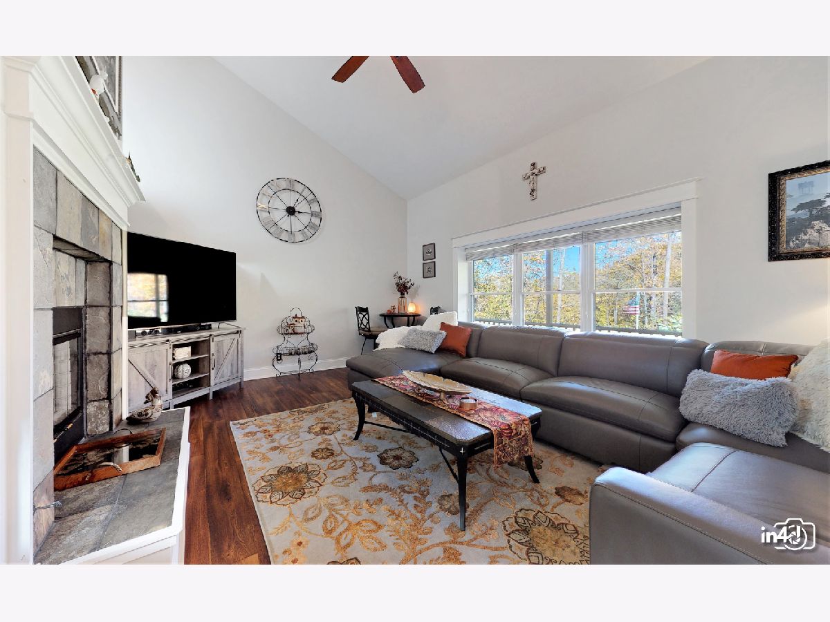 Overlooking the Fox River and nestled on the side of a beautifully wooded lot is this well maintained exclusive 4 bedroom home. Main floor offers an open floorplan featuring custom European wide oak hardwood floors, vaulted ceilings, skylights, floor to ceiling stone dual sided fireplace joining the family room and kitchen. Oversized kitchen with table space, custom cabinets, no scratch crushed granite counter tops, newer high end stainless steel appliances and patio door leading to deck with views of wooded yard. Separate dining room with French doors for the upcoming holidays or use as your private office or study room. Master bedroom suite with double closets, luxury bath, separate shower, double sinks, soaker tub. 2nd bedroom on main floor with walk-in closet. Finished walk-out lower level with huge family room, 2 bedrooms, full bathroom, laundry room and storage. Cozy in-law arrangement possible. Attached 2 car garage. 2019 well pump, A/C and Furnace. 2020 Water heater. Private wooded lot with shed and fire pit. Access to miles and miles of great nature biking and hiking trails. One block to Fox River where you can launch your kayaks or go fishing. Walk to forest preserve. 4 lots totaling 0.5 acre with space for detached garage or small guest house. This is a unique property that will impress you and your guests! Welcome Home!