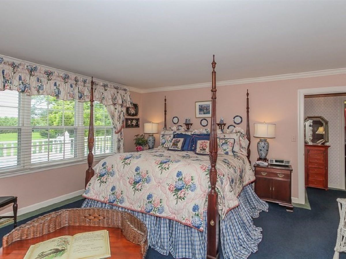 A TREASURE JUST WAITING FOR YOU!!!! FIVE ACRES OF ROLLING LAWNS, BEAUTIFUL TREES, THREE STALL BARN & A FIVE FOOT DEEP LAP POOL....WELCOME TO AN ABSOLUTELY CHARMING HOME....THE FOYER W/ ITS PEGGED OAK FLOORING & WIDE CROWN MOLDINGS LEADS TO A GRACIOUS LIVING ROOM W/ WOOD BURNING FIREPLACE FRAMED BY BOOKSHELVES .... DOUBLE DOORS OPEN TO A CHERRY PANELED LIBRARY W/ THREE WALLS OF NEWER PELLA WINDOWS AND STUNNING SUNSETS WITH ORIGINAL CEILING & BLACK MARBLE TOP BAR & WINE COOLER....INVITING DINING ROOM W/ FOUR CORNER CABINETS OVERLOOKS THE DECK....WELL PLANNED KITCHEN COMPLETE W/TWO STOOL BREAKFAST BAR, NEW DISHWASHER, DBL OVENS & DUMB WAITER....SUNNY BREAKFAST ROOM W/WOOD BURNING FIREPLACE SURROUNDED BY DELFT TILE & DOOR TO TREK DECK OVERLOOKING POOL & AGAIN THOSE SUNSETS IN THE WEST....THE SPACIOUS STUDY W/ FULL WALL OF BOOKSHELVES OPENS TO THE FAMILY ROOM COMPLETE W/ FULL BATH & LOFT BEDROOM (4th)...BEDROOM WING : MASTER BEDROOM IS LOCATED AT END OF THE BEDROOM WING WITH A WALK-IN CLOSET PLUS A HALL CLOSET & FULL BATH AND AN ADJACENT SMALL BEDROOM THAT COULD BE A SITTING ROOM OR A NURSERY....THERE ARE TWO MORE HALL BEDR00MS & A FULL HALL BATH.... AN OFFICE W/ BUILT-IN BOOKSHELVES & FIRST FLOOR LAUNDRY COMPLETE THE MAIN FLOOR....REC ROOM, POOL CHANGING ROOM, BATH IN LOWER LEVEL W/ ACCESS TO POOL....A $10,000 DECORATING ALLOWANCE WILL BE AVAILABLE AS PART OF THE CLOSING....A MUST SEE FOR YOU & YOURS !!!!