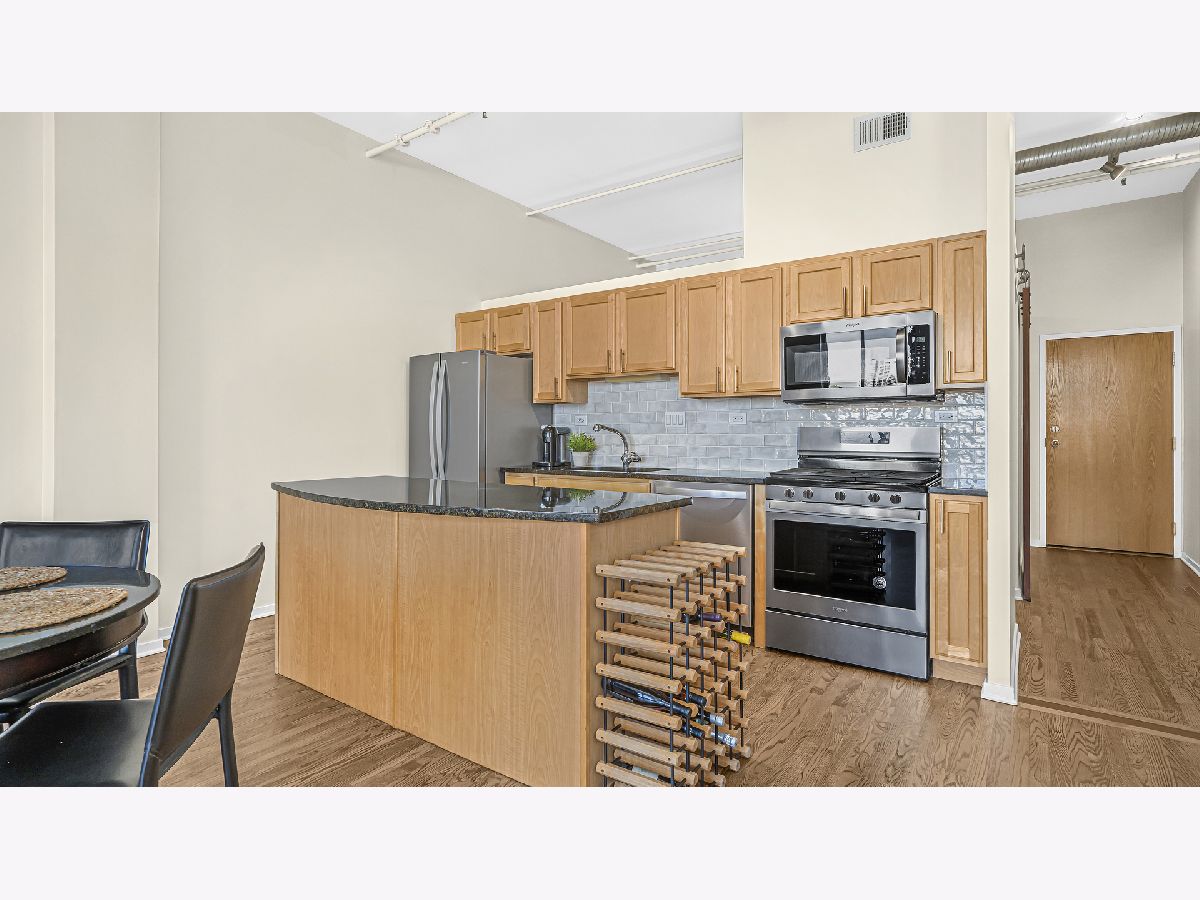 *Sunday 1/9 OH Rescheduled due to icy conditions* Flooded with natural light, this airy 2 bedroom, 1 bath condo, is on the 7th floor of the sought-after Sexton Lofts building. Recent upgrades include a brand new furnace, gorgeous refinished floors and fresh new paint throughout. Granite countertops, new kitchen appliances and a full island (with storage and power) create the ideal chef's kitchen. Perfect for entertaining, the kitchen flows into an open floorplan living space complete with gas fireplace and newly tiled surround. This concrete loft has 11-foot ceilings plus a completely unobstructed balcony with incredible city views. Both bedrooms have doors. The second bedroom has a new sliding barn door and dual closets with new doors. The primary bedroom has a walk-in closet. Dual vanity, built-in storage and a deep soaking tub complete the spacious bath. You'll find additional storage with the in-unit laundry area and a separate coat closet. Pet friendly building, close to everything River North has to offer, from coffee shops and retail to a local hardware store. Enjoy nightlife, the Riverwalk, amazing restaurants and easy access to public transit as well as the highway. Building amenities include a 24-hour door staff, onsite management, fitness center, cleaners, storage, bike parking and more. Heated garage space available for additional 35k. Be sure to review the list of upgrades and improvements. Welcome home!