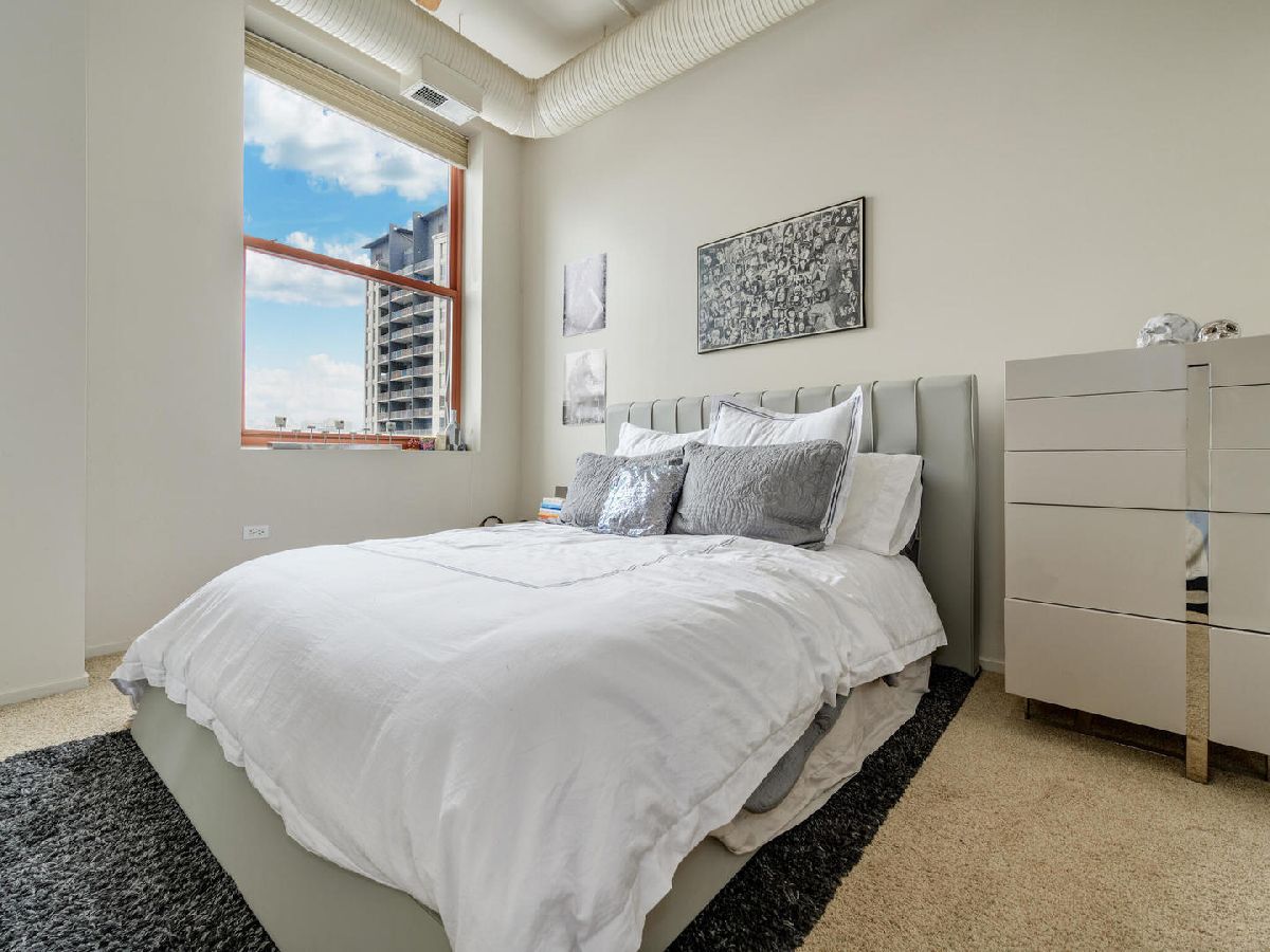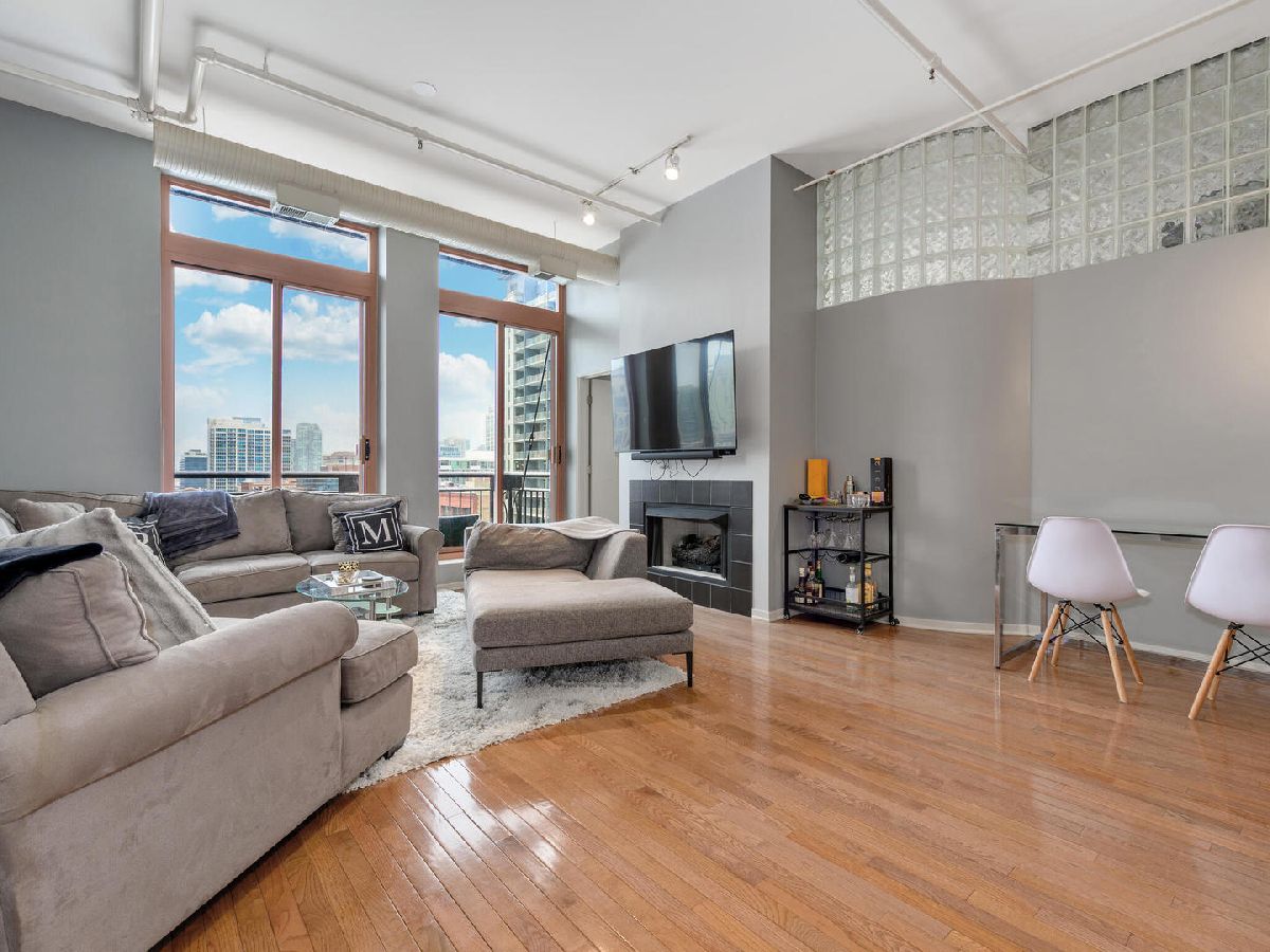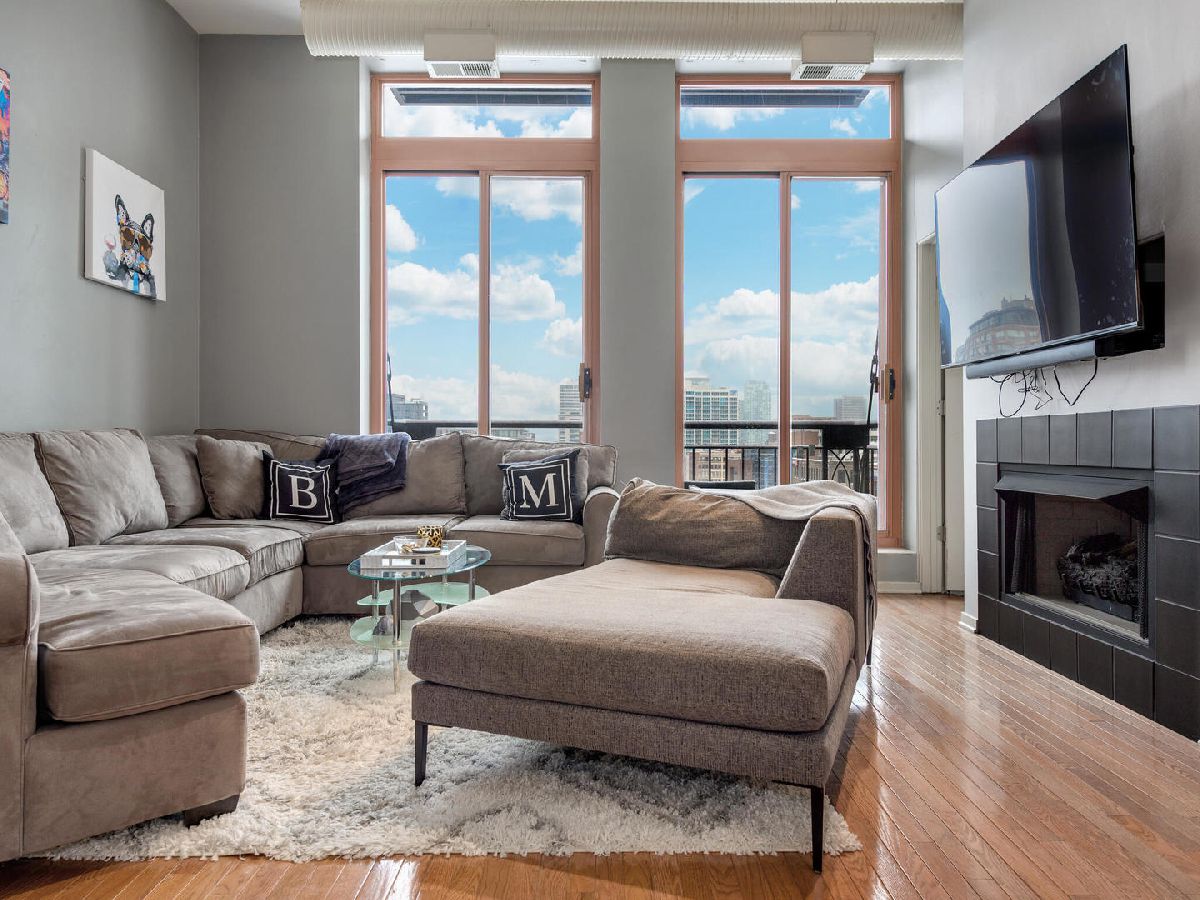 Awesome 2 bedroom/1 bath River North Loft in sought after Sexton Lofts. This concrete loft has unobstructed north facing city exposure with soaring ceilings, exposed brick, oversized windows, that leads to a large balcony great for entertainment. The unit features an open layout with an open kitchen with an eat-in island, room for dining table, expansive living room with gas Fireplace. Kitchen has granite countertops with all Stainless appliances, newer Fridge, great open space with plenty of counter space and flow into the living room. Both bedrooms are good size, with great closet space. Bathroom featuring double vanity and linen closet, is shared but attached to the primary bedroom through the large primary walk-thru closet. Newer W/D in unit. Additional Storage for the unit is on the first floor. The Sexton is located in West River North, a short distance to everything. East Bank Club is 1.5 blocks away, easy access to Xpressway, EL, tons of bars and restaurants, but in a quieter West River North location. Building features 24 hour door staff, fitness center, on-site manager, dry cleaner and package service, storage and bike areas. Garage indoor heated, parking space offered for $35,000.