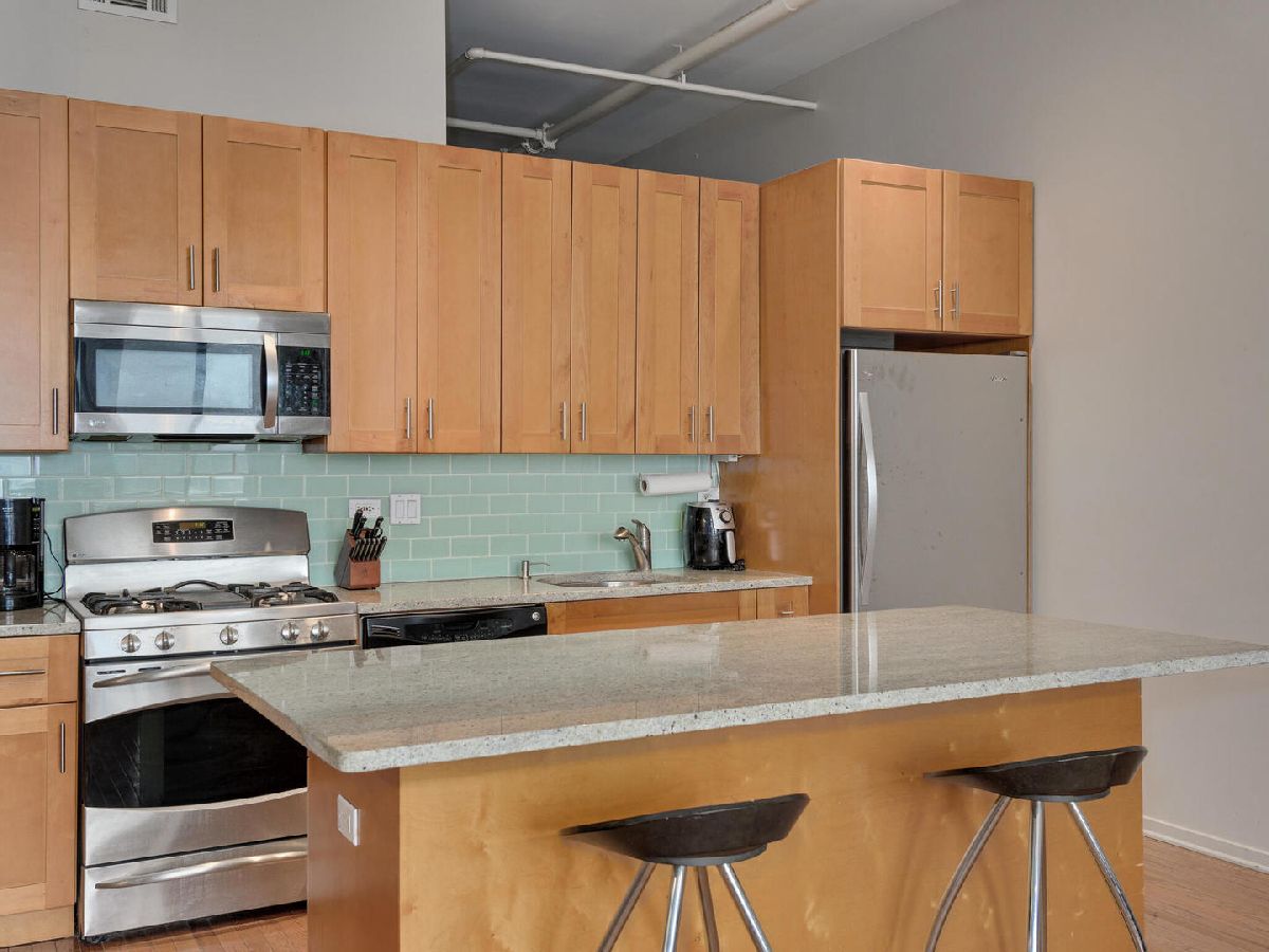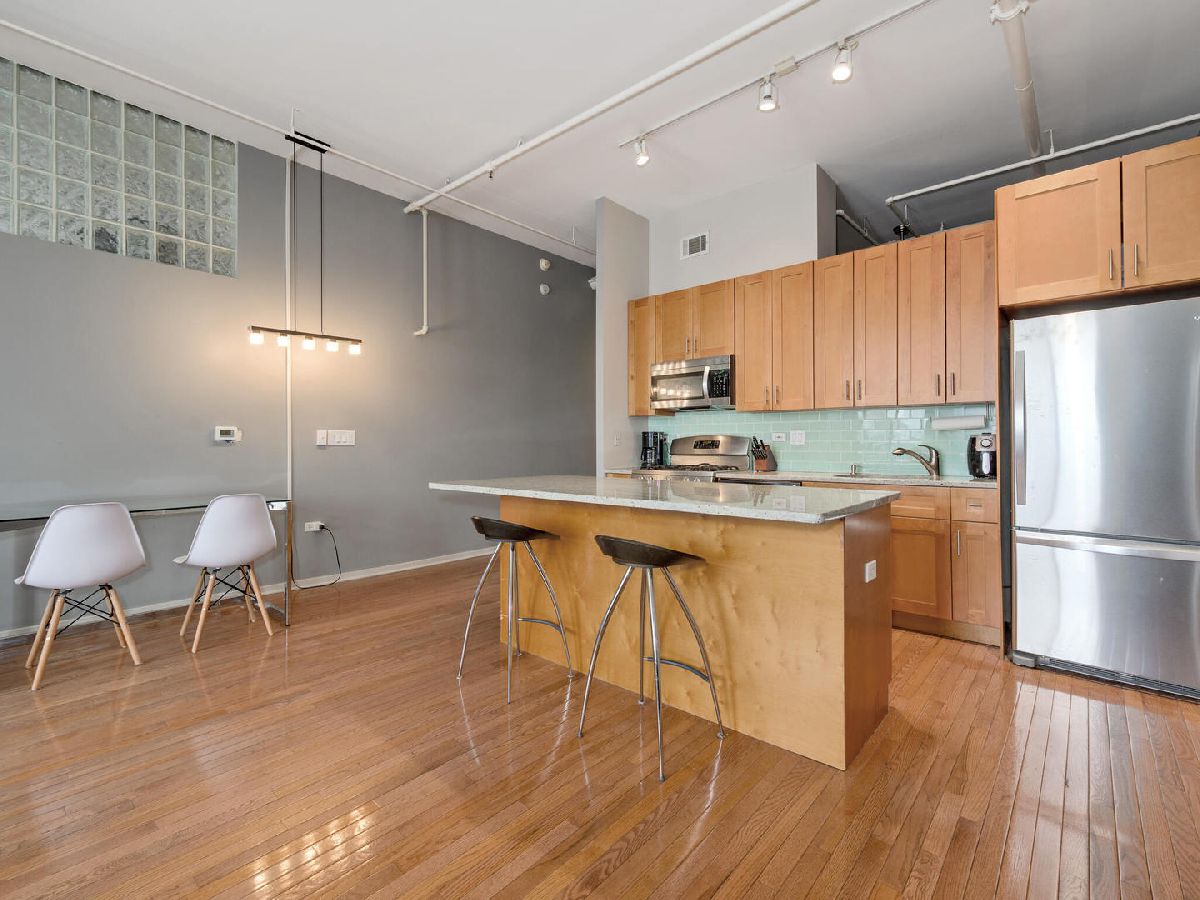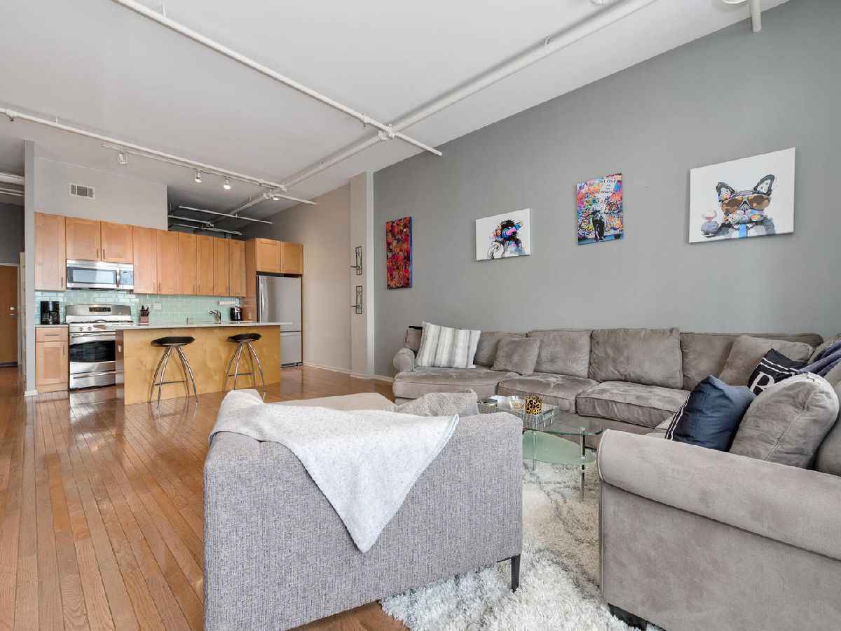 Awesome 2 bedroom/1 bath River North Loft in sought after Sexton Lofts. This concrete loft has unobstructed north facing city exposure with soaring ceilings, exposed brick, oversized windows, that leads to a large balcony great for entertainment. The unit features an open layout with an open kitchen with an eat-in island, room for dining table, expansive living room with gas Fireplace. Kitchen has granite countertops with all Stainless appliances, newer Fridge, great open space with plenty of counter space and flow into the living room. Both bedrooms are good size, with great closet space. Bathroom featuring double vanity and linen closet, is shared but attached to the primary bedroom through the large primary walk-thru closet. Newer W/D in unit. Additional Storage for the unit is on the first floor. The Sexton is located in West River North, a short distance to everything. East Bank Club is 1.5 blocks away, easy access to Xpressway, EL, tons of bars and restaurants, but in a quieter West River North location. Building features 24 hour door staff, fitness center, on-site manager, dry cleaner and package service, storage and bike areas. Garage indoor heated, parking space offered for $35,000.