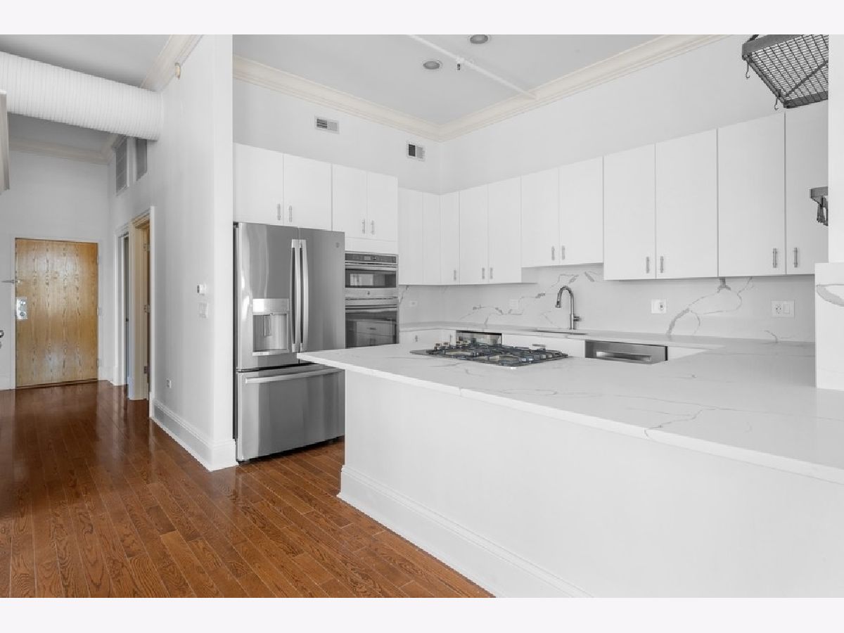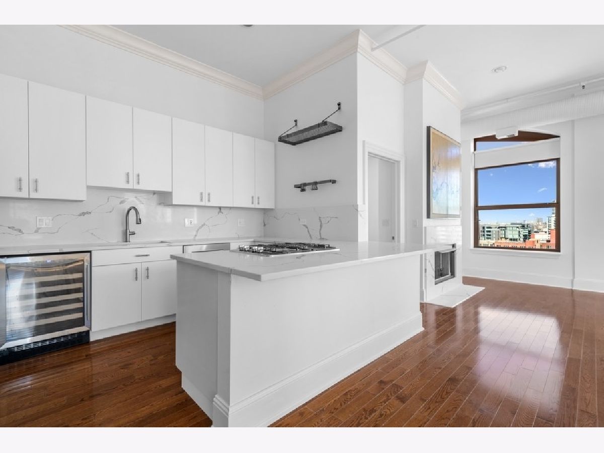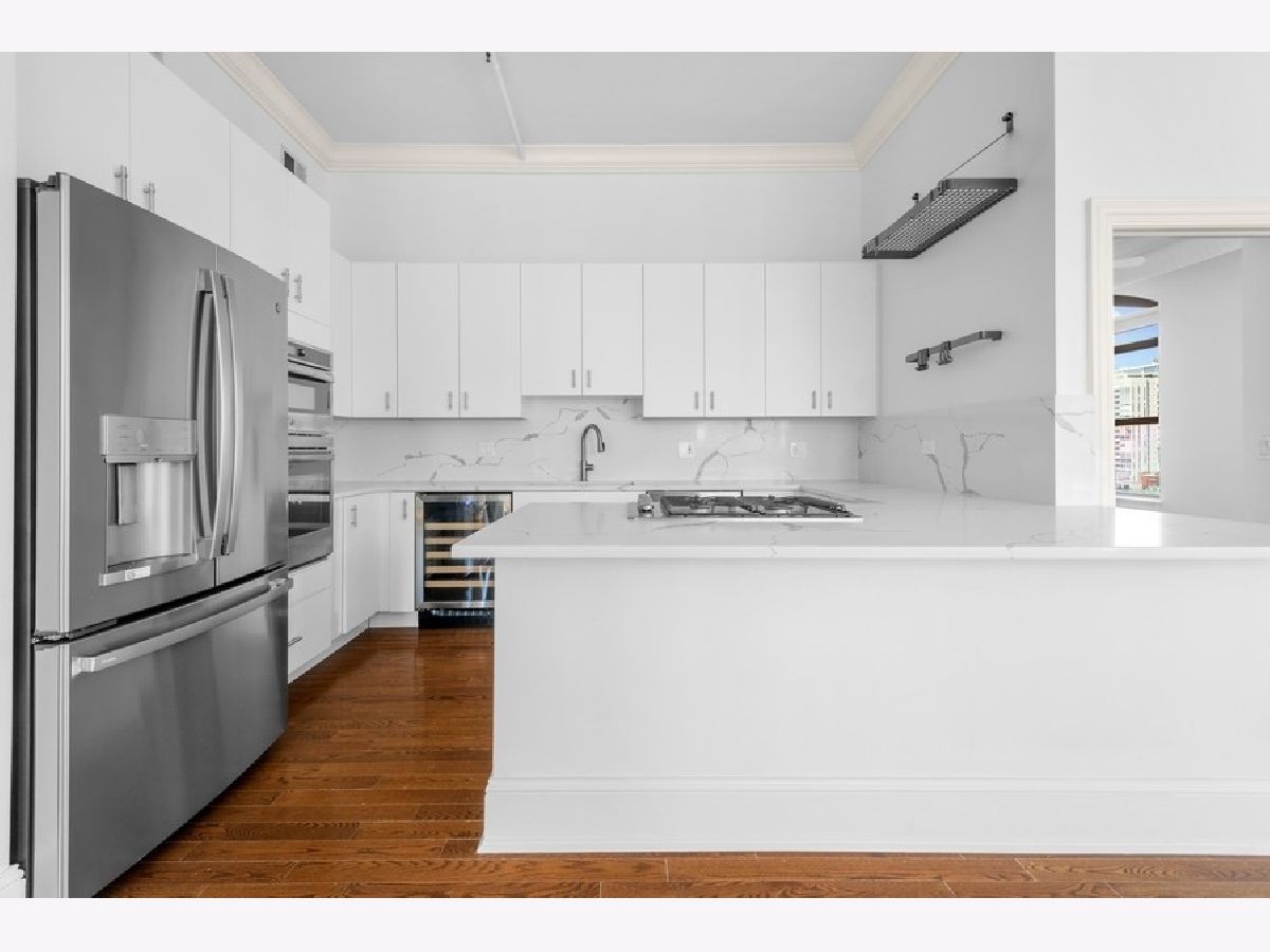 Penthouse Level - first time on market - renovated - rarely available A tier, framing unobstructed city views in the NORTH EAST corner of River North's popular building known as The Sexton. This 1754 square foot split 2-bedroom, both with windows, features an open floor plan with 12-foot ceilings and 6-foot windows that flood the living area with natural light and gorgeous "postcard" day and night-time views from every room. Brand new kitchen featuring white euro panel, lacquer cabinets, Borghini quartz countertops/backsplash, stainless steel appliances, wine fridge, hardwood floors throughout, 9 X 6 laundry room with slop sink, shelving/storage, large private balcony with city views off great room and perfect for grilling and entertaining. Custom millwork, doors, window-sills, window treatments and lighting throughout the home. Gracious primary suite with custom, 9X9 organized walk-through closet leading to the white Carrera marble spa bath with all the bells and whistles, plus linen closet. Side by side - 2 car indoor heating garage parking spot #253 included, along with a private 7.5 X 7.5 built out storage room in building. Located in the heart of River North, The Sexton is a full amenity building with 24-hour staff, on site management, cleaners, remodeled gym, sundeck, bike room and is across the street from the East Bank Club, walking distance to endless shops, restaurants, galleries, nightclubs, the loop, Michigan Avenue, Ohio feeder ramp, L stops and so much more. This home receives awards! Come home today!