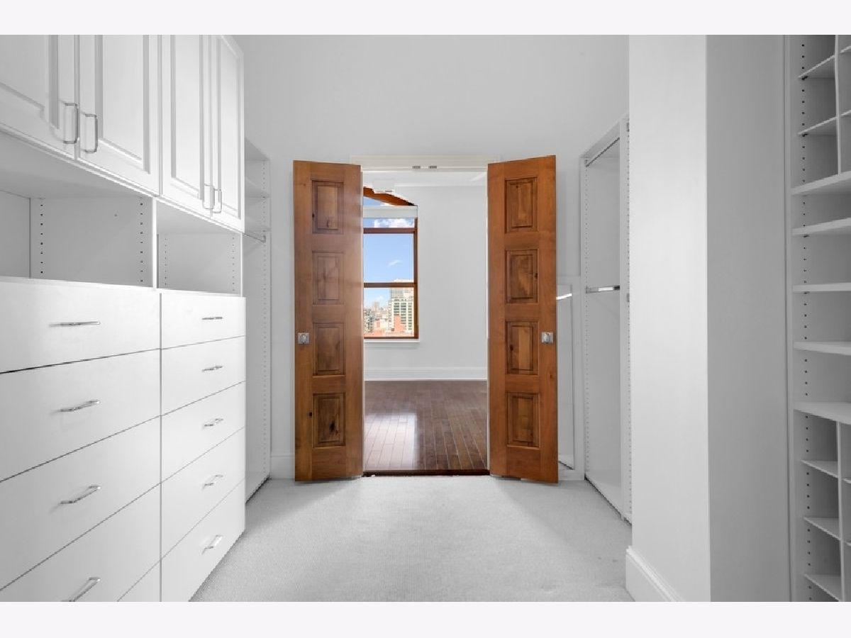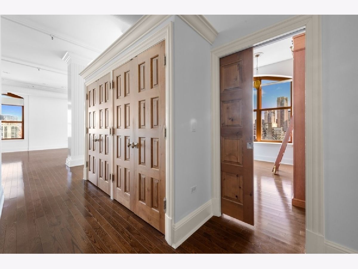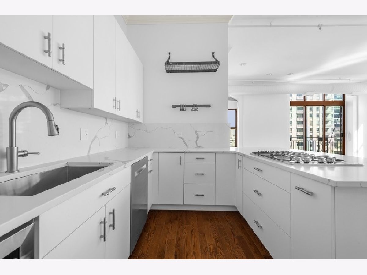 Penthouse Level - first time on market - renovated - rarely available A tier, framing unobstructed city views in the NORTH EAST corner of River North's popular building known as The Sexton. This 1754 square foot split 2-bedroom, both with windows, features an open floor plan with 12-foot ceilings and 6-foot windows that flood the living area with natural light and gorgeous "postcard" day and night-time views from every room. Brand new kitchen featuring white euro panel, lacquer cabinets, Borghini quartz countertops/backsplash, stainless steel appliances, wine fridge, hardwood floors throughout, 9 X 6 laundry room with slop sink, shelving/storage, large private balcony with city views off great room and perfect for grilling and entertaining. Custom millwork, doors, window-sills, window treatments and lighting throughout the home. Gracious primary suite with custom, 9X9 organized walk-through closet leading to the white Carrera marble spa bath with all the bells and whistles, plus linen closet. Side by side - 2 car indoor heating garage parking spot #253 included, along with a private 7.5 X 7.5 built out storage room in building. Located in the heart of River North, The Sexton is a full amenity building with 24-hour staff, on site management, cleaners, remodeled gym, sundeck, bike room and is across the street from the East Bank Club, walking distance to endless shops, restaurants, galleries, nightclubs, the loop, Michigan Avenue, Ohio feeder ramp, L stops and so much more. This home receives awards! Come home today!