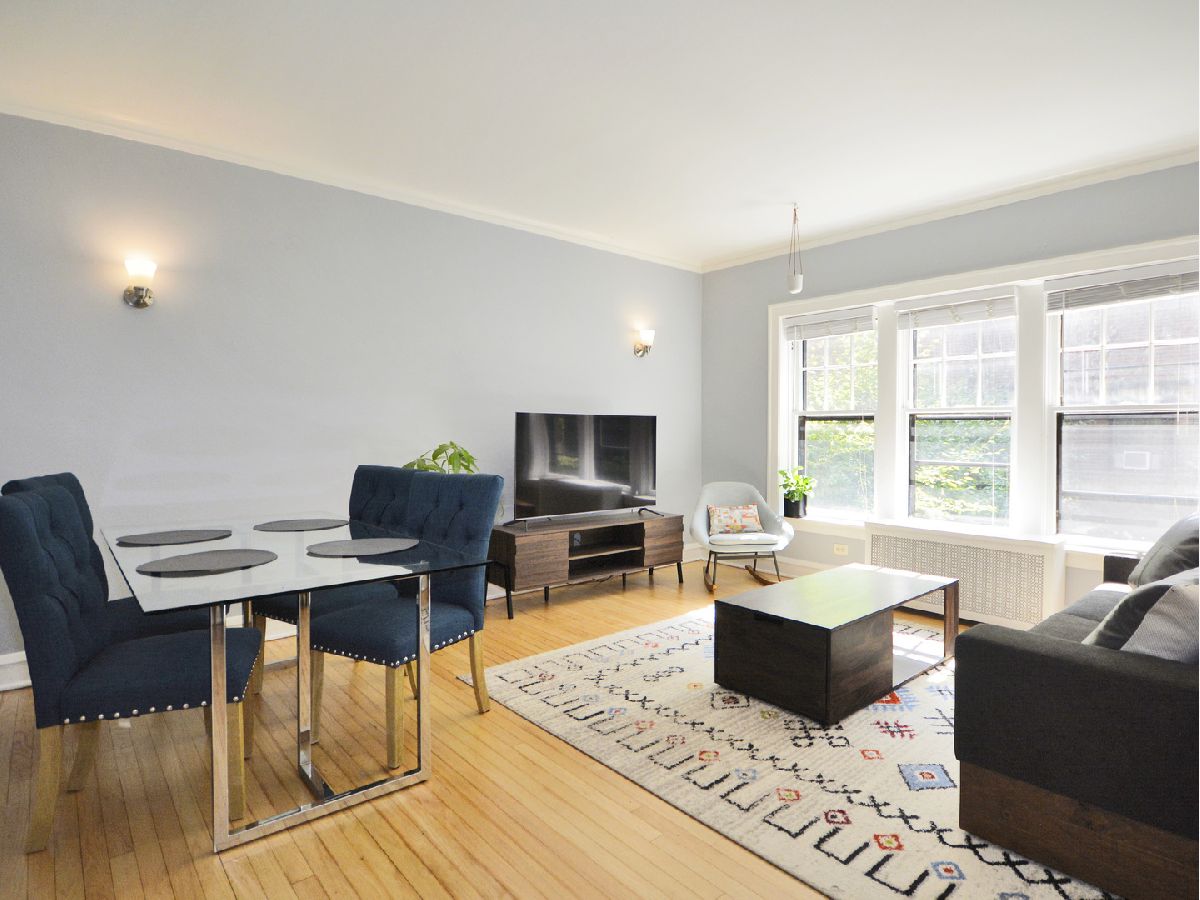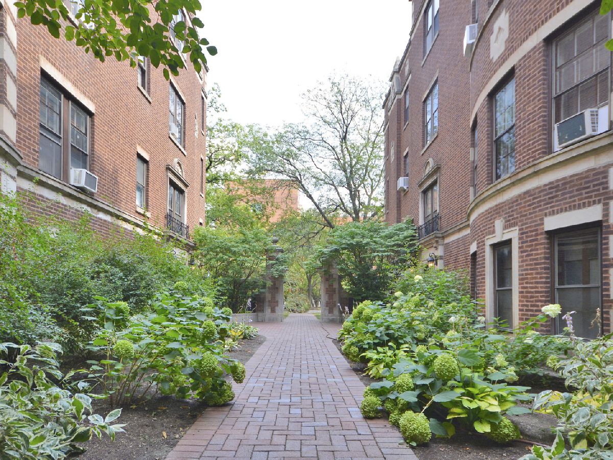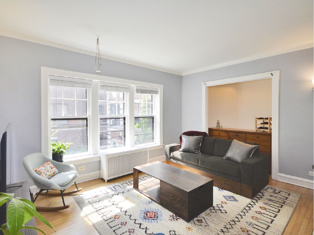 **NO RENTAL RESTRICTIONS** Charming, elevated first floor unit in St. Francis Courts. Timeless crown molding, ornate baseboards, and distinguished wood trim work. Bespoke, vintage lighting fixtures and classic wall sconces. Extra spacious kitchen features newer, warm gray wood floors and ample space for floating island or eat-in table. Upgraded, white quartz countertops with large, single basin under-mounted sink. Modern stainless steel appliances including french-door refrigerator, dishwasher, and gas-range stove. South-facing living room windows provide excellent sunlight and pleasing views of the professionally landscaped courtyard greenery. Generously sized bedroom easily accommodates a full suite of furniture and includes a triple-wide closet with overhead storage. Fantastic location surrounded by beautiful, tree-lined streets, convenient shopping, and exquisite dining experiences. Short walk to Lake Michigan and quick, easy commute to downtown Chicago. Plentiful permit parking available for residents.