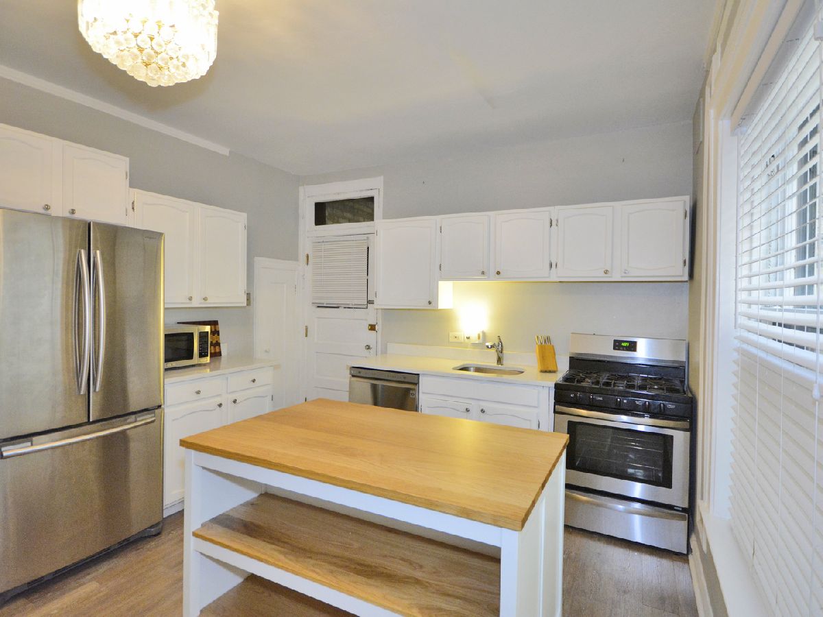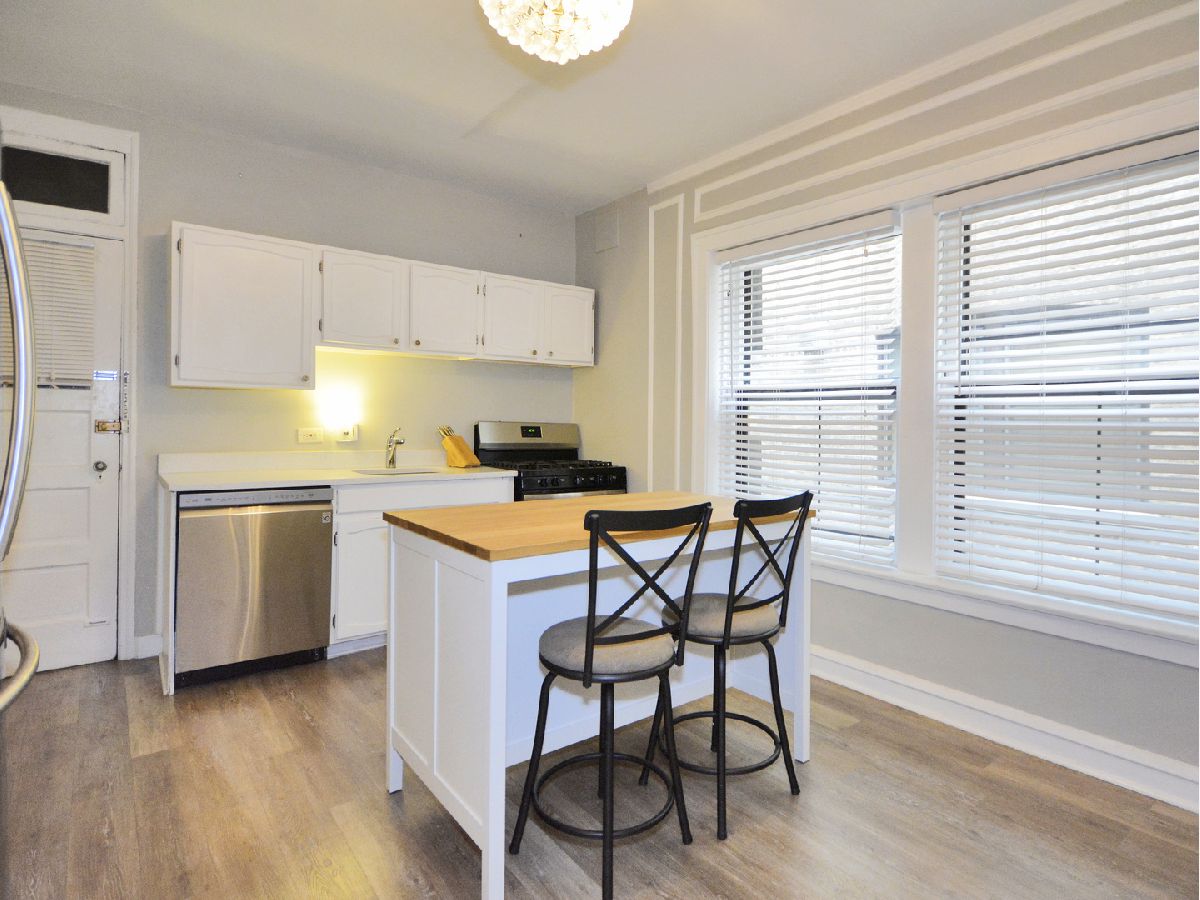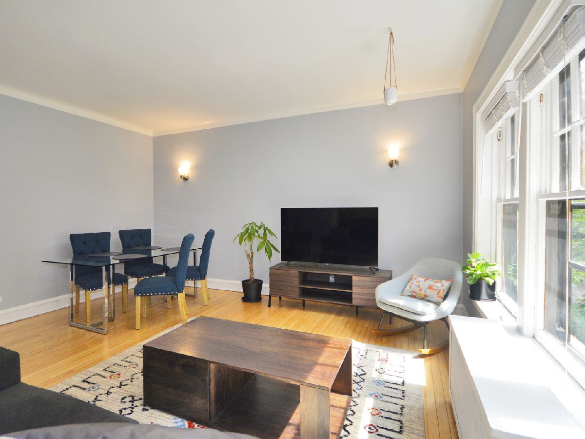**NO RENTAL RESTRICTIONS** Charming, elevated first floor unit in St. Francis Courts. Timeless crown molding, ornate baseboards, and distinguished wood trim work. Bespoke, vintage lighting fixtures and classic wall sconces. Extra spacious kitchen features newer, warm gray wood floors and ample space for floating island or eat-in table. Upgraded, white quartz countertops with large, single basin under-mounted sink. Modern stainless steel appliances including french-door refrigerator, dishwasher, and gas-range stove. South-facing living room windows provide excellent sunlight and pleasing views of the professionally landscaped courtyard greenery. Generously sized bedroom easily accommodates a full suite of furniture and includes a triple-wide closet with overhead storage. Fantastic location surrounded by beautiful, tree-lined streets, convenient shopping, and exquisite dining experiences. Short walk to Lake Michigan and quick, easy commute to downtown Chicago. Plentiful permit parking available for residents.
