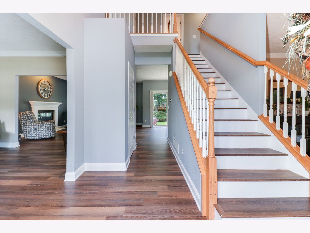 Step into this lovely home nestled in the sought-after Eagle Crest East community. Begin your journey through the covered front porch, setting the tone for the elegance that awaits within. Upon entry, be greeted by the two-story foyer, setting the stage for the exquisite features that lie ahead. The main level boasts 9-foot ceilings and luxurious LPV flooring that effortlessly extends throughout, creating a sense of seamless continuity. Entertain guests in style with a formal front room and a separate dining area, perfect for hosting memorable gatherings. The heart of the home unveils an open floor plan, seamlessly connecting the kitchen, dining space, and family room with a cozy fireplace. The kitchen offers ample cabinet space with quartz countertops and a pantry. Convenience meets functionality with a separate laundry room located just steps away from the entry of the 3-car garage, simplifying daily tasks. Ascend to the upper level to discover four spacious bedrooms, each offering a tranquil retreat for relaxation and rejuvenation. The primary suite indulges the senses with a lavish soaker tub, tiled shower, and an expansive walk-in closet, ensuring a haven of comfort and luxury. Descend to the finished basement, where productivity meets leisure. An office space provides the ideal environment for work or study, while a spacious living area, complete with a pool table (to remain), offers endless possibilities for entertainment. A half bath adds convenience, while ample storage space in the unfinished area caters to organizational needs. Step outside to the backyard, where outdoor living is embraced with a patio and irrigation system. Updates abound, including a 50-gallon water heater in 2023, an irrigation system in 2004, and LPV flooring in 2022. All appliances, including the washer and dryer, remain with the home for added convenience.