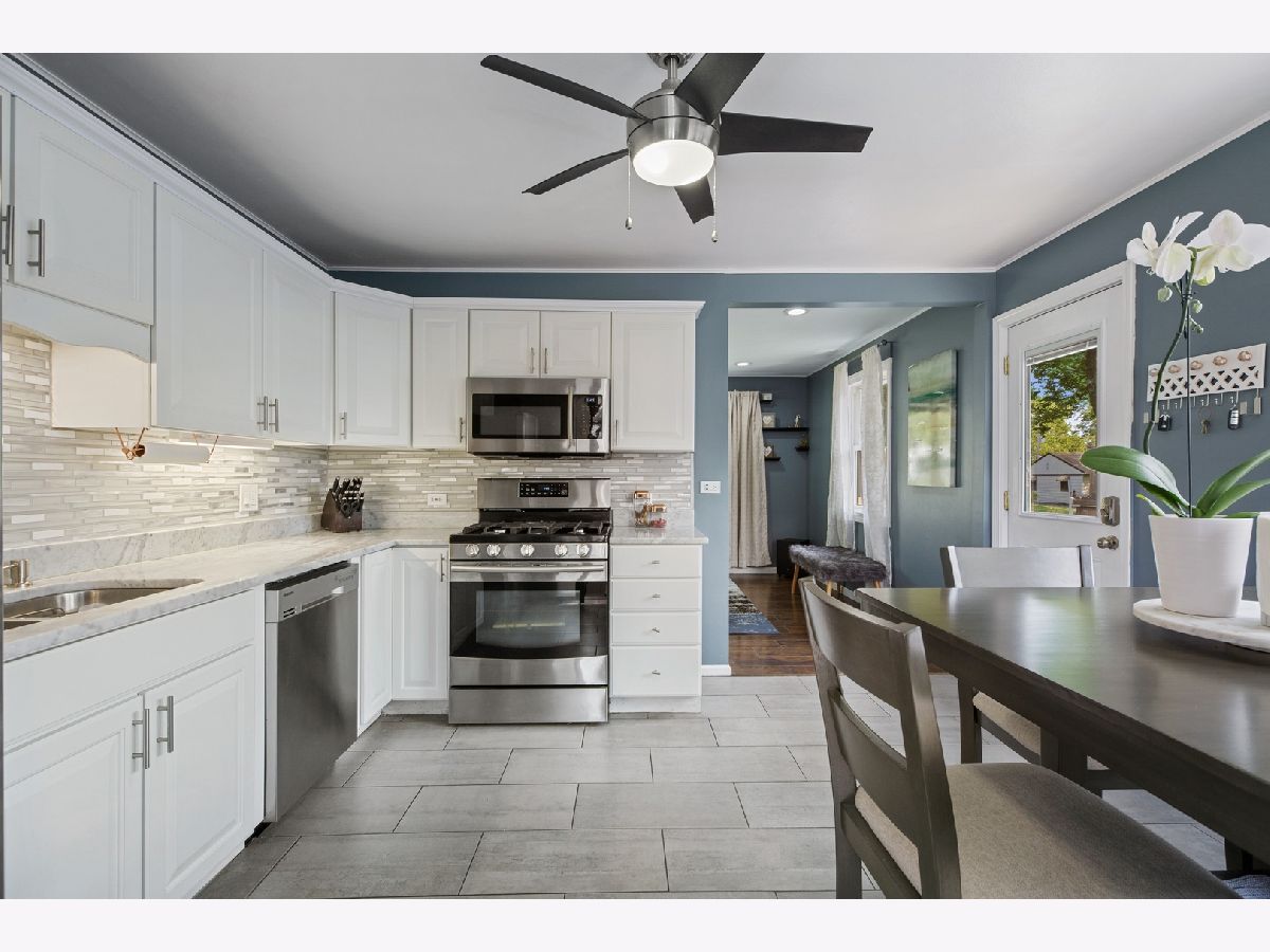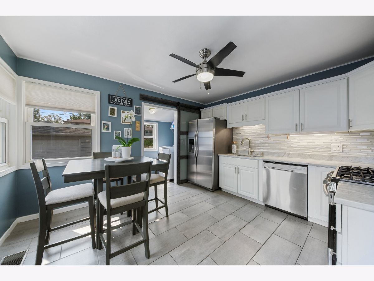 Cute and charming, this single family ranch has been updated throughout. Freshly painted in contemporary cool tones, this reconfigured two bedroom, two bathroom ranch features a great open concept floor plan with floating wood laminate floors, throughout. Walk through your front door into your family room flooded with light from a huge bayed window unique to this era home. A spacious eat in kitchen shows off timeless white cabinetry anchored by Carrera marble countertops you won't find in homes in this price range! Upgraded, newer stainless steel appliances make this an elegant, workable kitchen. Well-lit laundry room with a frosted glass, sliding door leads you to nearly new high end (and high efficiency!) washer and dryer and a view of your spacious backyard. Down the hall is a renovated guest bathroom featuring timeless finishes and a ton of natural light. Guest bedroom has plenty of storage and can easily accommodate a queen sized bed (or crib!). An oversized ensuite bedroom and bathroom offers an unbelievable amount of space, large walk-in shower, and double vanity with more marble and soft-close cabinetry. A two car detached garage and spacious fully fenced yard has lots of potential to be a great entertaining space! LED lighting and fans throughout and a new water heater and furnace in 2019 make this a perfect home for first time buyers and empty nesters alike.