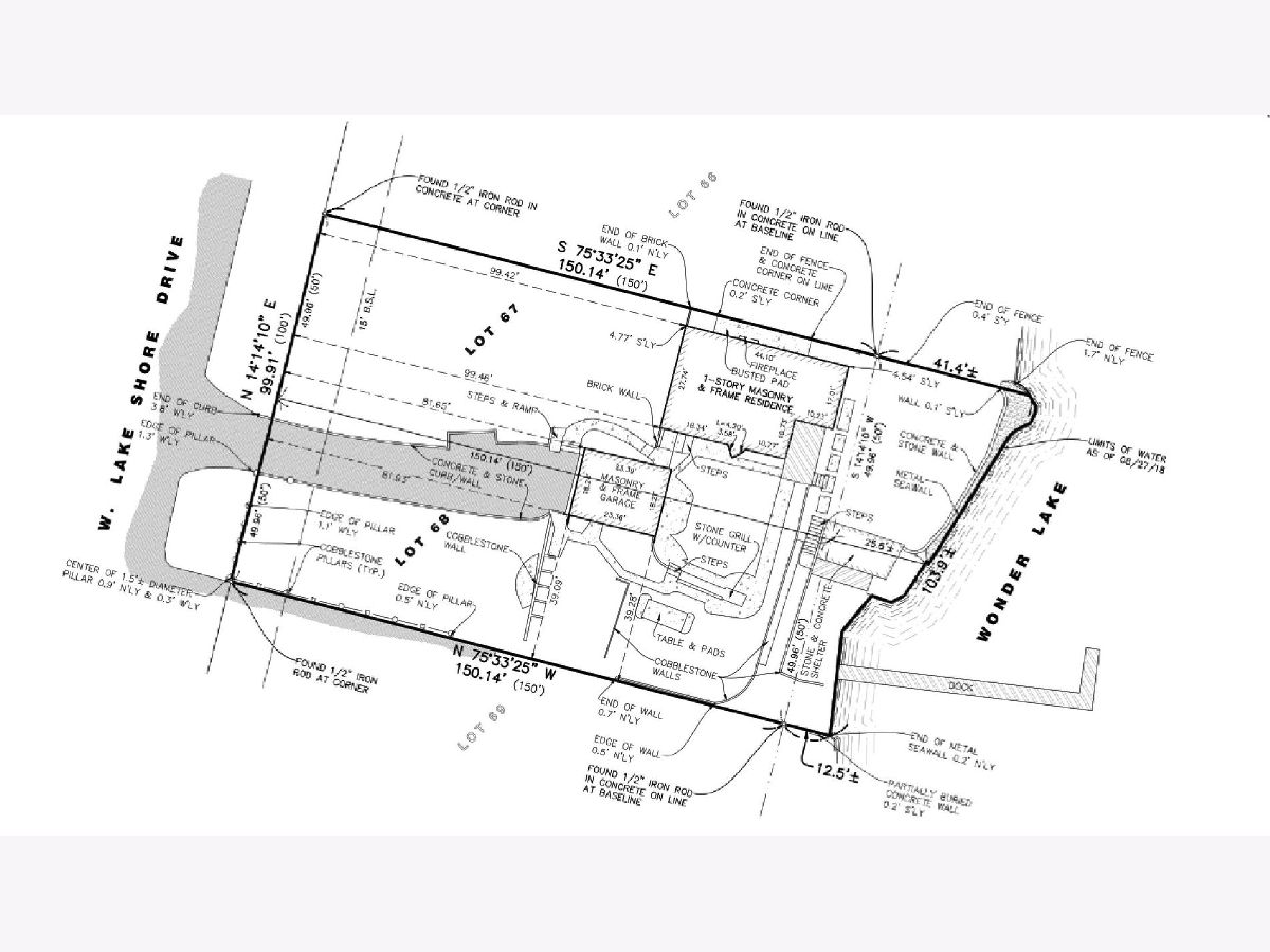 RARE FIND - 100 ft of lake front on level, double lot on beautiful Wonder Lake. Enjoy boating, skiing, sailing, fishing and swimming. In addition to the charming mid-century cottage, the property includes a boat house and 2 car garage for all your lake toys. The lot features mature landscaping, a garden area and beautiful stone walls and other stone features such as a fireplace, checker board table, ping pong table and horseshoe pit. Renovate the current home or build new - the lot is large enough to accommodate your vision. Pier included in the sale. Agent owned. Sold "as-is".