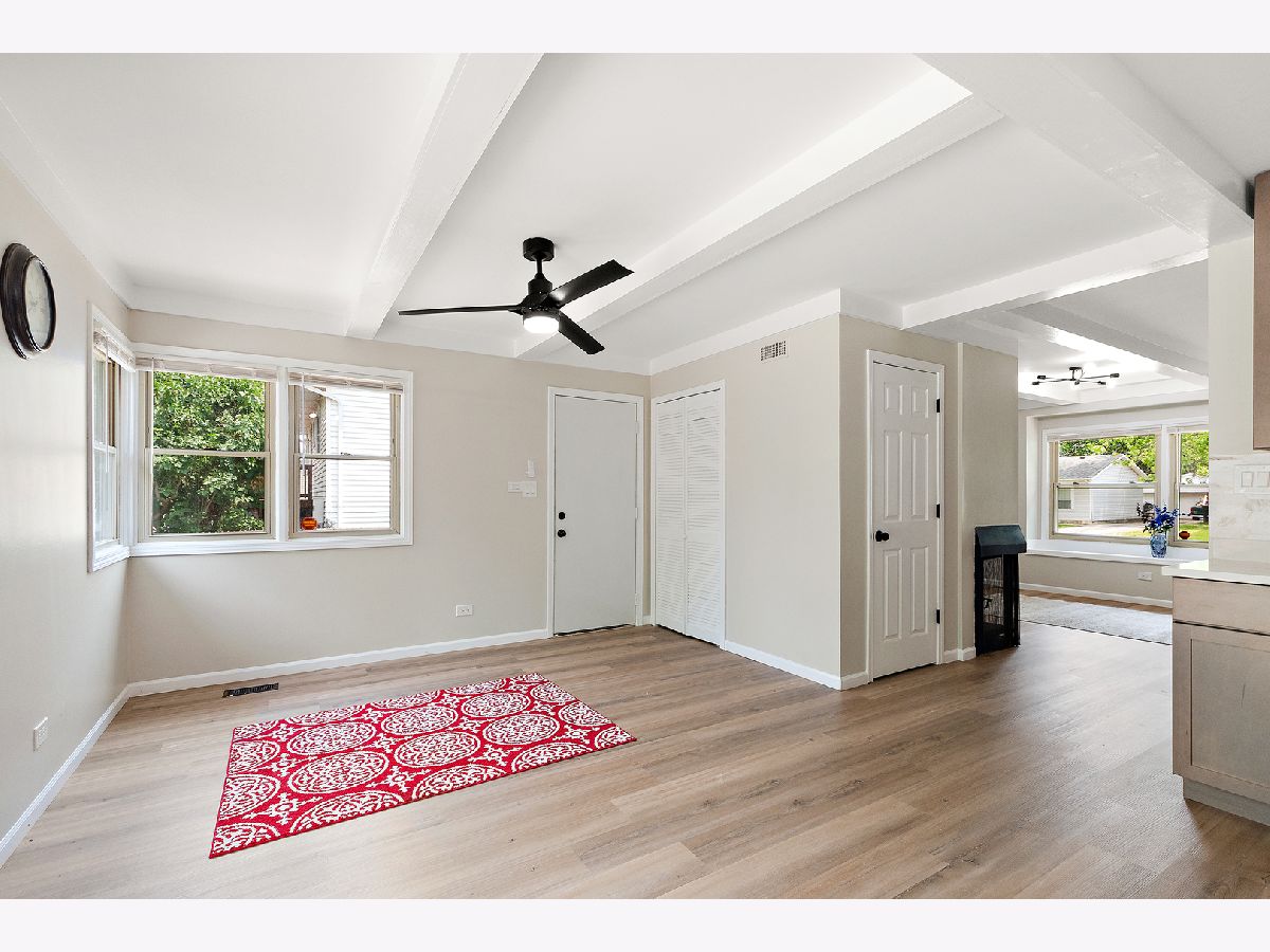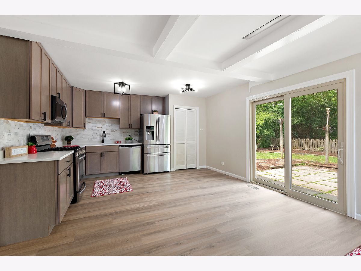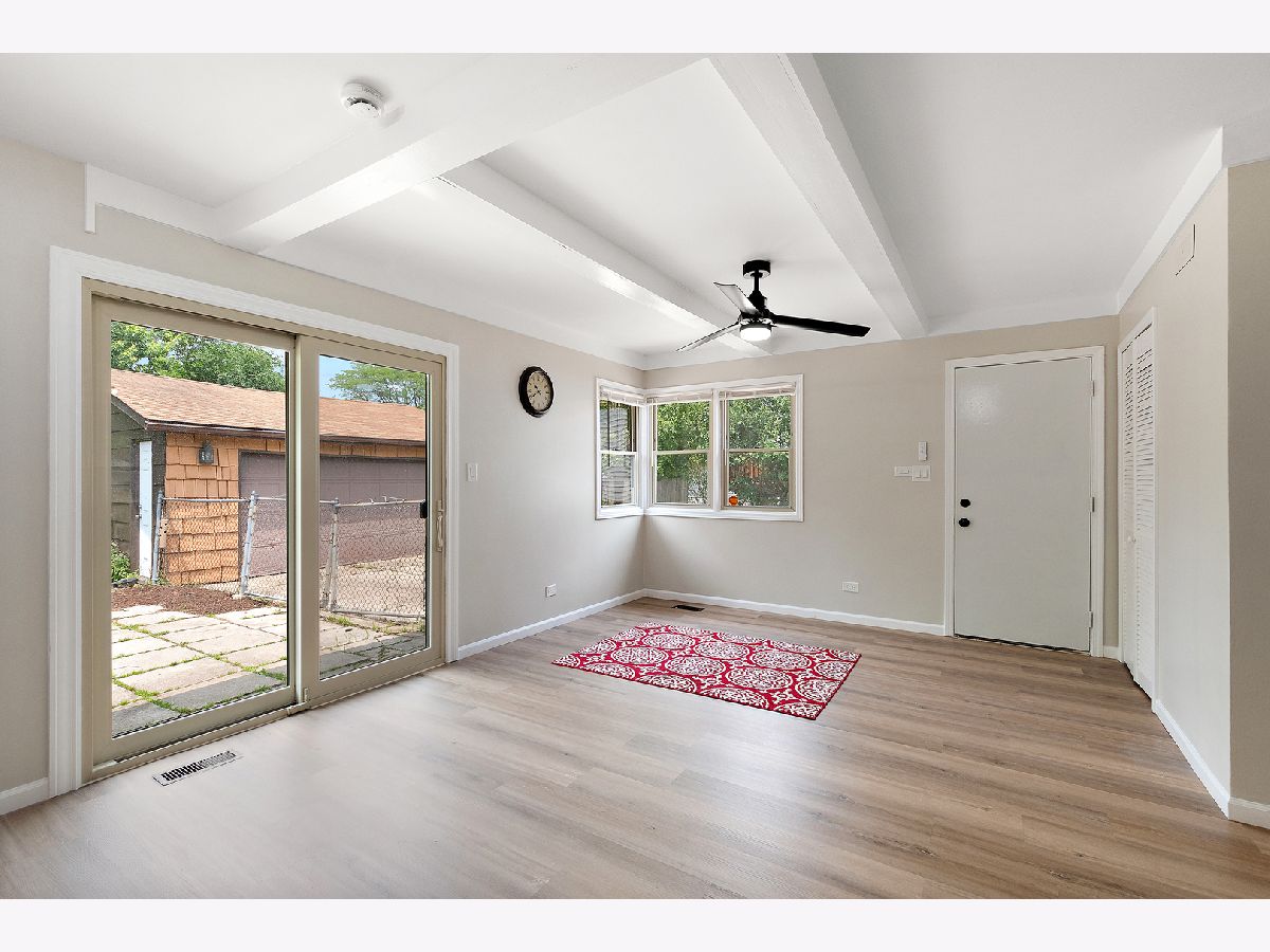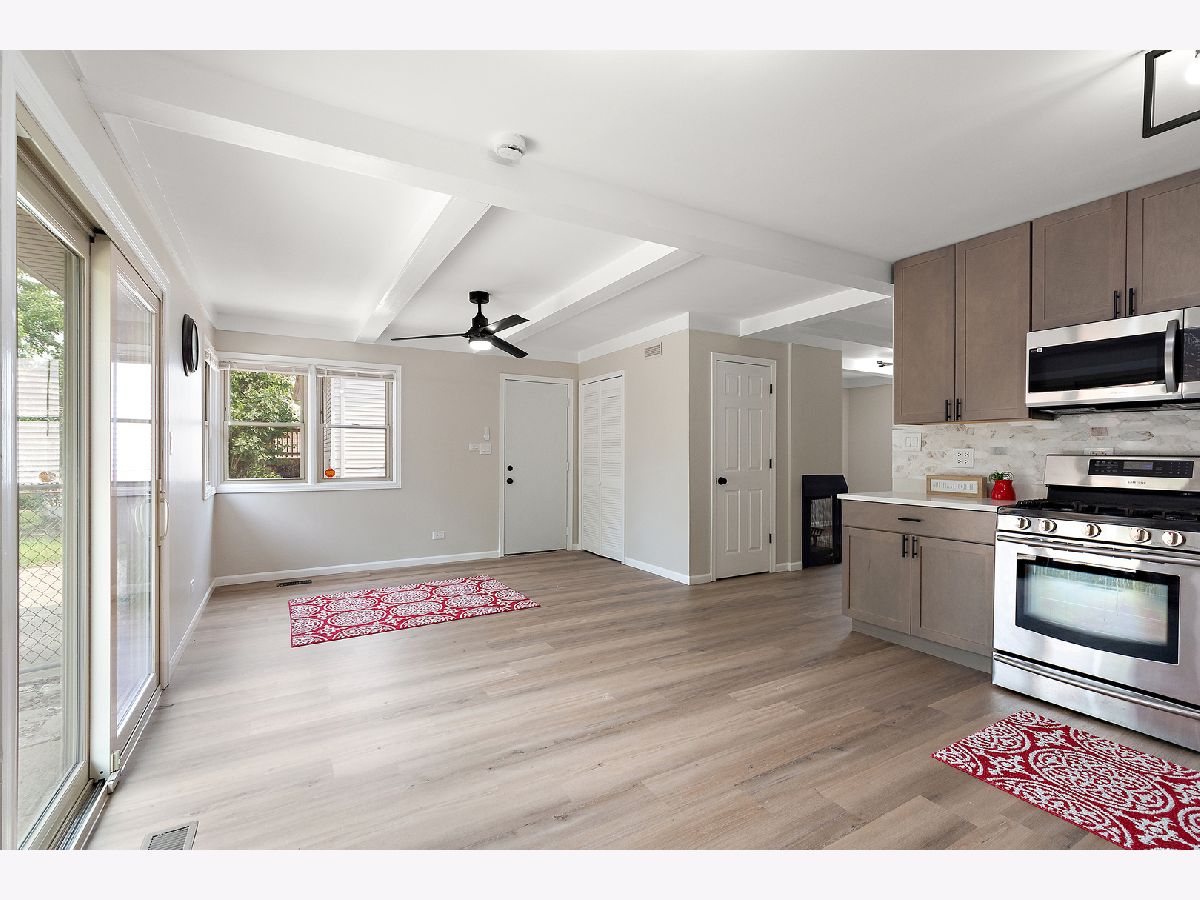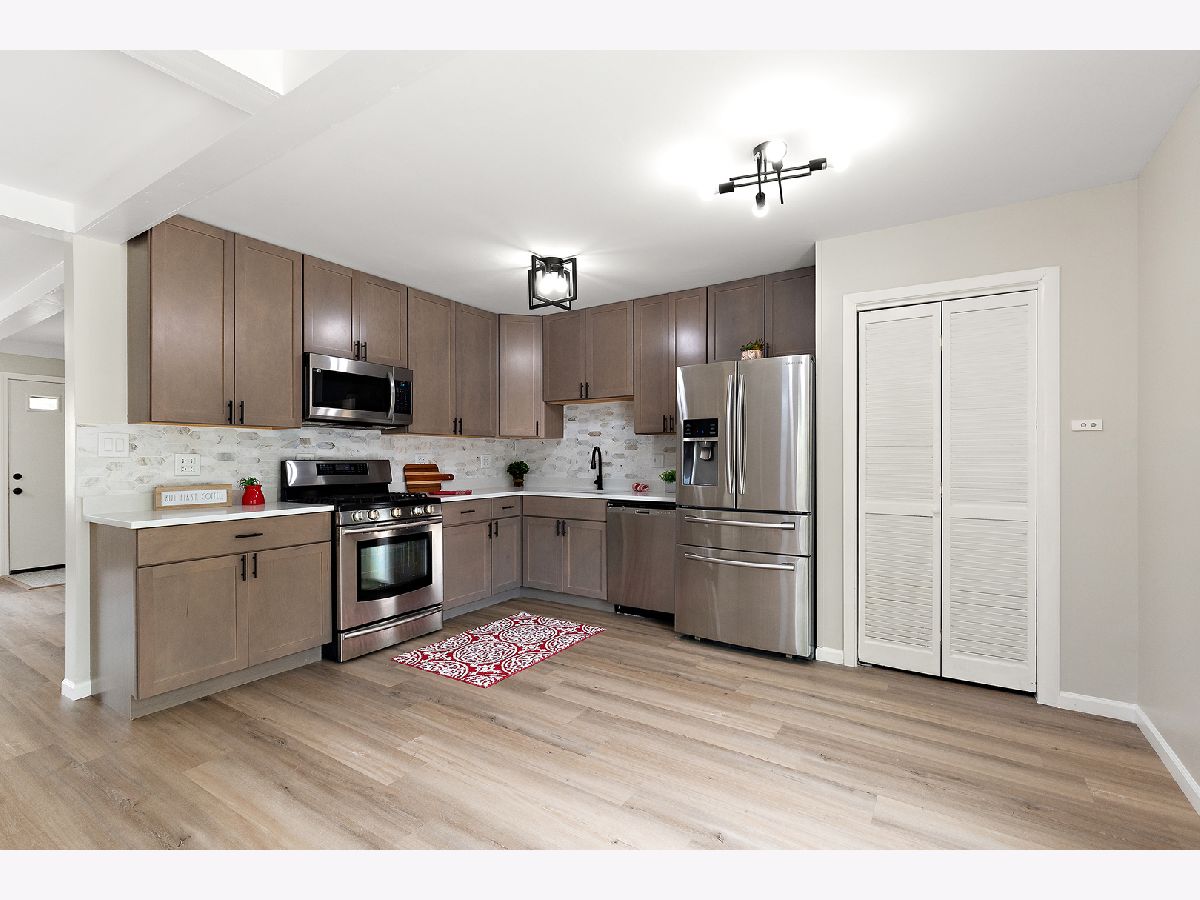 Sleek and stylish 3-bedroom ranch in the desirable Apple Tree subdivision-just minutes from parks, golf courses, shopping, and quick access to I-80 and I-57. * Step into a spacious living room flooded with natural light from the large picture window, featuring new luxury vinyl flooring, updated lighting, and a decorative fireplace that adds warmth and charm. * The kitchen is a showstopper with rich mocha cabinets, quartz countertops, a chic ceramic backsplash, and Samsung stainless-steel appliances-plus a full pantry closet for all your storage needs. Enjoy meals in the oversized dining area, complete with sliding-door access to the backyard patio and garden. * Three generously sized bedrooms and a freshly updated bathroom shine with new flooring, crisp white trim, modern fixtures, and a clean coat of paint throughout. * Additional perks include updated electrical, a two-and-a-half-car garage, new side door, and beautifully manicured landscaping-this elegant home is truly move-in ready and is offered at an incredible value!
