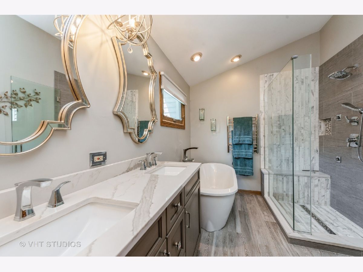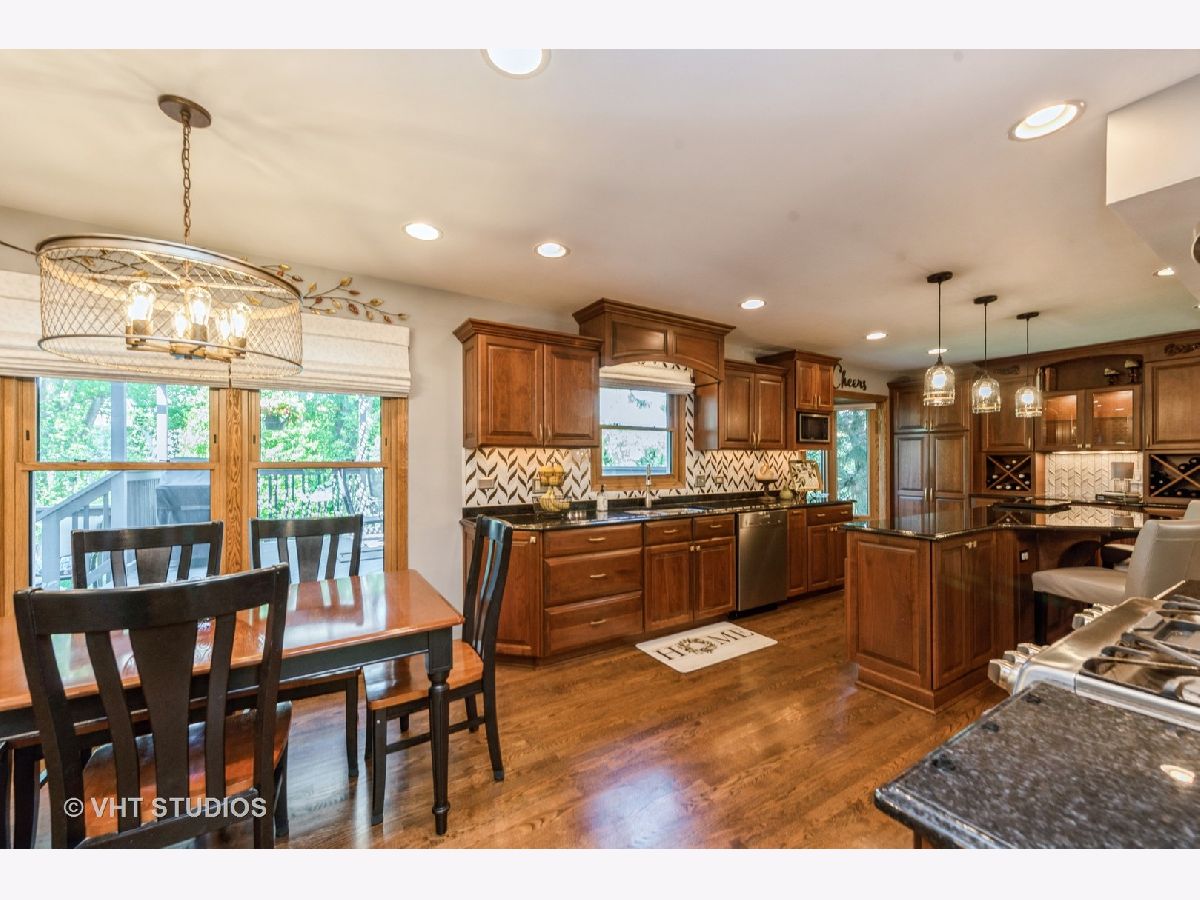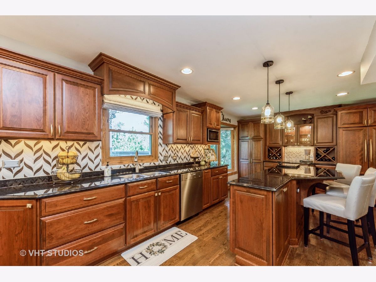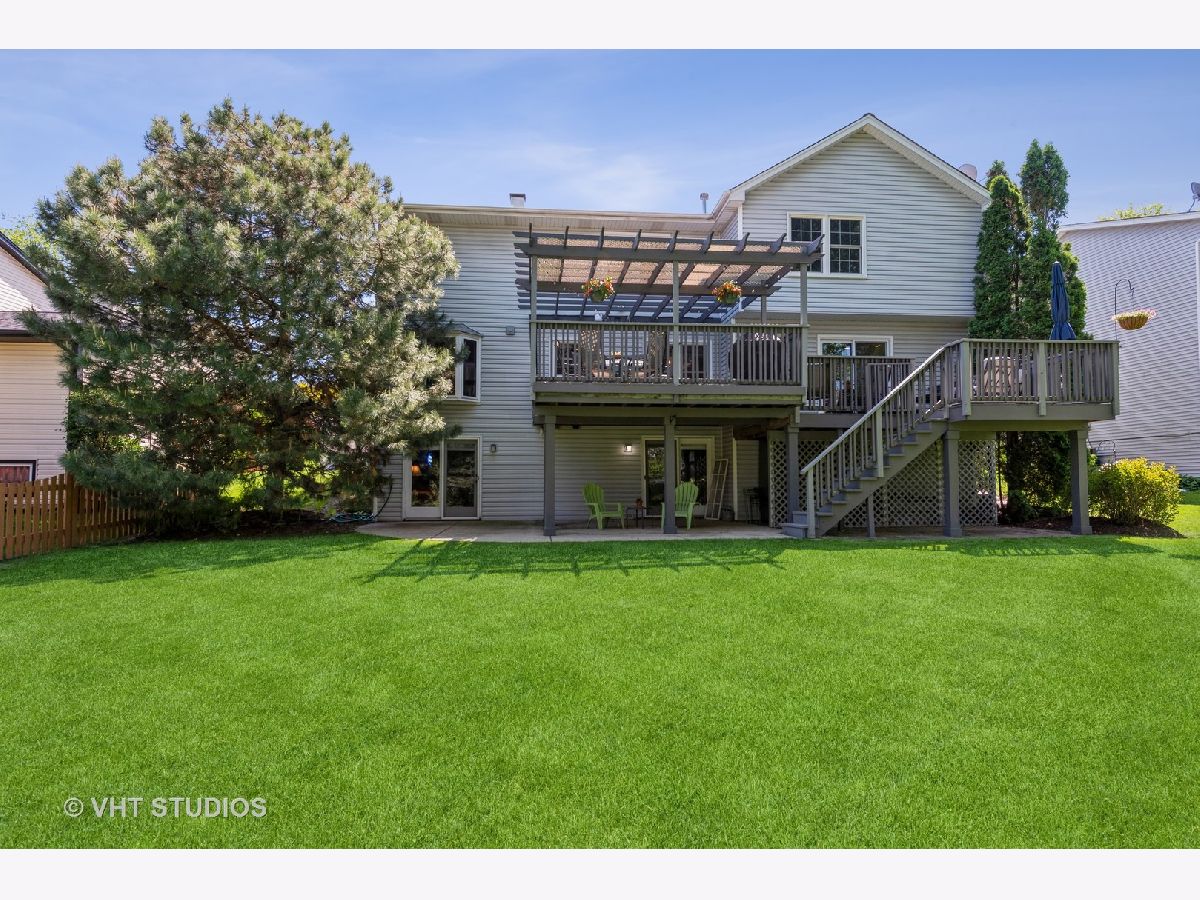 Welcome home to this amazing home! SO many UPDATES and SO well MAINTAINED! 5 Bedrooms, 4 1/2 Bathrooms, and a FINISHED WALKOUT BASEMENT! Hardwood floors refinished (2020), New support pillars on the front porch (2020), Entire interior painted (2019). 720 Sq Ft addition added in 2004 which includes: master bedroom suite & 5th bedroom. Master bath remodel (2018) features: heated ceramic floor & towel bars, double bowl vanity w/granite top, free standing soaking tub, and sep shower w/tile & custom doors. New windows in the addition in (2019), New carpeting in the addition (2020), 5th bedroom with a walk-in closet with custom built-ins and piping added for a possible second floor laundry room. Kitchen and first floor remodel in (2009): Amish custom made cherry Cabinetry including wine rack, Butler's pantry w/LED lighted glass door cabinet, pantry & huge island/breakfast bar, bay window, under cabinet lighting, black granite counters, G.E. Stainless stove w/double oven, Zephyr stainless hood, microwave, Meile dishwasher, & Whirlpool counter depth refrigerator w/matching cherry wood overlay. Gas Fireplace w/mantle and custom glass doors. Custom staircase from first floor to second floor. All the windows and doors have been replaced ~ New light fixtures ~ 4 1/2 remodeled bathrooms plus all toilets have been replaced with comfort level toilets ~ Solid oak 6 panel doors throughout Ceiling fans in all bedrooms & family room. New sump pump with a battery backup ~ 2-tiered deck completely renovated and painted in (2021) ~ 2 car garage drywalled and insulated ~ Roof and Siding replaced in (2004) ~ Dual zoned heating & central air with 2 programmable thermostats ~ Main furnace and central air 8 years old with humidifier on the downstairs furnace, Additional furnace and central air installed in 2004 ~ 2 Hot water heaters (Main hot water heater 2017 the other installed after 2010) ~ Radon mitigated 2020. This classic brick and vinyl sided 2 story home has a front porch and amazing landscape. It is situated on a beautiful lot backing to a pond...such a spectacular location on a quiet street with large trees! Walk to downtown Bartlett and the Metra Station. Close to shopping, the park district, library and schools.