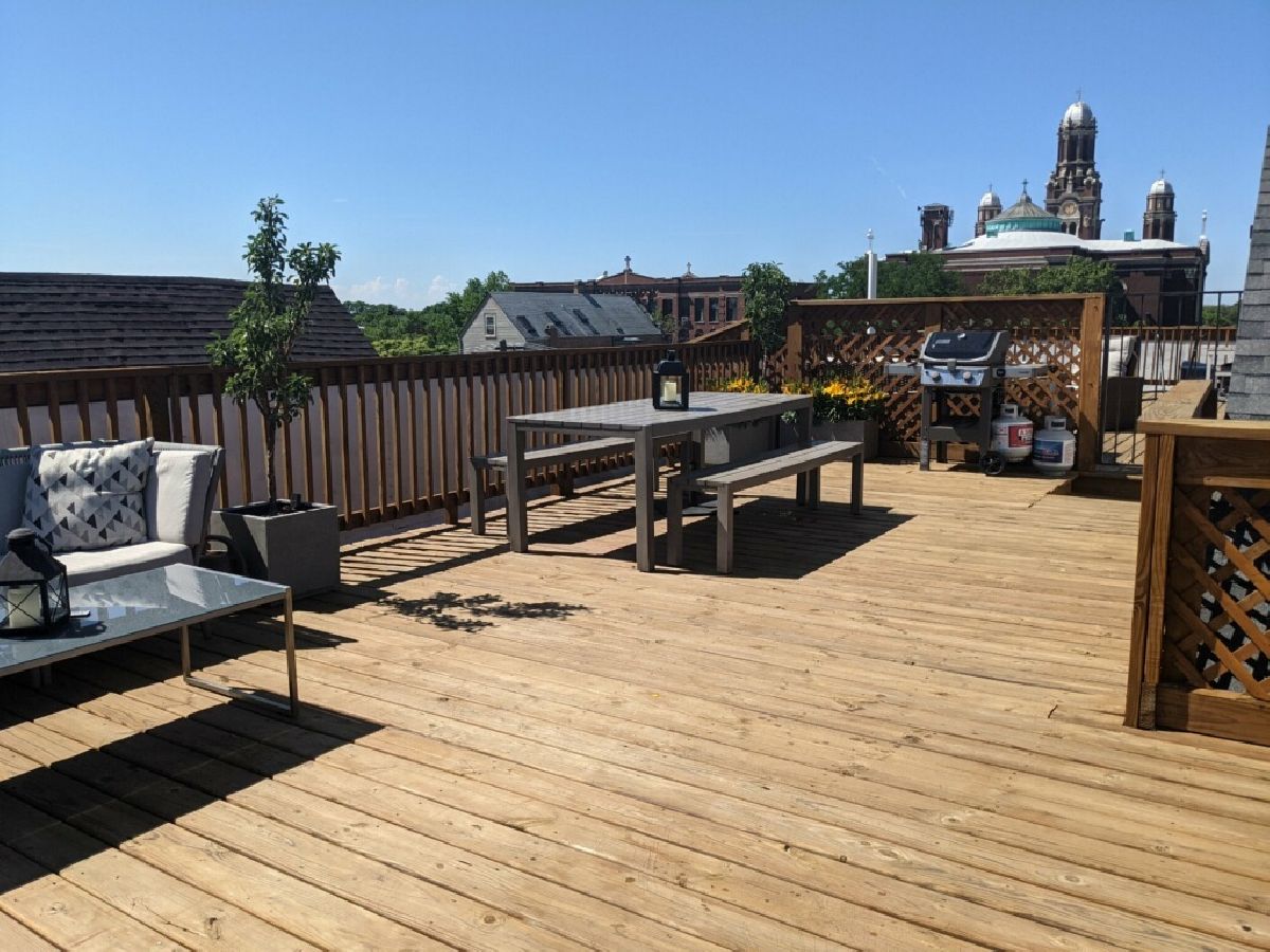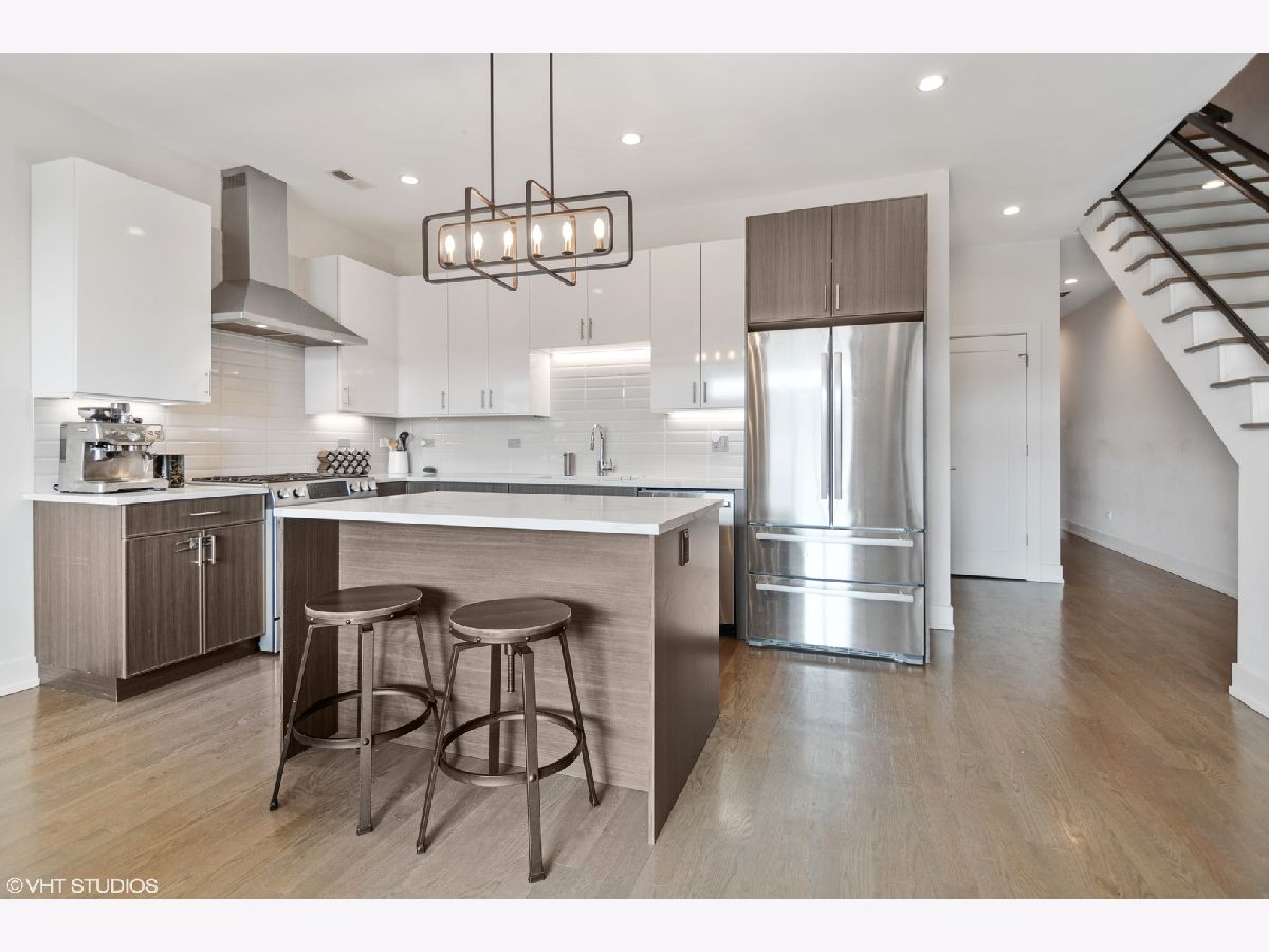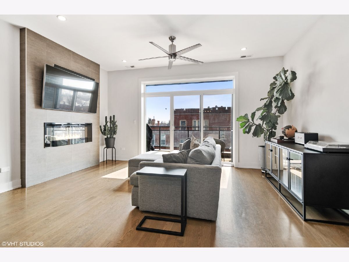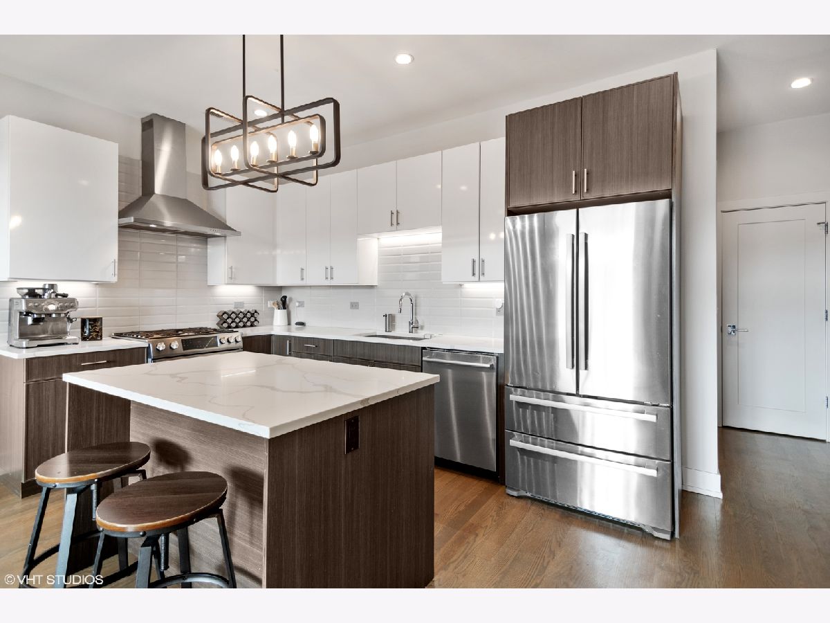 Logan Square/Avondale Penthouse with Private Roof Deck. Come home to this modern and spacious 3-bedroom, 2-bath luxury condo, featuring designer finishes and attention to every detail. Unit features high ceilings, hardwood flooring, chef's kitchen, quartz countertops, and stainless steel Bosch appliances. The primary bedroom suite includes a large walk in closet and attached balcony. Spa bathrooms include Grohe fixture. Enjoy 3 private outdoor spaces, including your very own PRIVATE rooftop deck with unbelievable views of the Chicago skyline. Also includes additional storage and one car garage parking. Fantastic location: close to expressway and few blocks from the Blue Line. A must see!