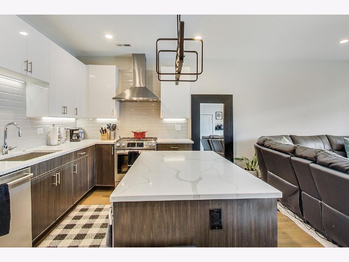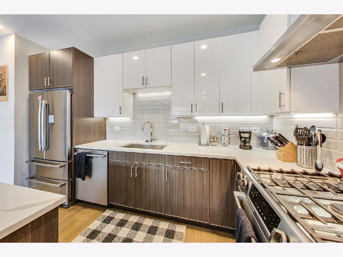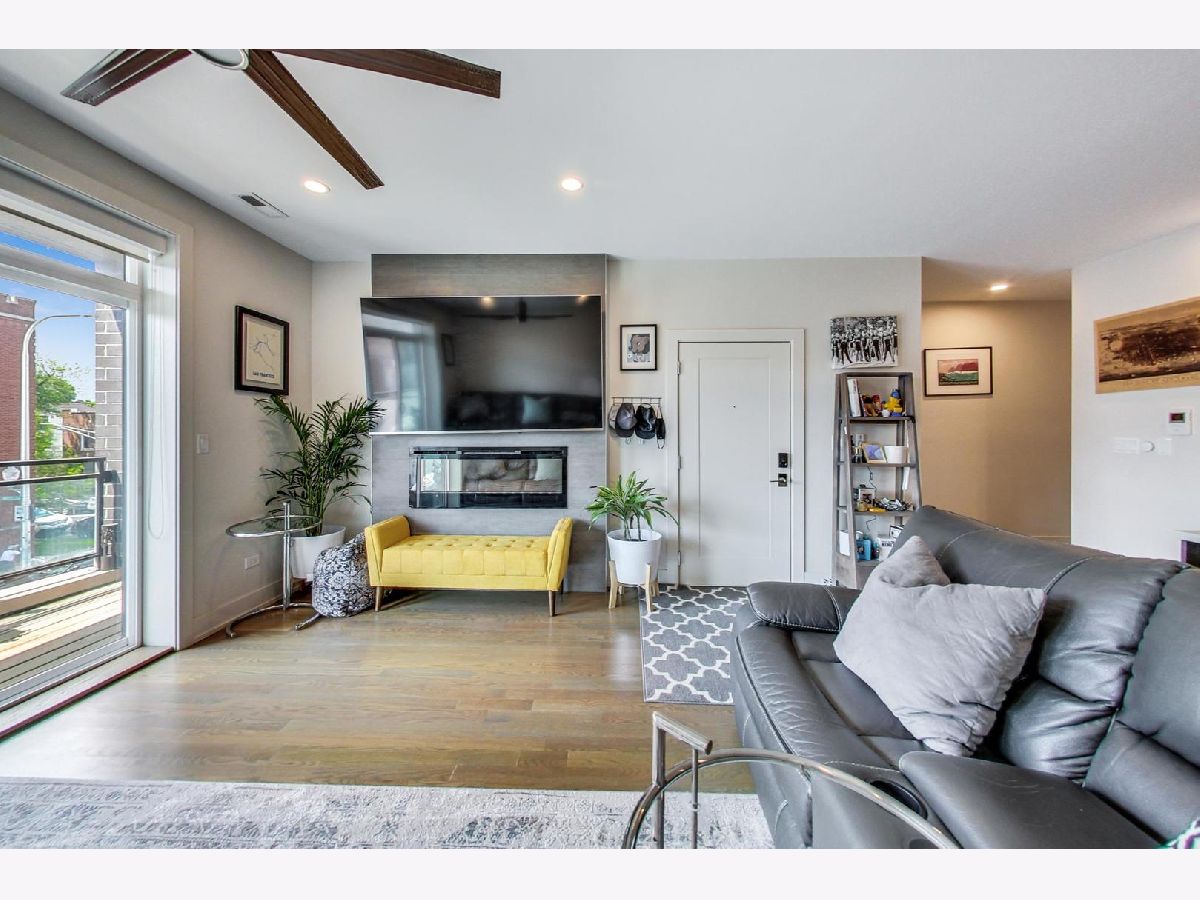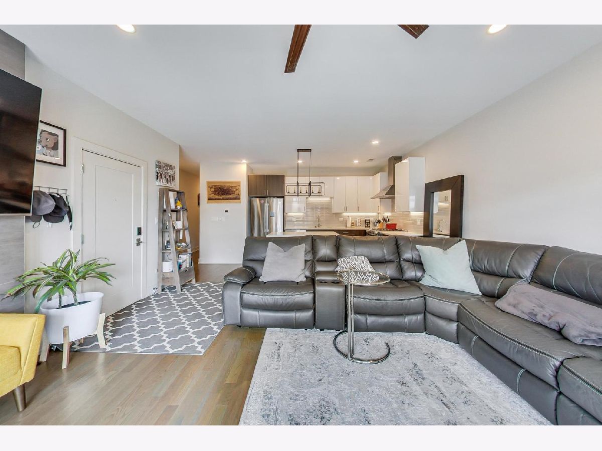 Sunny Logan Square 3 bedroom with designer finishes throughout. Details include high ceilings, hardwood floors, a large chef's kitchen with quartz counters and stainless steel Bosch appliances, Smart Home technology, 2 balconies and a common roof top deck with skyline views. The spacious primary bedroom suite has a organized walk-in closet, spa caliber bath with Grohe fixtures and large shower with rain faucet. Conveniently located near the expressway, Blue Line and bus stop.
