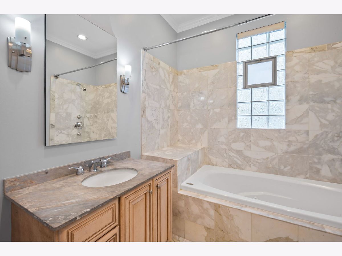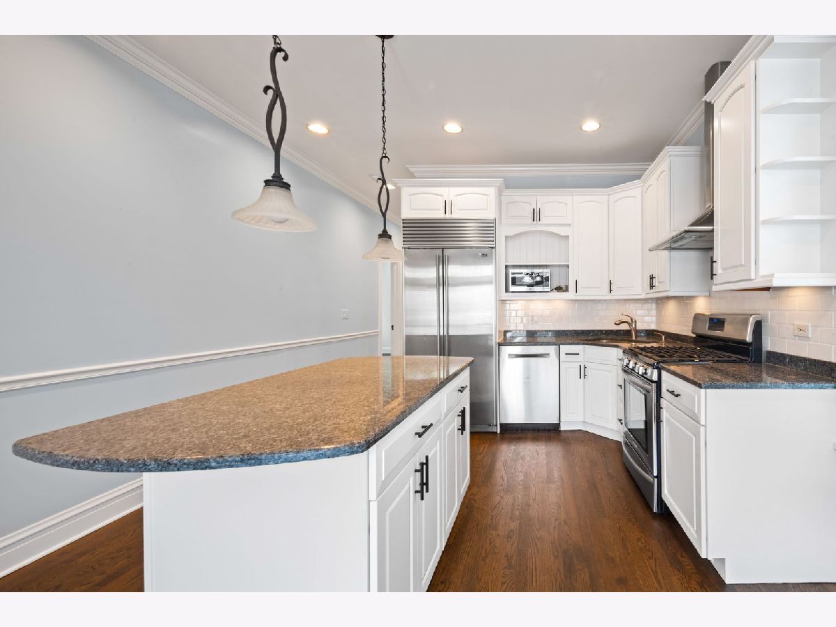 Stunning 3 bed 2 bath duplex unit on a truly desired block in Roscoe Village. This freshly rehabbed unit boasts tons of upgrades and lives like a single family home. Main level consists of 2 beds, updated bathroom, living room with fireplace, dining room, newly finished kitchen and breakfast nook with crown moulding throughout most areas. The kitchen is equipped with high-end stainless steel appliances including a sub-zero fridge, exposed hood, wine storage, granite counters, eat-in island, and exterior balcony. Lower portion of the unit provides additional living area with wet bar, large bedroom, additional den/office space, custom-built storage closets, laundry with newer LG W/D, and oversized rehabbed bathroom featuring double vanity sink with Kohler fixtures. Paved backyard on an oversized lot with shared patio furniture with one garage spot and additional garage storage. Enjoy all Roscoe Village has to offer!