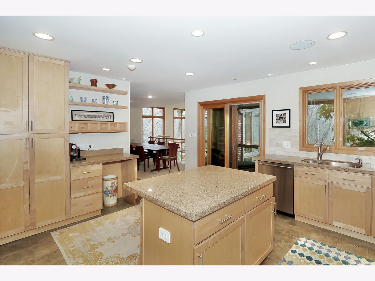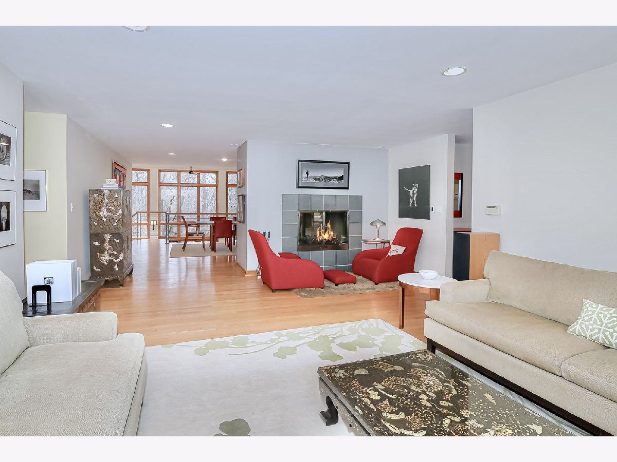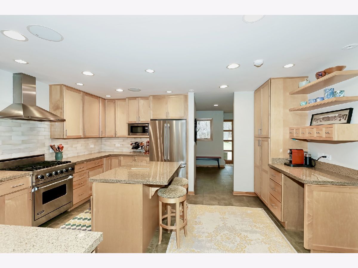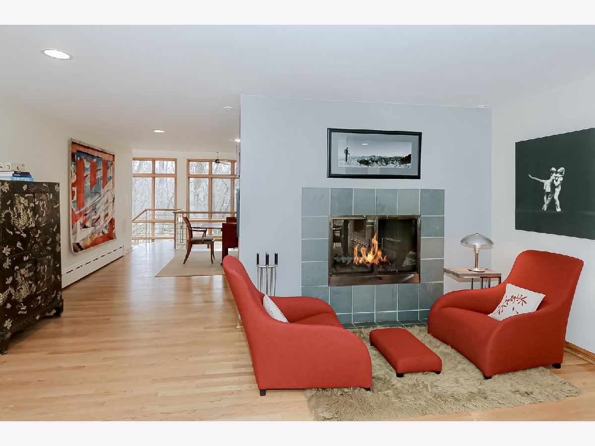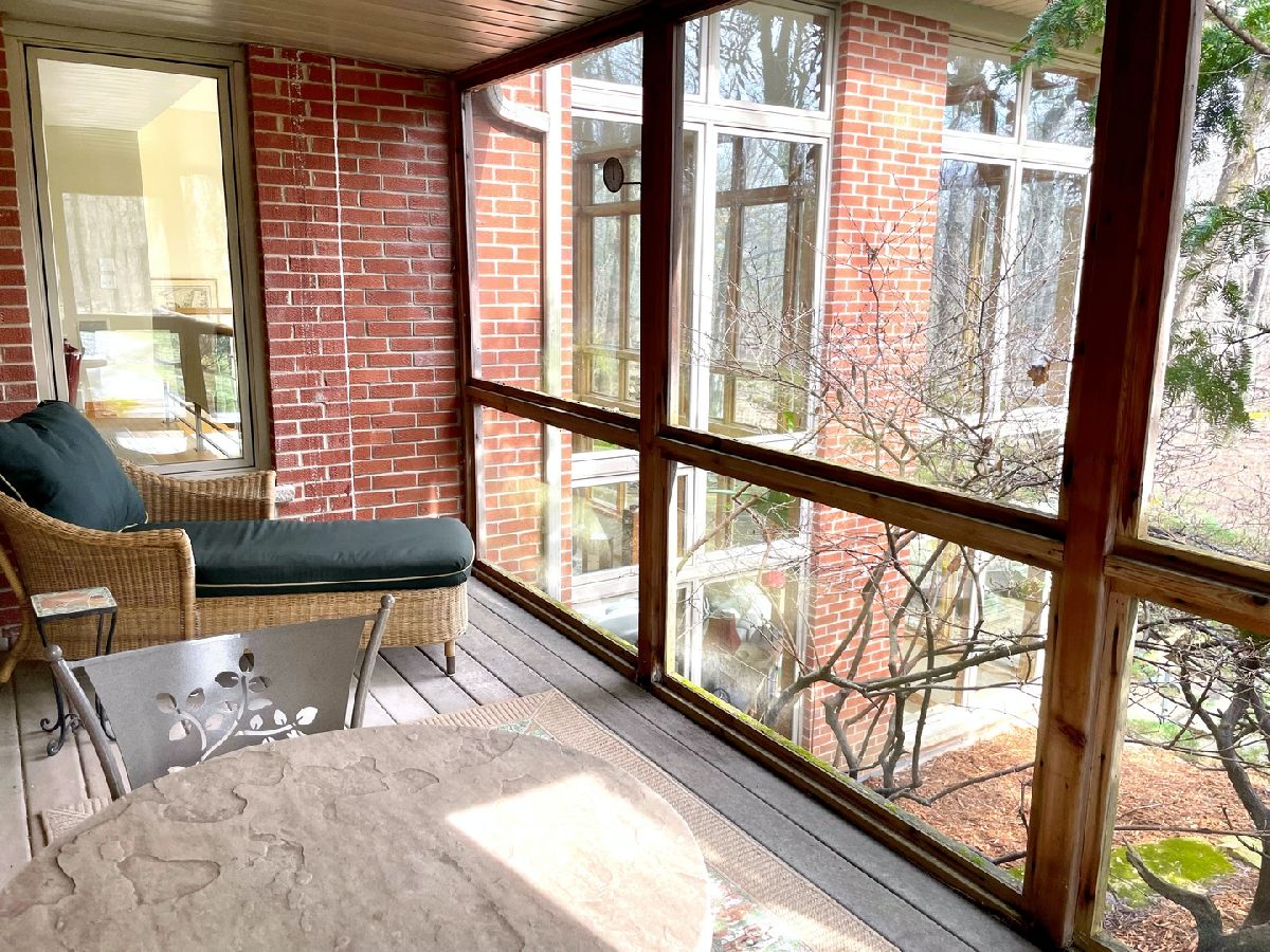 Towering mature oak trees surround this beautiful brick mid-century modern ranch home with expansive walkout lower level on a unique private, serene wooded Barrington Hills property. This elegant, updated, meticulously maintained home has a chef's kitchen with center island, wood cabinetry, granite counters and stainless appliances, open to large dining and living rooms with a double-sided fireplace, all overlooking a stunning walkout lower level great room featuring heated floors and walls of two-story windows with panoramic views of the property. Natural light on three sides! Sliding doors open to huge stone patio great for entertaining! Home is wired throughout for speedy ethernet network and sound system. Bright main floor primary suite with soaring ceilings, walk-in closet and spa bath with heated stone floors, double vanity, soaking tub and rain head shower with body sprays. A windowed study with woodland views, powder room with artisan stone sink and two large bedrooms sharing a full bath with stone flooring complete the main level. Lower level features a second office area plus media room (bring your speakers and big screen) or 4th bedroom with closet. Double-sided fireplace, library, exercise area, full marble bath, laundry room and huge storage area. See floor plans and 3D tour. Get back to nature and enjoy this spectacular lot surrounded by forest preserve, yet only 10 minutes from town, Metra and I-90. Barrington Hills Riding Center is nearby and riding trails. A must see for that special buyer who appreciates nature, privacy and serene living.