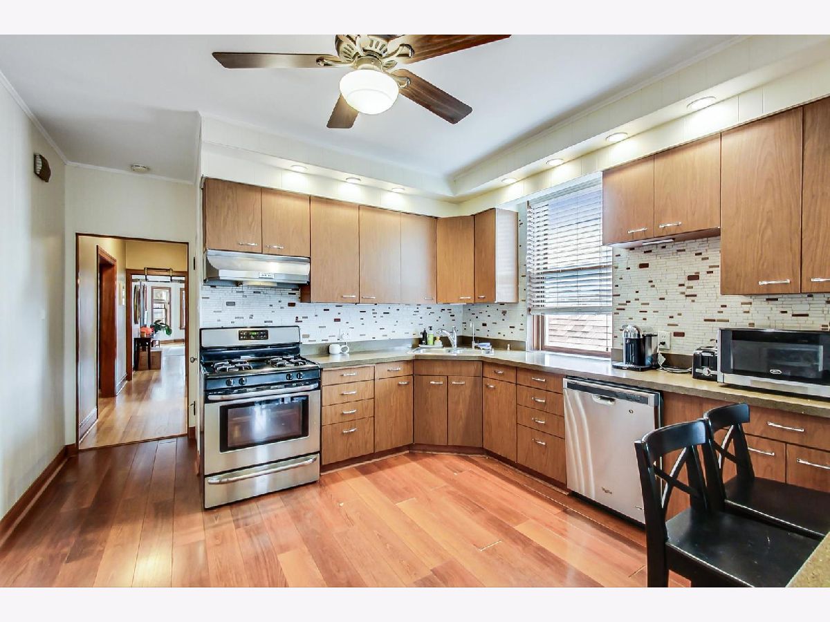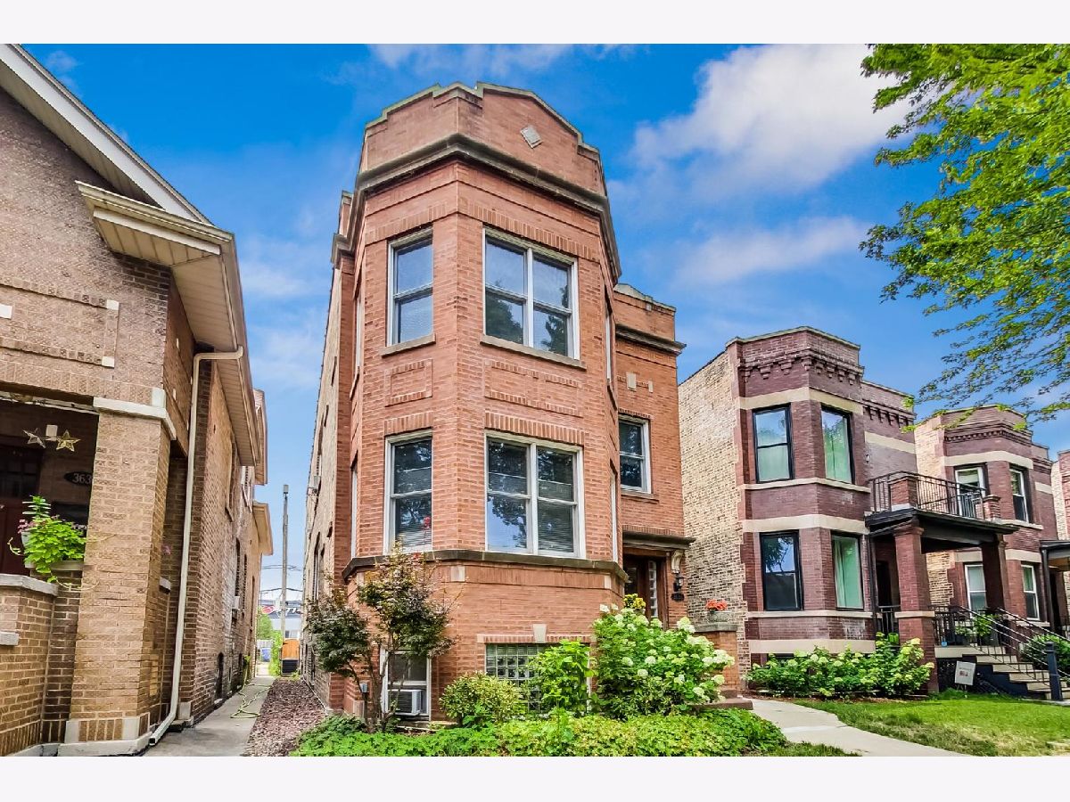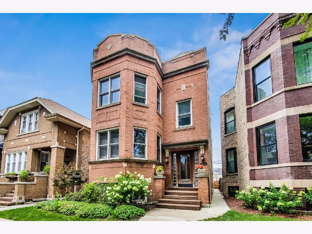 Massive, legal 3 flat on prime block in coveted Bell School district! ENORMOUS (approximately 1650' per floor) and fully improved, owner's unit with deluxe kitchen (built-in appliances, island, new/wood cabinets, stone counters, eat-in area and more), in-unit W/D, Central AC, large luxurious bath, and Huge Living and Dining rooms. Unit upstairs is the same footprint (just not quite as upgraded), unit downstairs is a basic 2 BR garden apartment (legal). Both rent in a heartbeat. Nice, quiet patio in back. Oversized, brick, 2 car garage. Incredible opportunity to get into this sought after block and school district and neighborhood at an affordable level. Opportunities abound to lease out the entire building, live in the owners unit (and lease the rest), live in another unit and earn big $ leasing the owners unit, duplex, de convert and so much more!