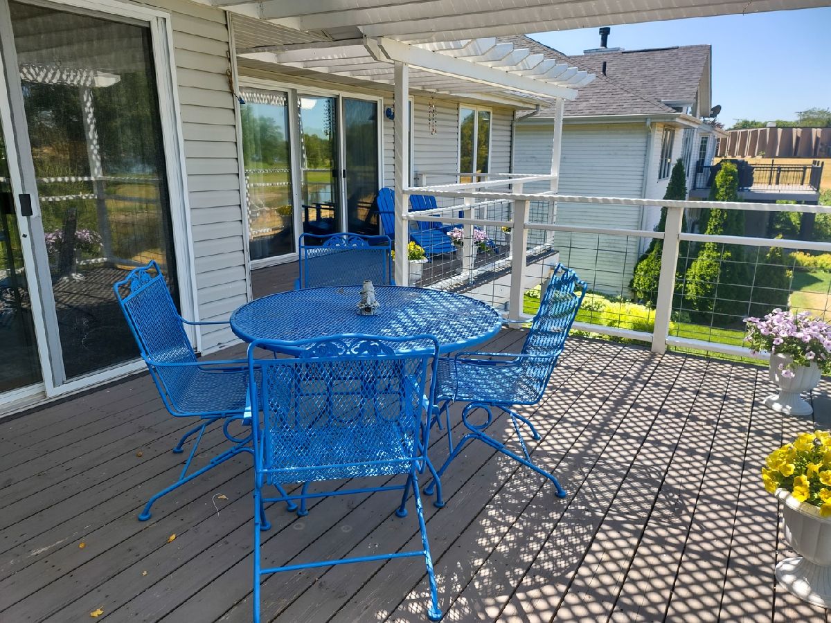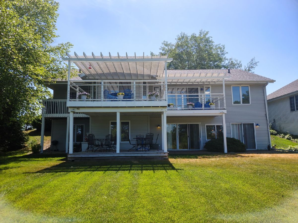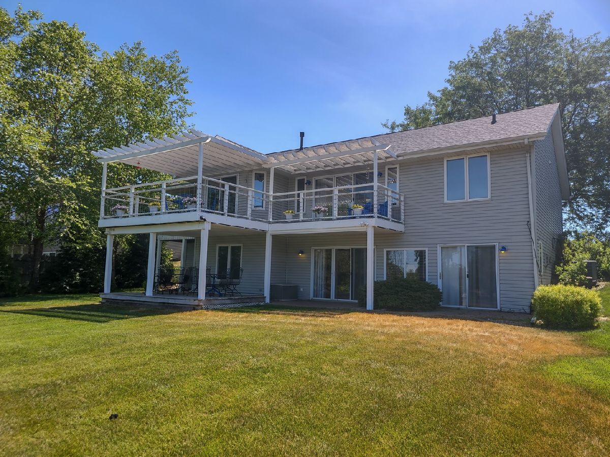 Incredible home on the river! Split bedroom design; large living room w/cathedral ceilings and large opening to the kitchen with tons of cabinets and eat inarea overlooking the river! Sliding doors off the kitchen, living room and master bedroom to covered deck. Master bedroom has large walk in closet and adorable bathroom withwalk in shower. Lower level could be used as an in-law suite or just a great place to party! L shaped rec. room with wet bar and kitchenette with all appliances, custom made"boat" gas fireplace; it's amazing, hot tub area with the hot tub and pool table too. Plus the 4th bedroom with walk in closet and full bathroom. There is a covered patio underthe upper deck, then out to the dock and river. Sprinkler system furnished right out of the Rock River. There is 9 acre common area across the canal for shared usage and aboat ramp shared with only 9 houses in the area. This is a fabulous place and just in time for summer!