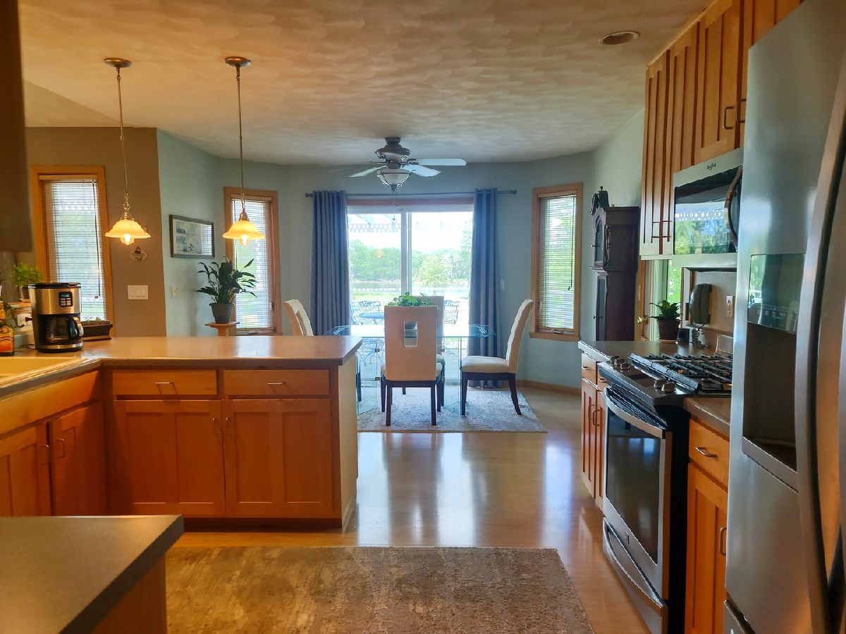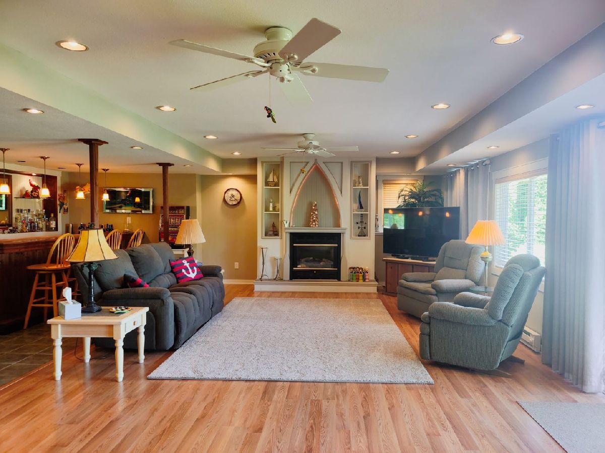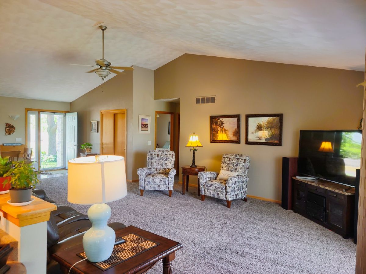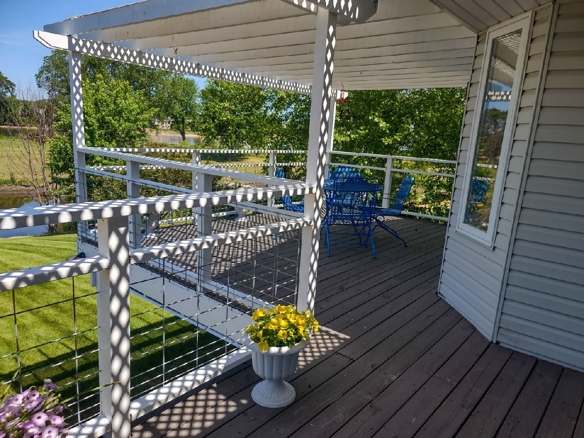 Incredible home on the river! Split bedroom design; large living room w/cathedral ceilings and large opening to the kitchen with tons of cabinets and eat inarea overlooking the river! Sliding doors off the kitchen, living room and master bedroom to covered deck. Master bedroom has large walk in closet and adorable bathroom withwalk in shower. Lower level could be used as an in-law suite or just a great place to party! L shaped rec. room with wet bar and kitchenette with all appliances, custom made"boat" gas fireplace; it's amazing, hot tub area with the hot tub and pool table too. Plus the 4th bedroom with walk in closet and full bathroom. There is a covered patio underthe upper deck, then out to the dock and river. Sprinkler system furnished right out of the Rock River. There is 9 acre common area across the canal for shared usage and aboat ramp shared with only 9 houses in the area. This is a fabulous place and just in time for summer!