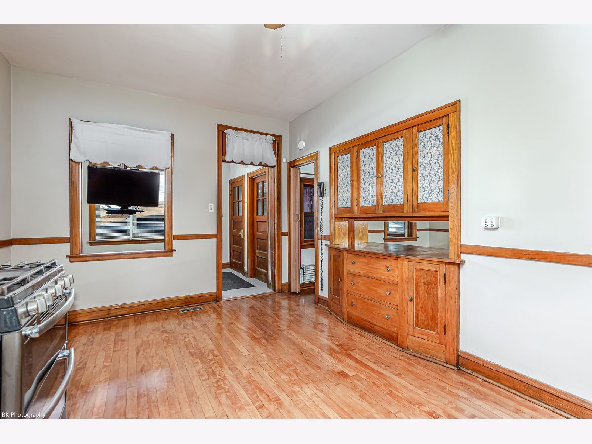 Gorgeous 3 bedroom 1 bathroom brick bungalow features beautiful, newly refinished oak and maple hardwood floors, original woodwork and glass door knobs, high ceilings, plaster walls, an inviting living room, spacious eat-in kitchen with built-in buffet, walk-in pantry, stainless steel oven/range, microwave and large double door refrigerator, enclosed porch off the kitchen, three good sized main level bedrooms and a full bathroom with tub/shower combination. Huge walk-in attic offers a massive amount of space. Full unfinished basement with rec room area, laundry, storage and workshop. Large fenced yard with a newer concrete patio and walkways. Brick two-car garage with newly capped aluminum has alley access. Newer: central air and furnace (2-3 years), KitchenAid microwave (3-4 years), tuck-pointing, garage door and opener (5 years), hot water heater (2016), tear off roof (12 years) and Feldco windows with lifetime warranty (2003). Fantastic location near McKinley Park, shopping and restaurants!